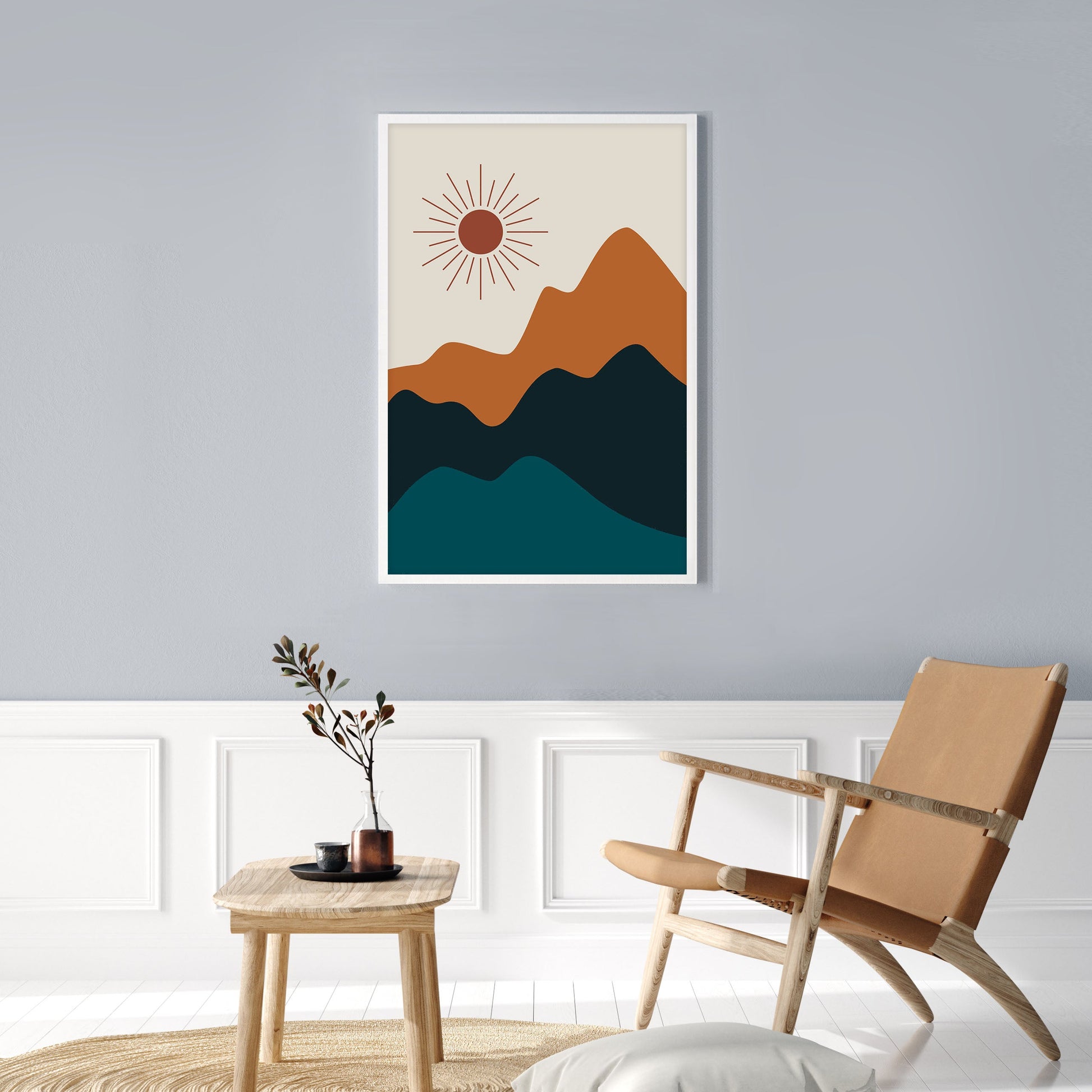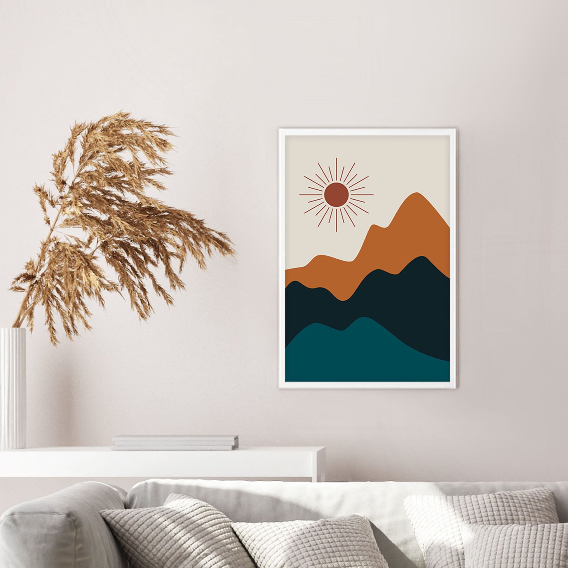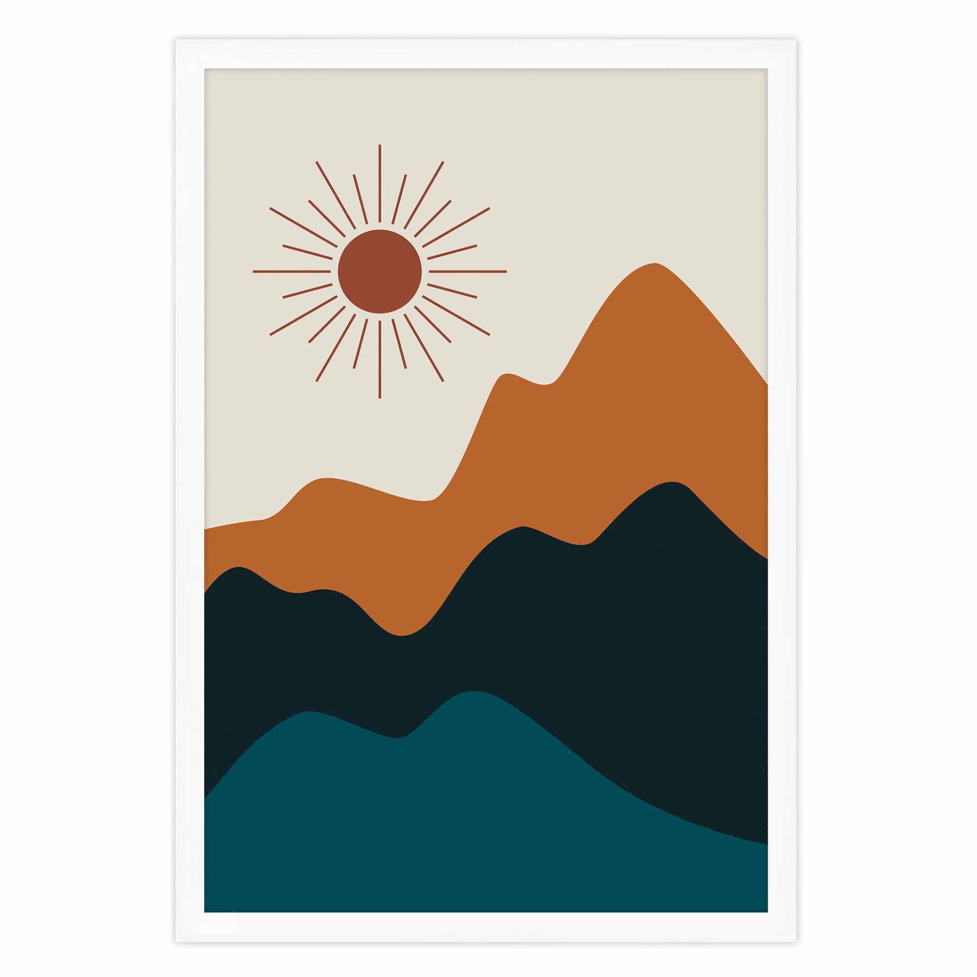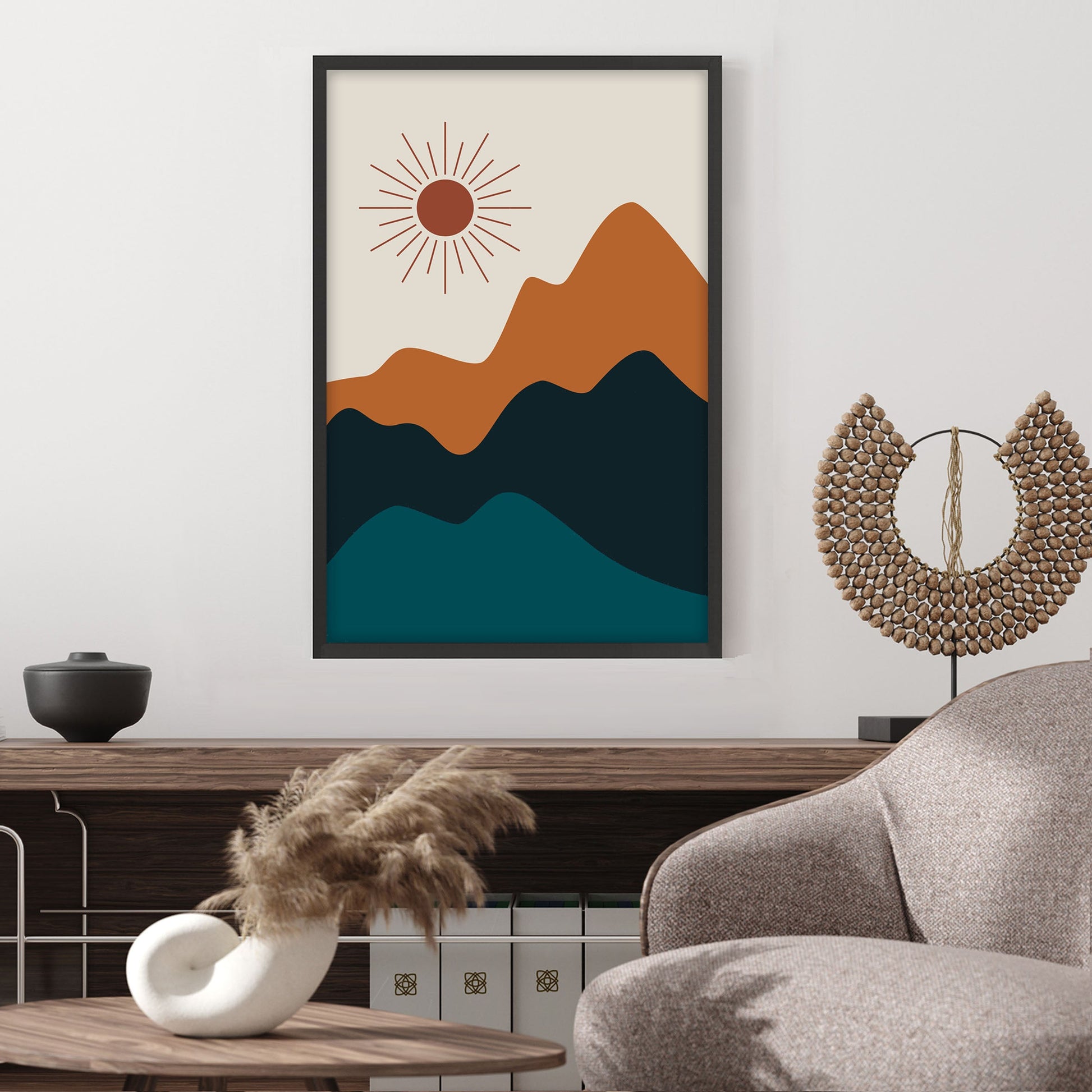 Add a touch of elegance to your home with this stunning Ethan Taylor™ ‘Boho Sun' framed art print! This orange and blue landscape and nature piece featuring mountains is printed on premium, museum quality premium art paper in your choice of black or white wooden frames or unframed prints. The prints arrive secured within the frame, and ready to hang so that you can enjoy your new artwork in no time. With a variety of sizes available, you can find the perfect fit for any space.