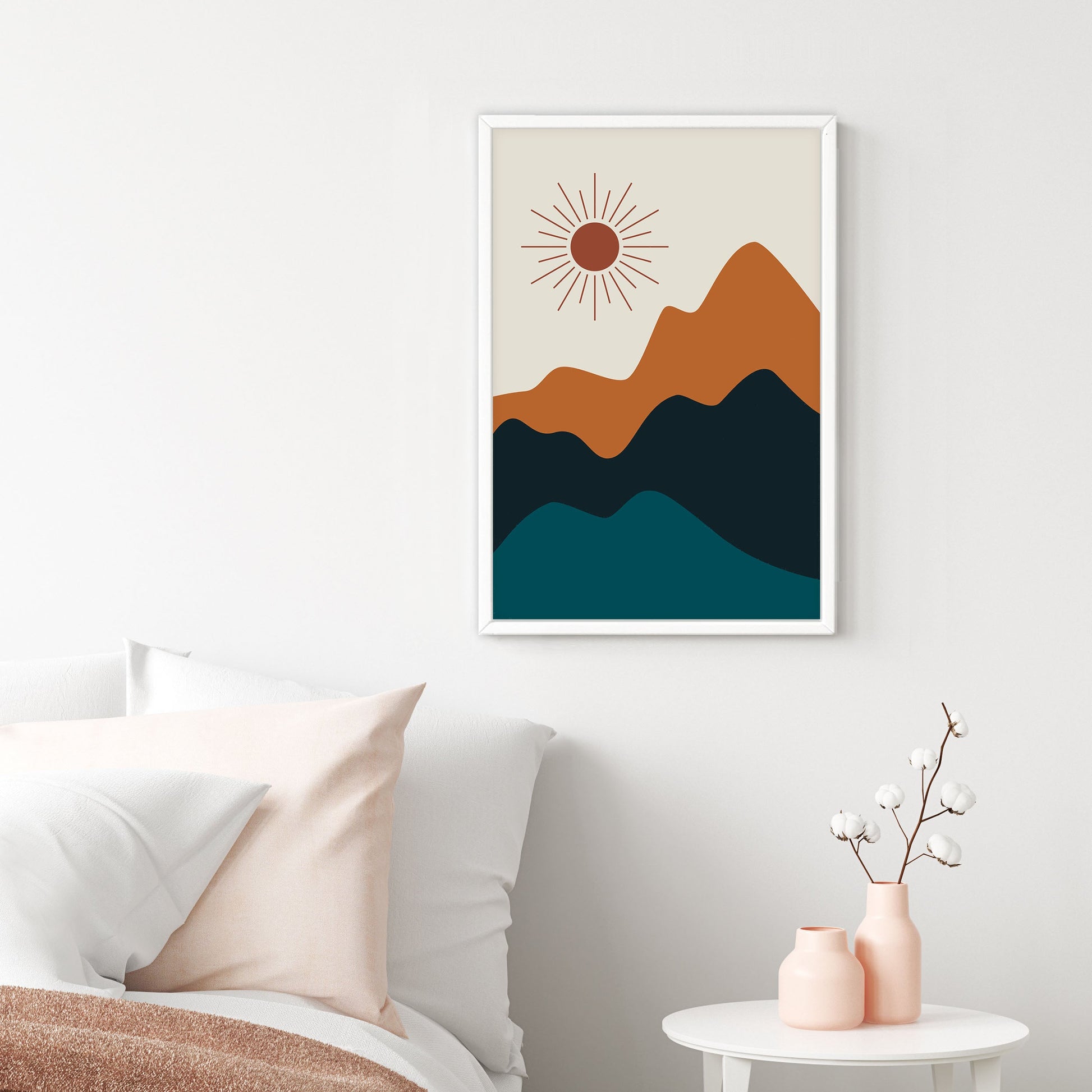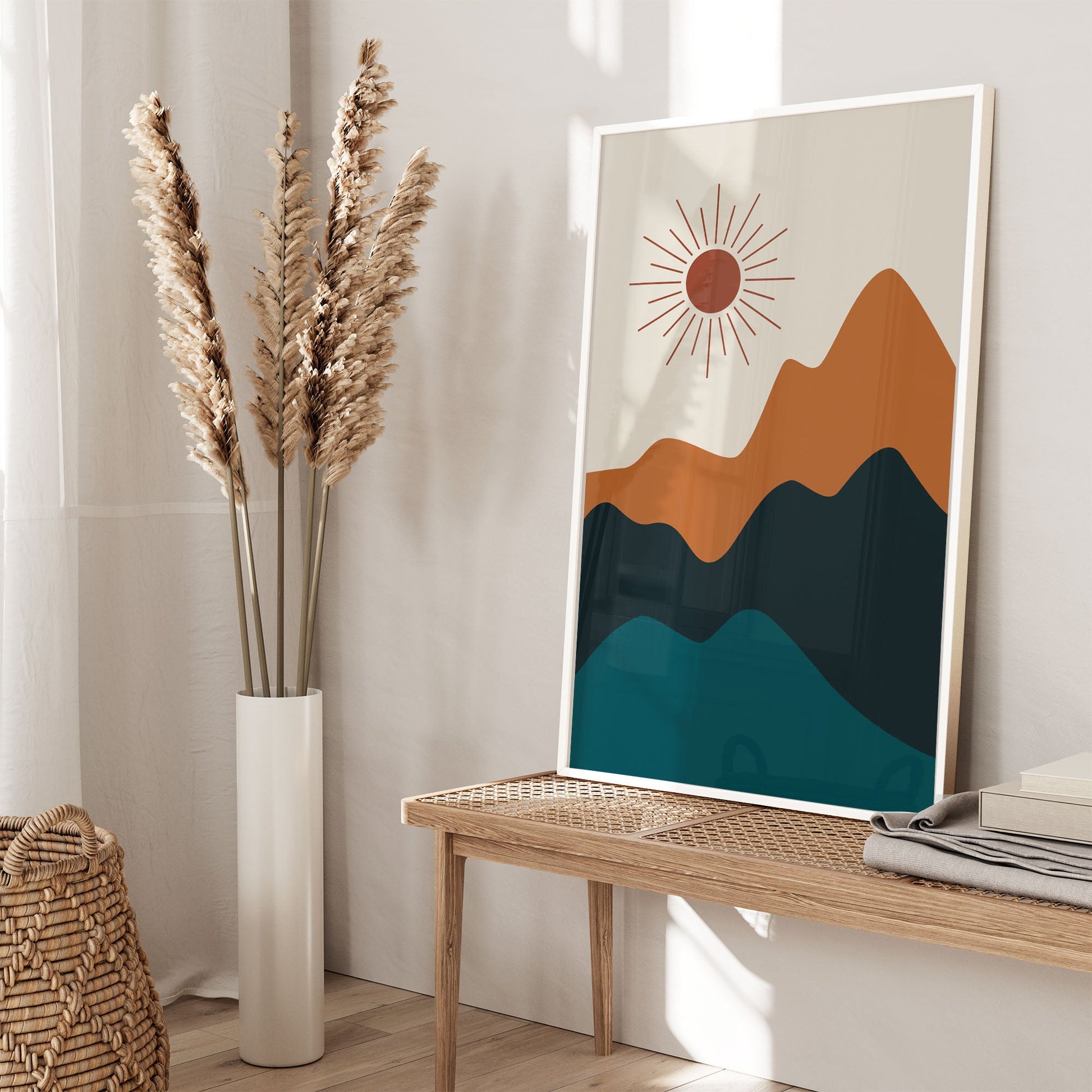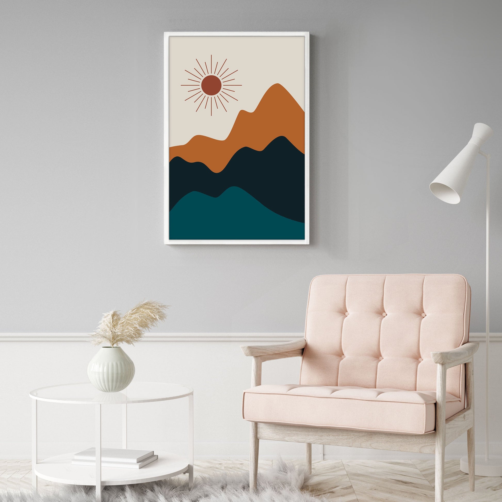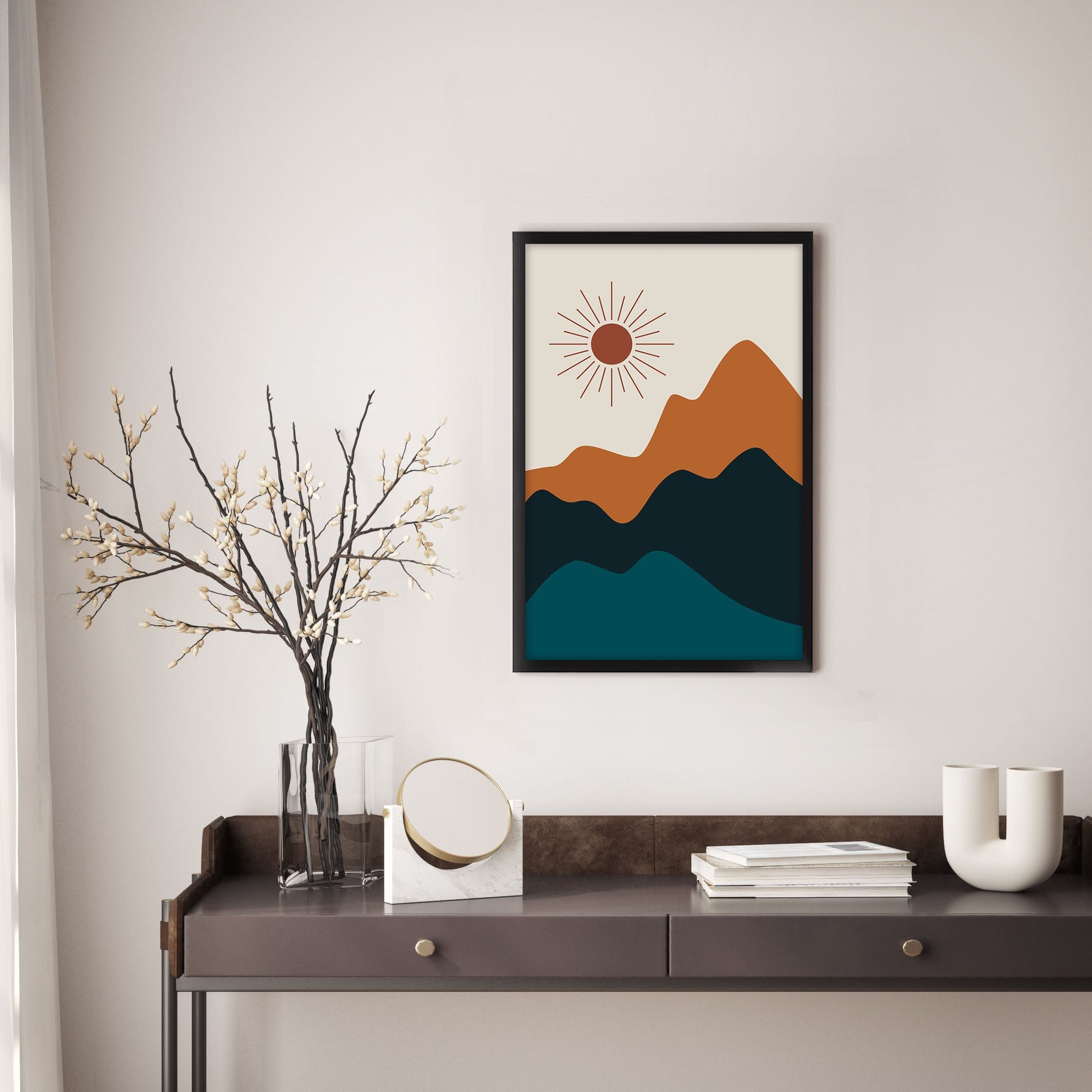 Add a touch of elegance to your home with this stunning Ethan Taylor™ ‘Boho Sun' framed art print! This orange and blue landscape and nature piece featuring mountains is printed on premium, museum quality premium art paper in your choice of black or white wooden frames or unframed prints. The prints arrive secured within the frame, and ready to hang so that you can enjoy your new artwork in no time. With a variety of sizes available, you can find the perfect fit for any space.