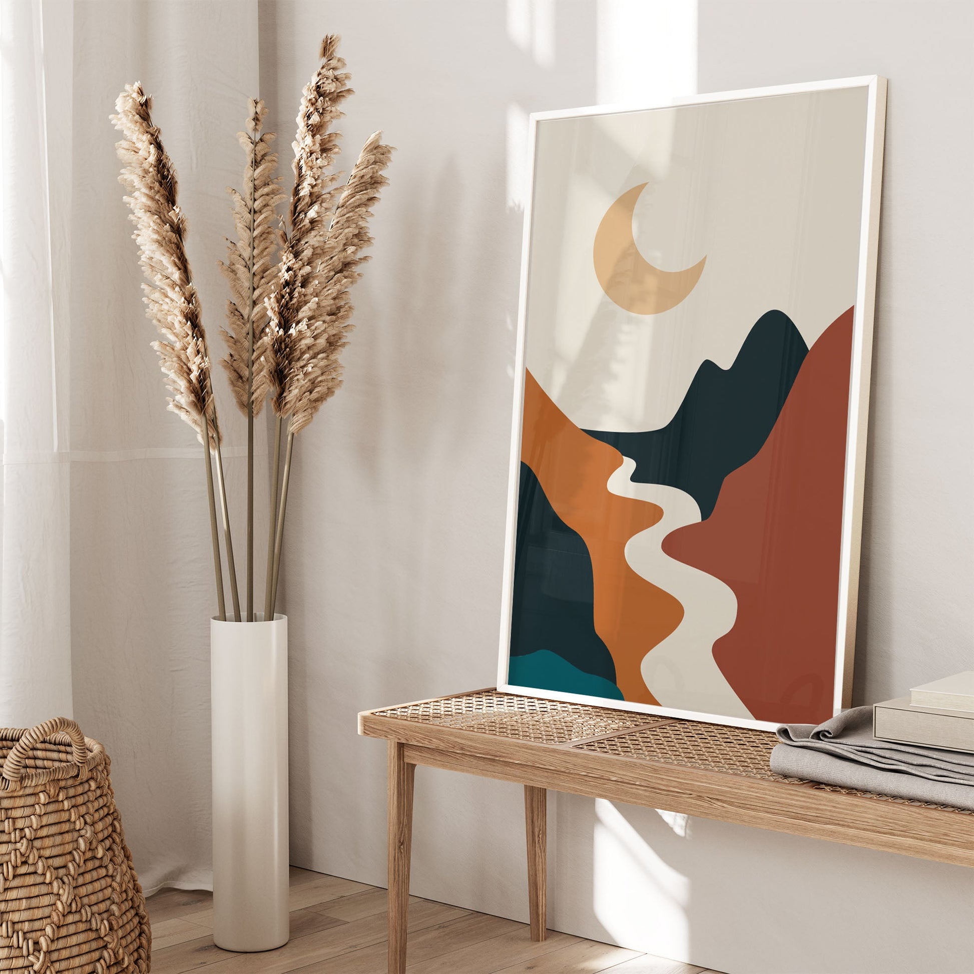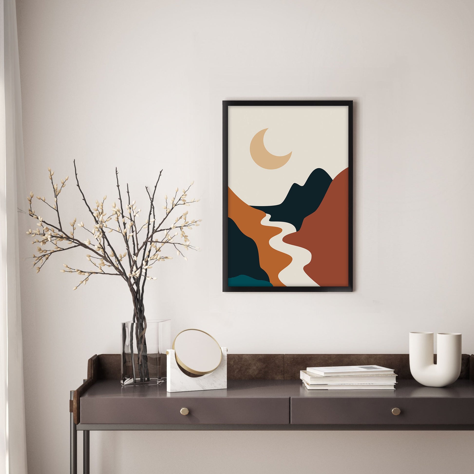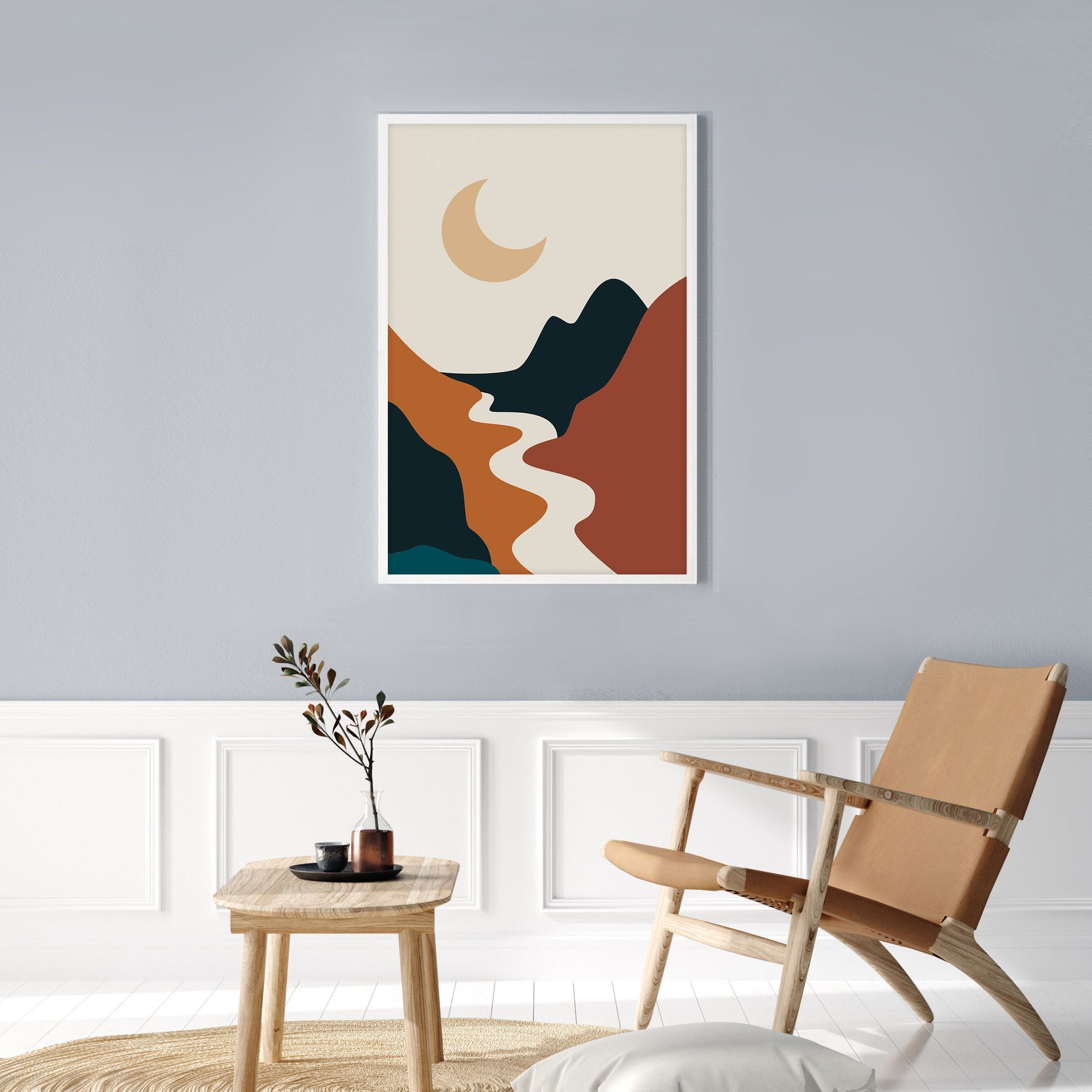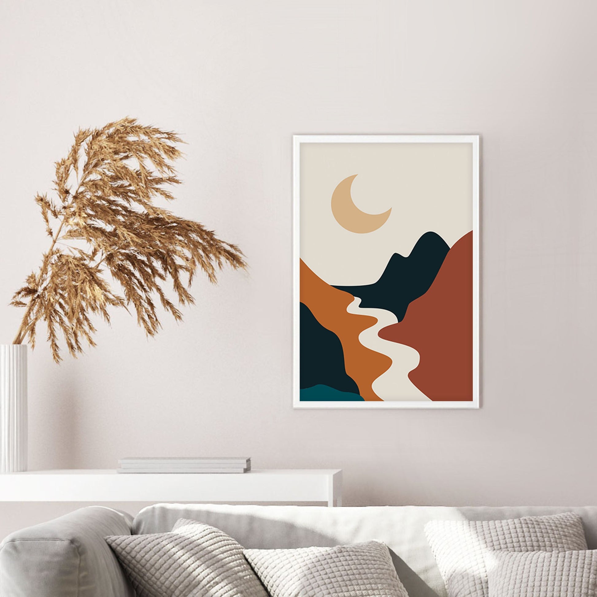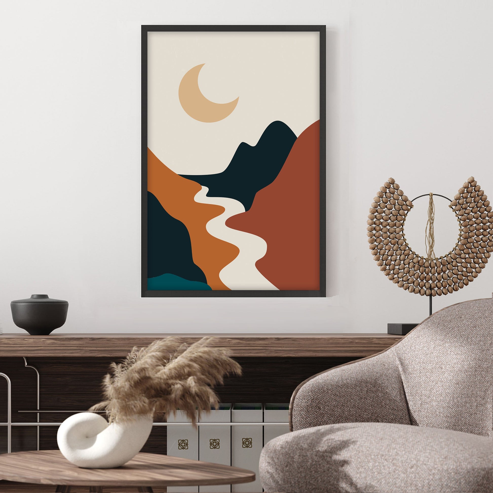 Add a touch of elegance to your home with this stunning Ethan Taylor™ ‘Boho Moon' framed art print! This orange and gray landscape and nature piece featuring mountains is printed on premium, museum quality premium art paper in your choice of black or white wooden frames or unframed prints. The prints arrive secured within the frame, and ready to hang so that you can enjoy your new artwork in no time. With a variety of sizes available, you can find the perfect fit for any space.