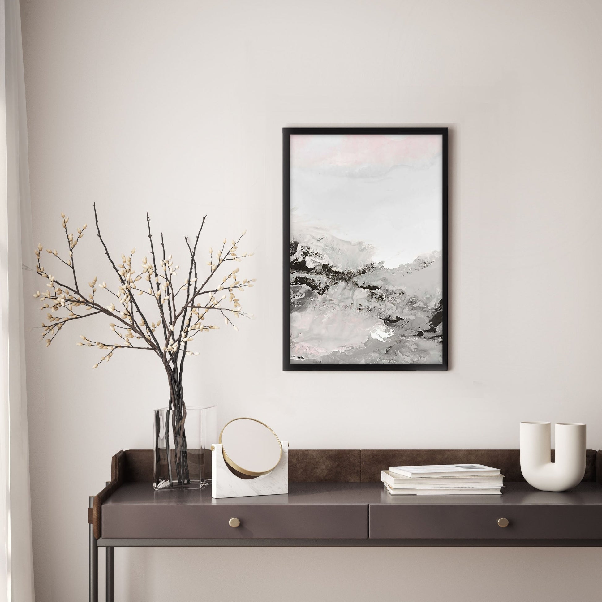 Add a touch of elegance to your home with this stunning Ethan Taylor™ ‘Dreams of Elegance' framed art print! This gray and black abstract piece featuring paint is printed on premium, museum quality premium art paper in your choice of black or white wooden frames or unframed prints. The prints arrive secured within the frame, and ready to hang so that you can enjoy your new artwork in no time. With a variety of sizes available, you can find the perfect fit for any space.