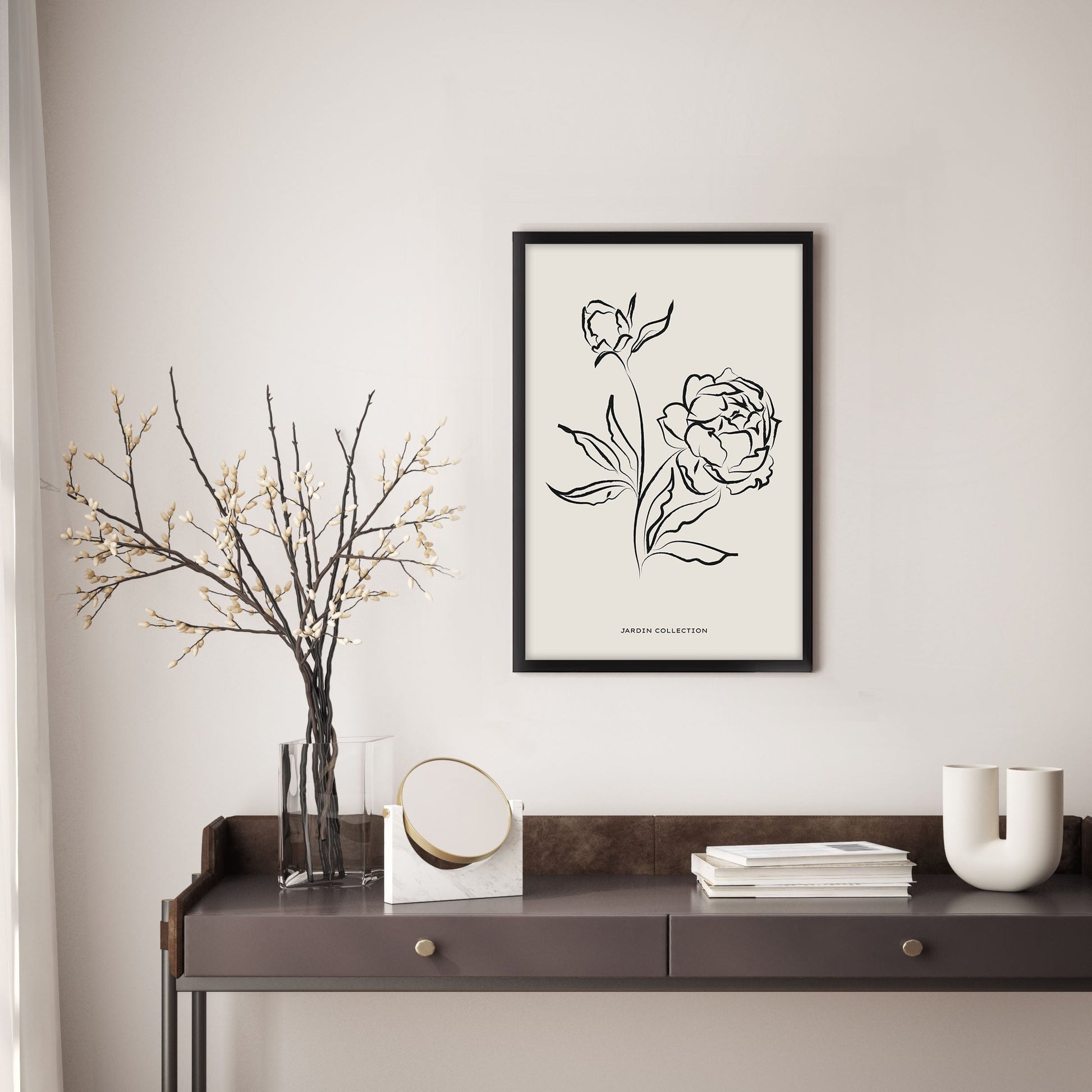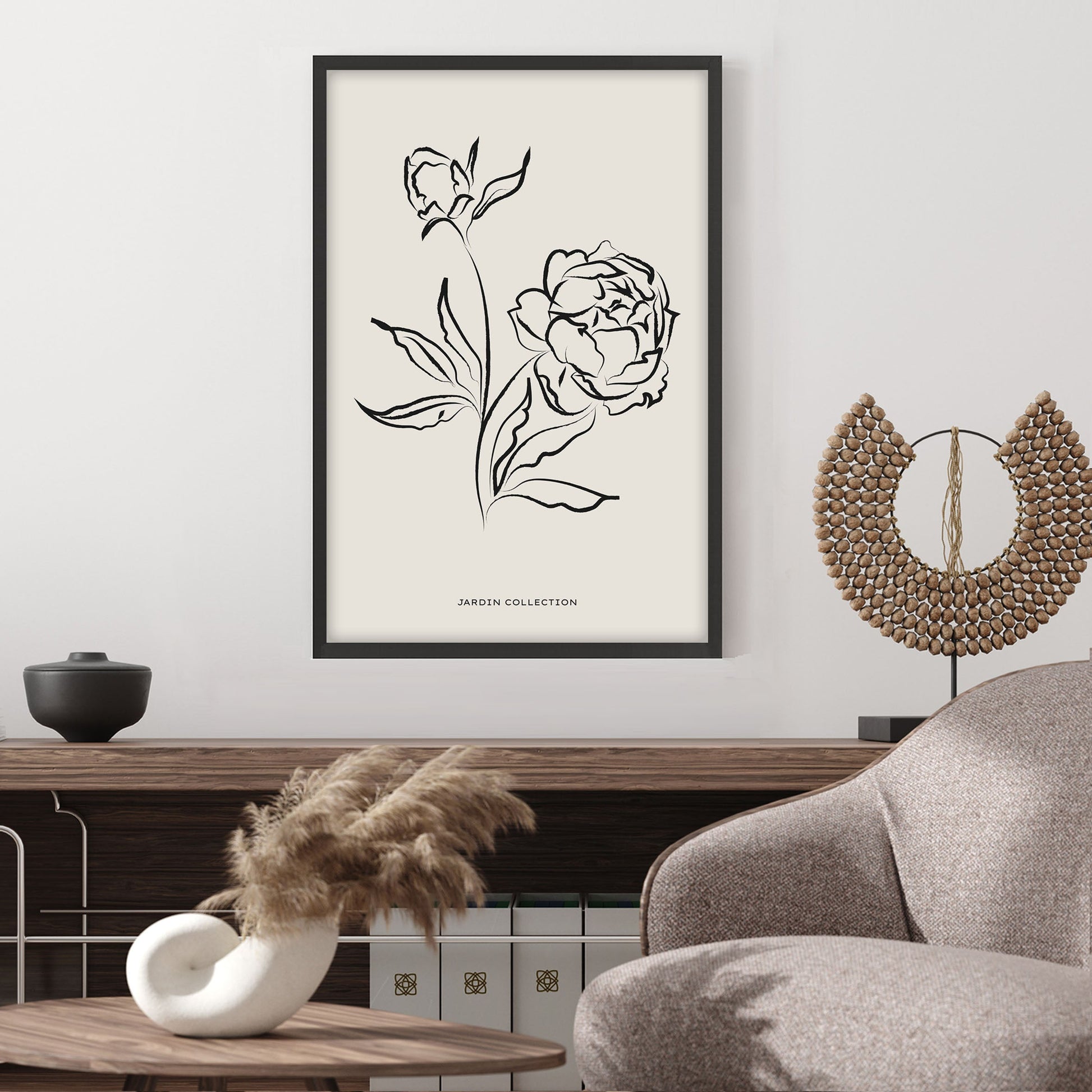 Add a touch of elegance to your home with this stunning Ethan Taylor™ ‘Flowers Beige Neutral' framed art print! This beige and black floral piece featuring florals is printed on premium, museum quality premium art paper in your choice of black or white wooden frames or unframed prints. The prints arrive secured within the frame, and ready to hang so that you can enjoy your new artwork in no time. With a variety of sizes available, you can find the perfect fit for any space.