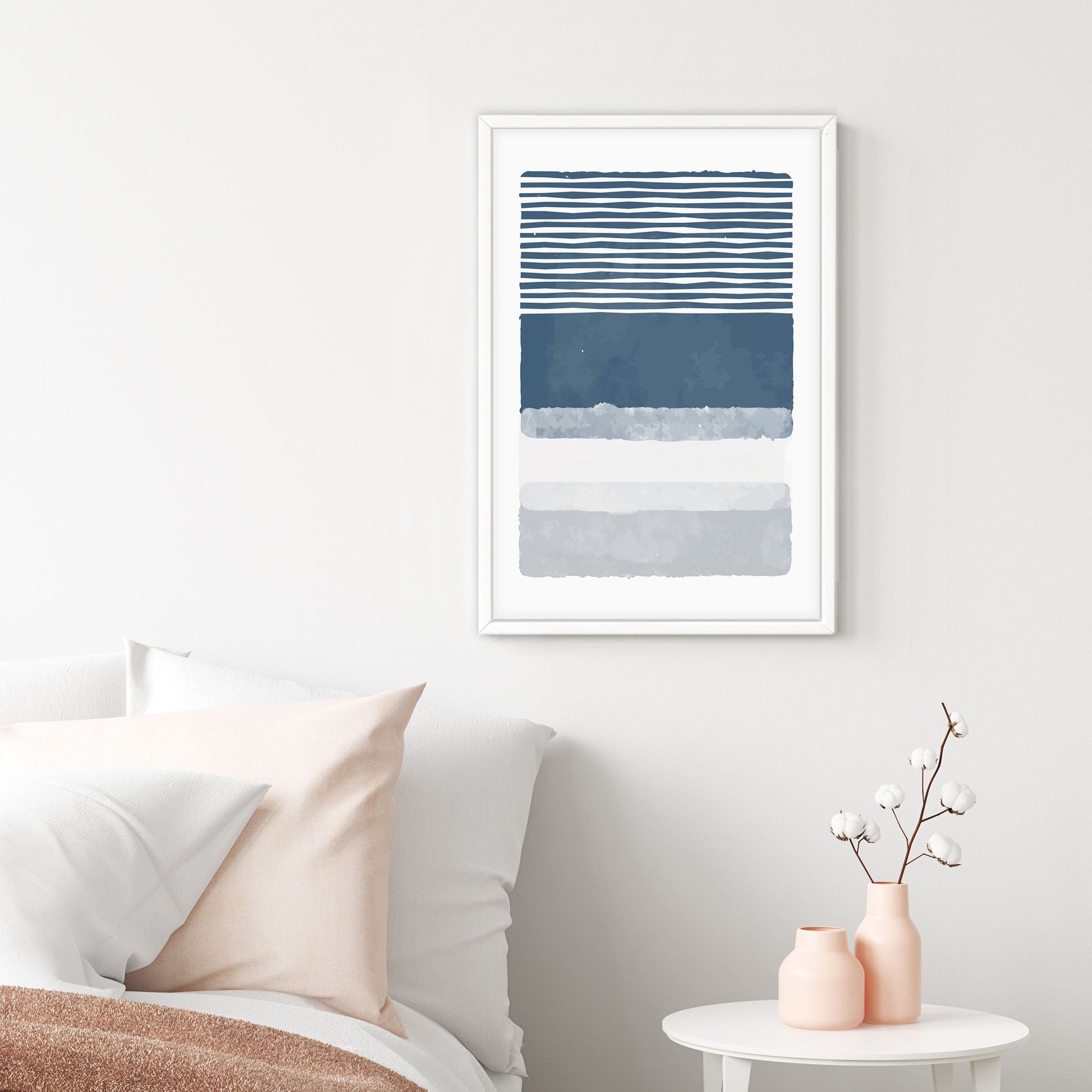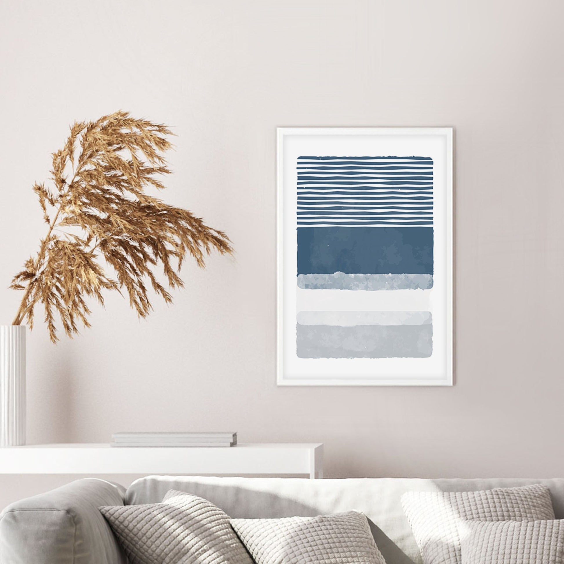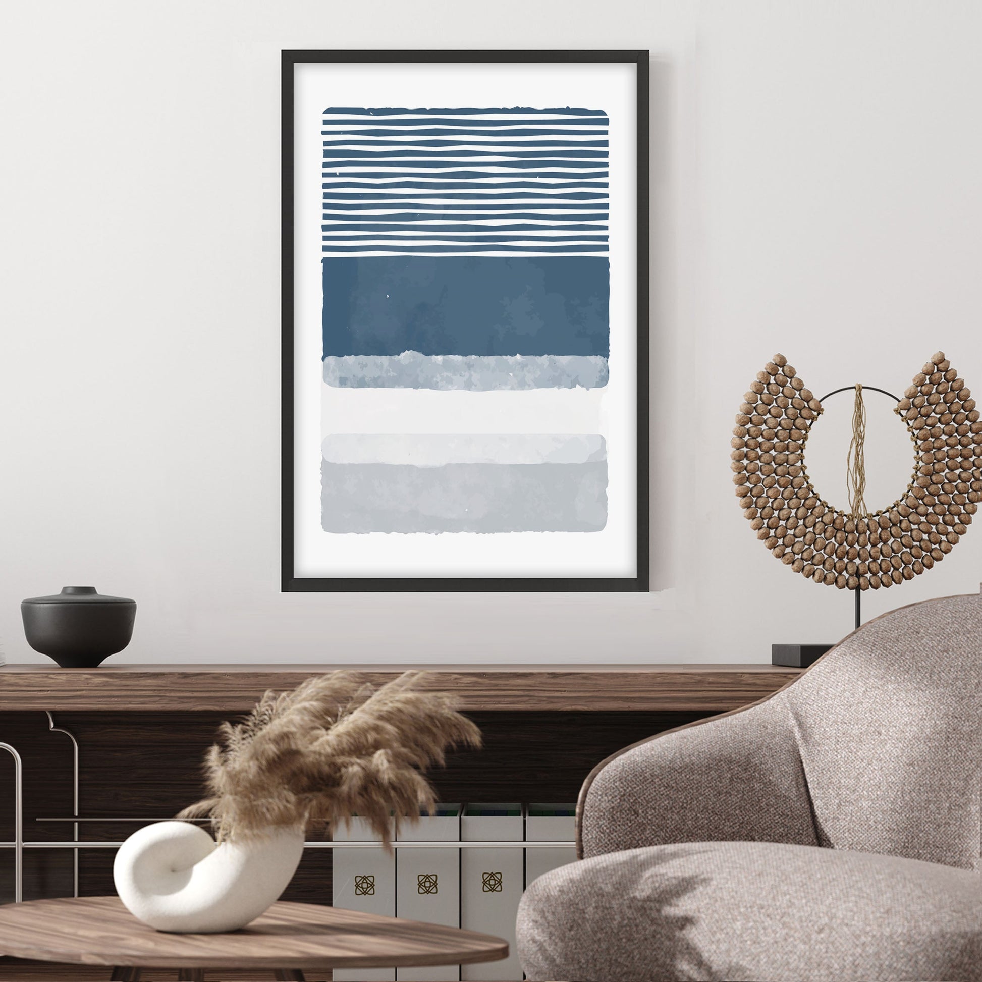 Add a touch of elegance to your home with this stunning Ethan Taylor™ ‘Blue Shapes' framed art print! This blue and white abstract piece featuring shapes is printed on premium, museum quality premium art paper in your choice of black or white wooden frames or unframed prints. The prints arrive secured within the frame, and ready to hang so that you can enjoy your new artwork in no time. With a variety of sizes available, you can find the perfect fit for any space.