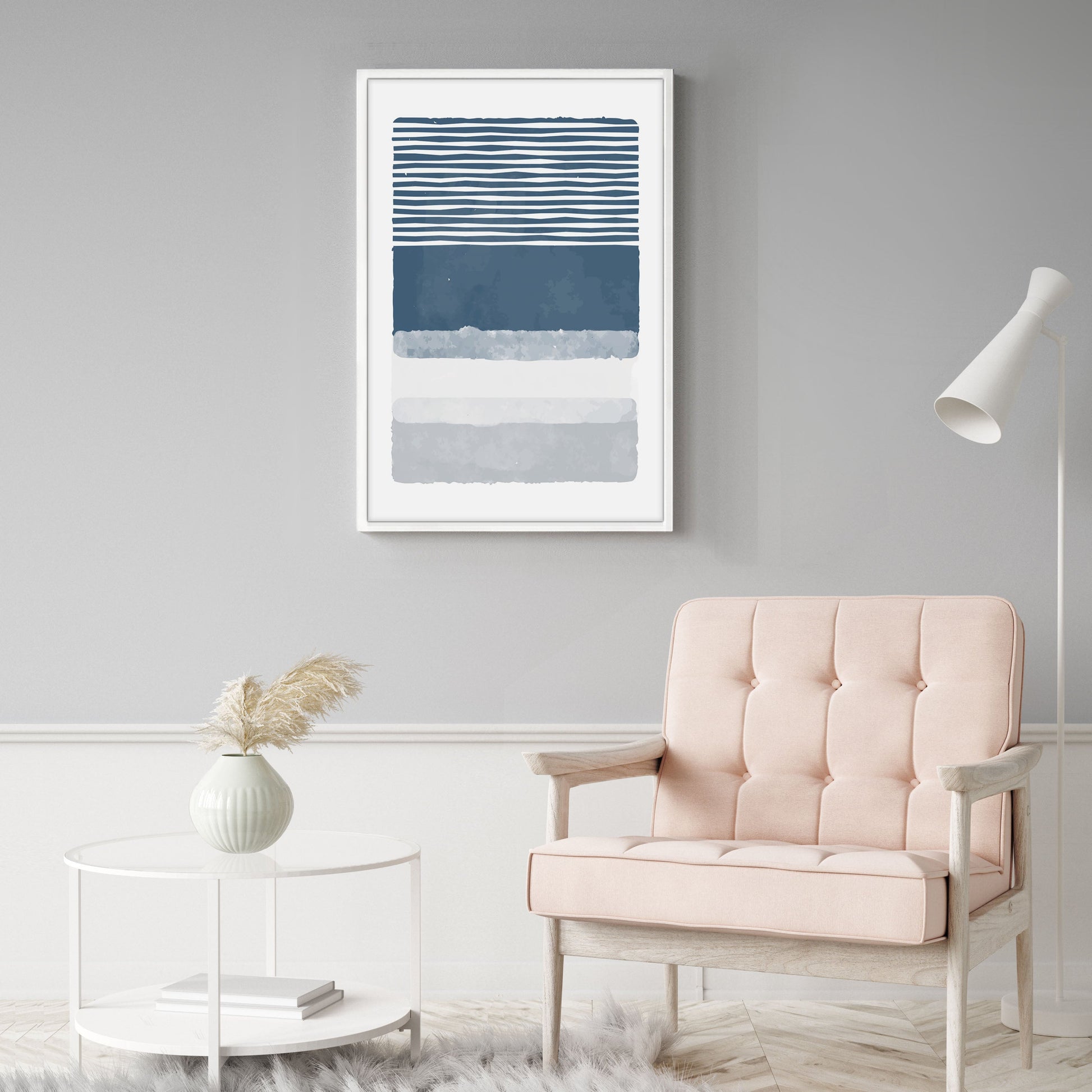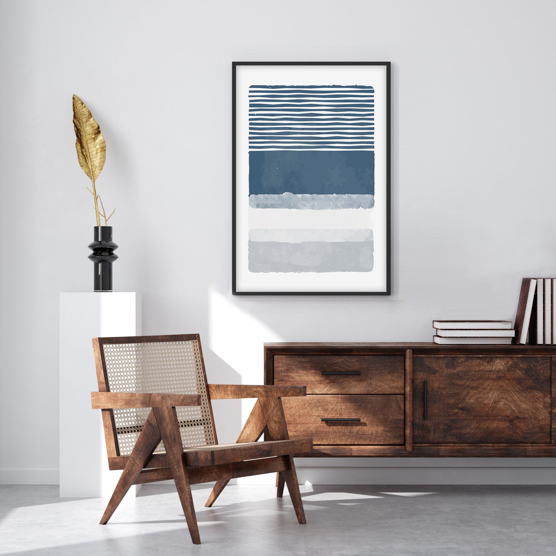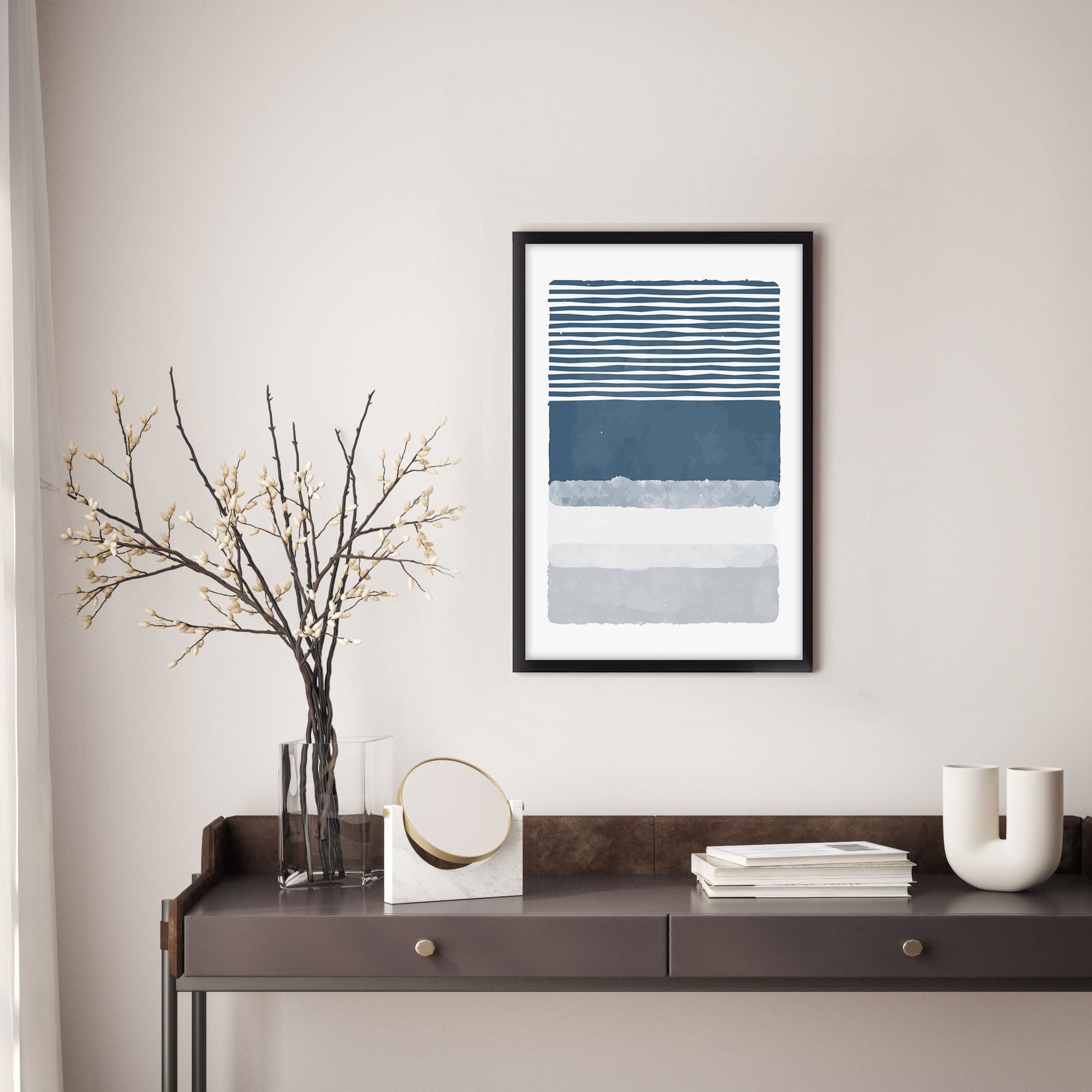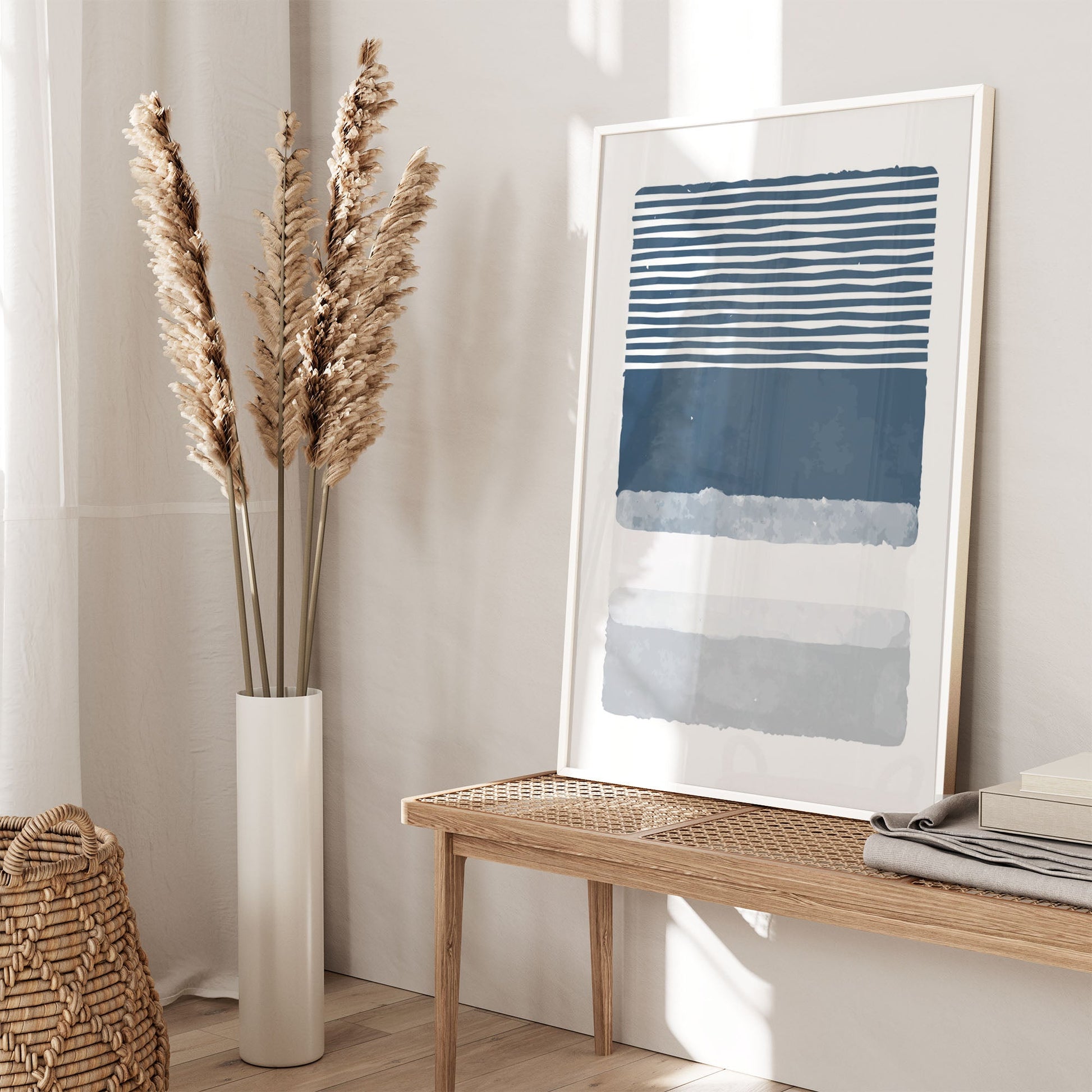 Add a touch of elegance to your home with this stunning Ethan Taylor™ ‘Blue Shapes' framed art print! This blue and white abstract piece featuring shapes is printed on premium, museum quality premium art paper in your choice of black or white wooden frames or unframed prints. The prints arrive secured within the frame, and ready to hang so that you can enjoy your new artwork in no time. With a variety of sizes available, you can find the perfect fit for any space.