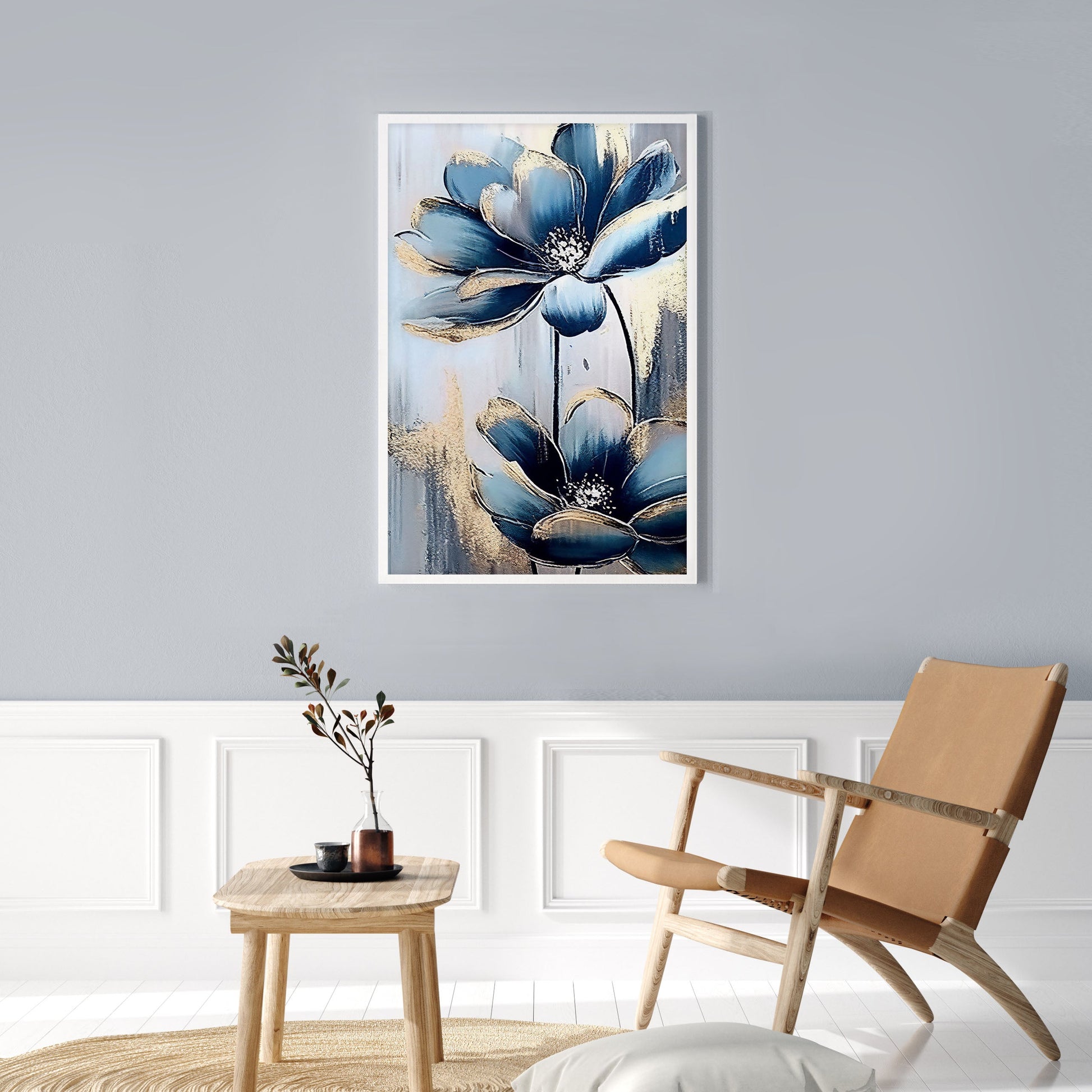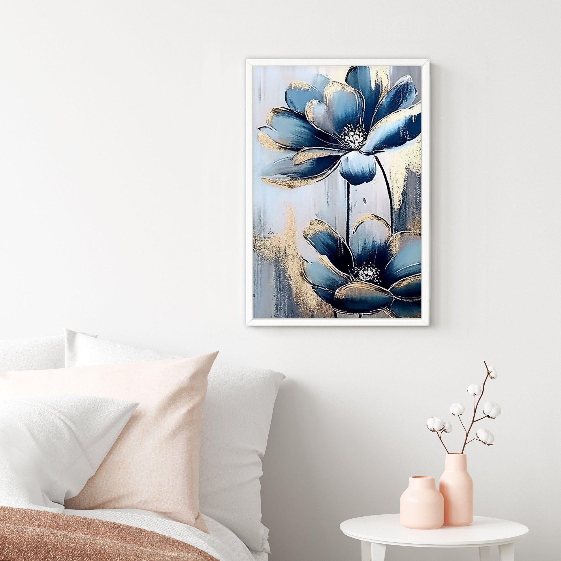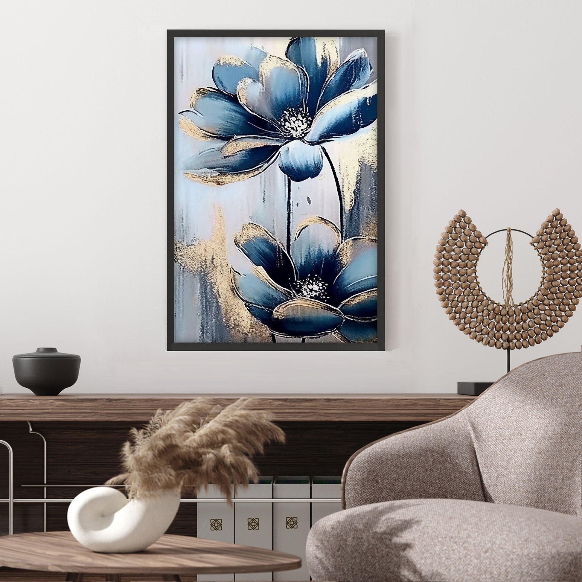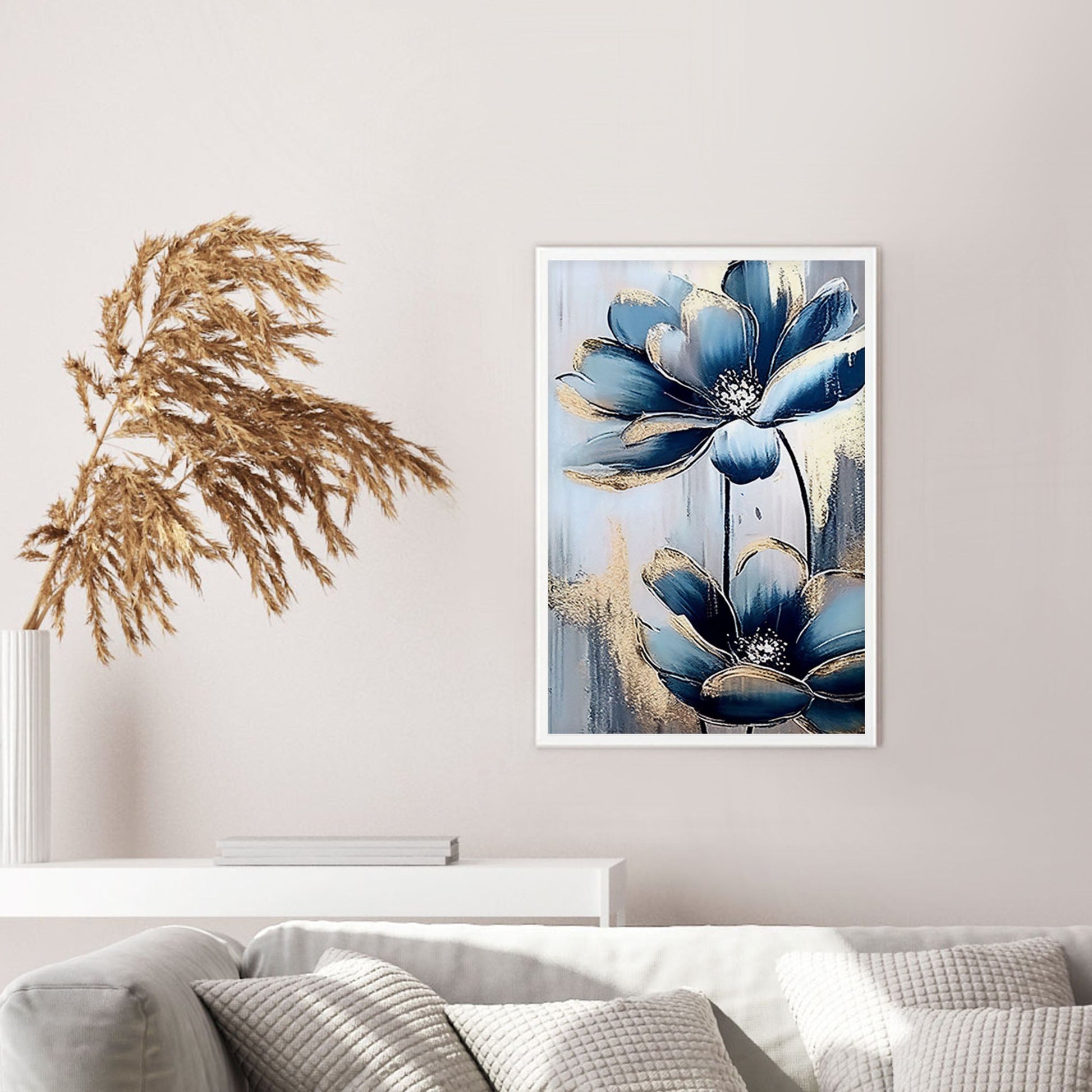 Add a touch of elegance to your home with this stunning Ethan Taylor™ ‘Blue and Gold Flowers' framed art print! This blue and gold floral piece featuring florals is printed on premium, museum quality premium art paper in your choice of black or white wooden frames or unframed prints. The prints arrive secured within the frame, and ready to hang so that you can enjoy your new artwork in no time. With a variety of sizes available, you can find the perfect fit for any space.