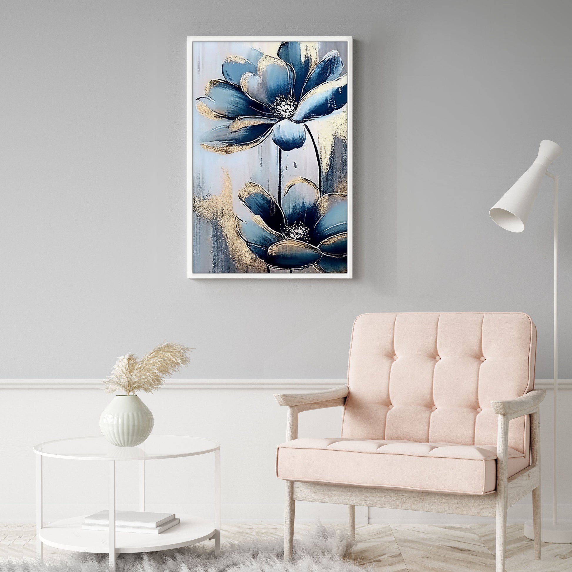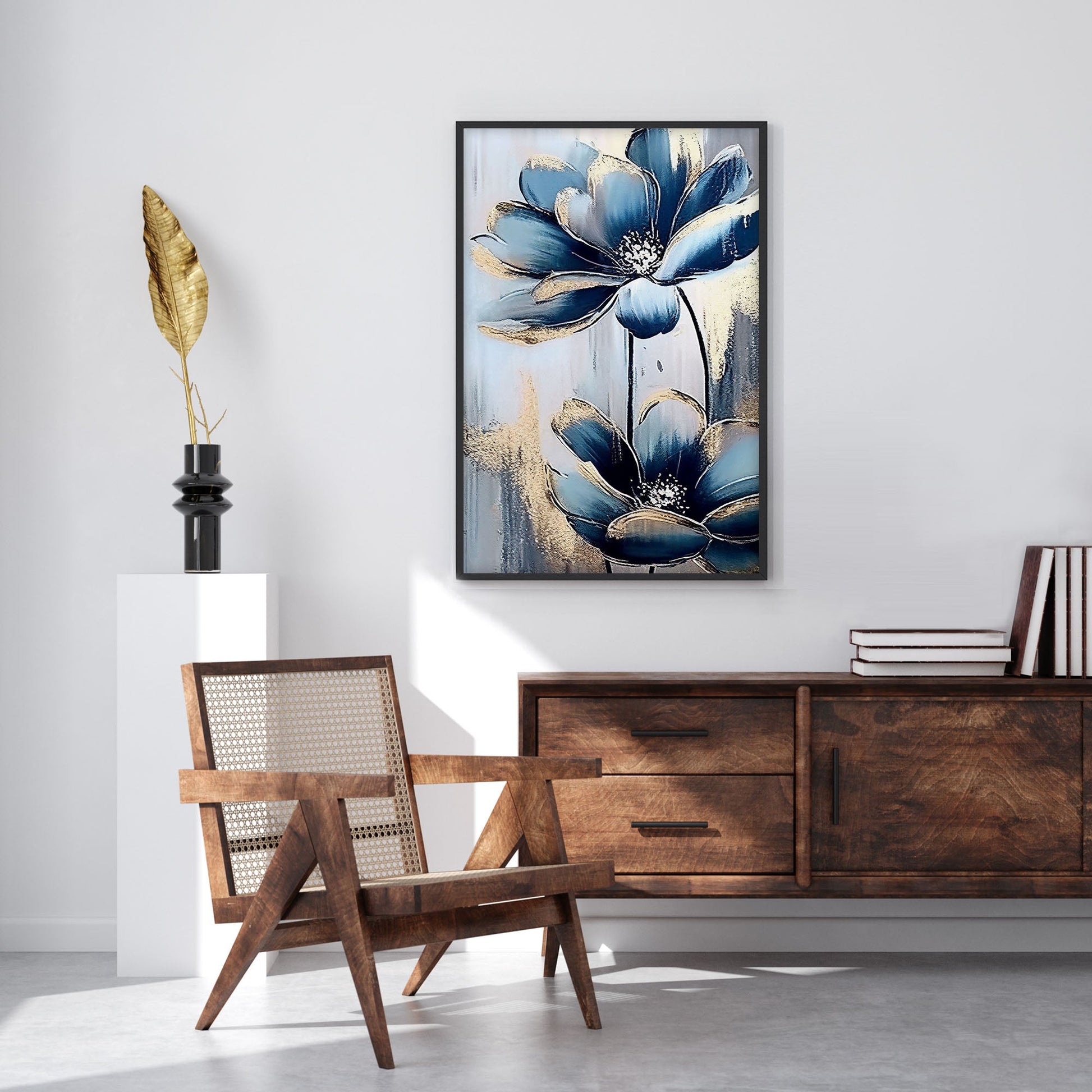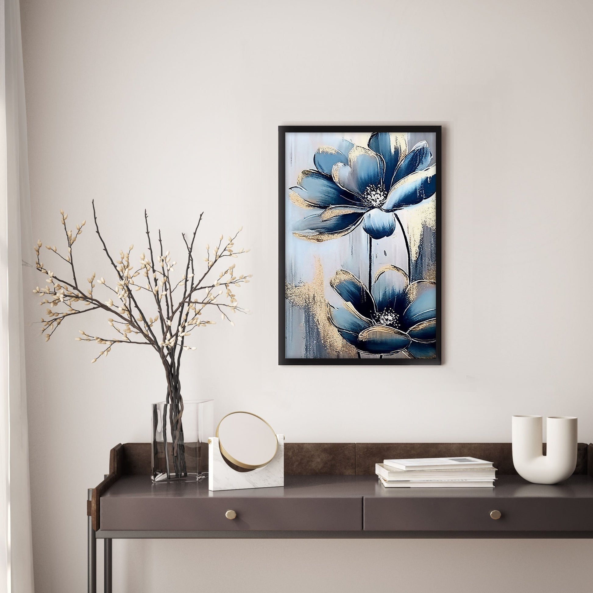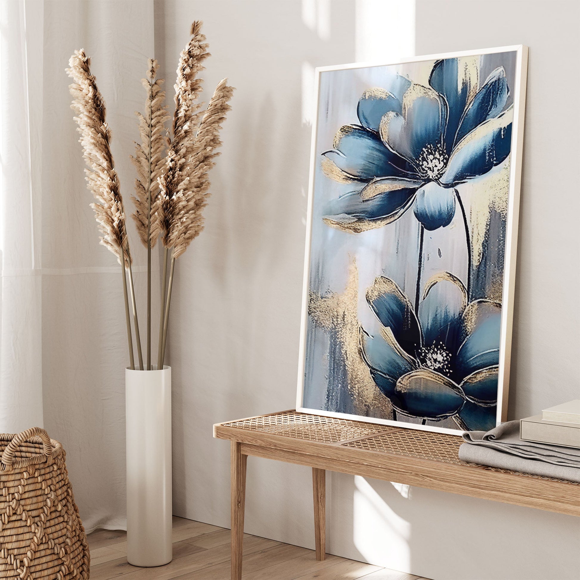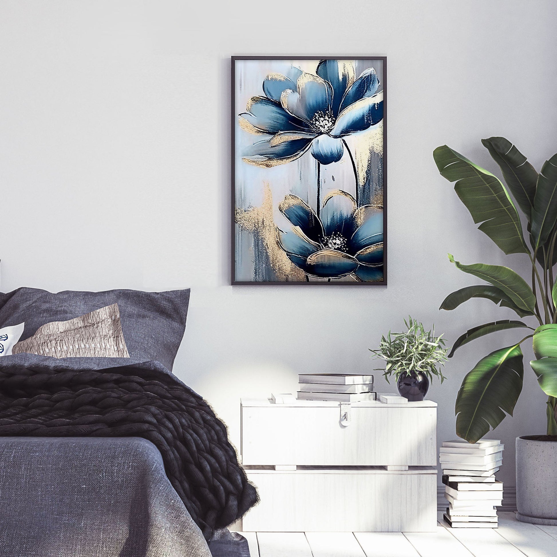 Add a touch of elegance to your home with this stunning Ethan Taylor™ ‘Blue and Gold Flowers' framed art print! This blue and gold floral piece featuring florals is printed on premium, museum quality premium art paper in your choice of black or white wooden frames or unframed prints. The prints arrive secured within the frame, and ready to hang so that you can enjoy your new artwork in no time. With a variety of sizes available, you can find the perfect fit for any space.