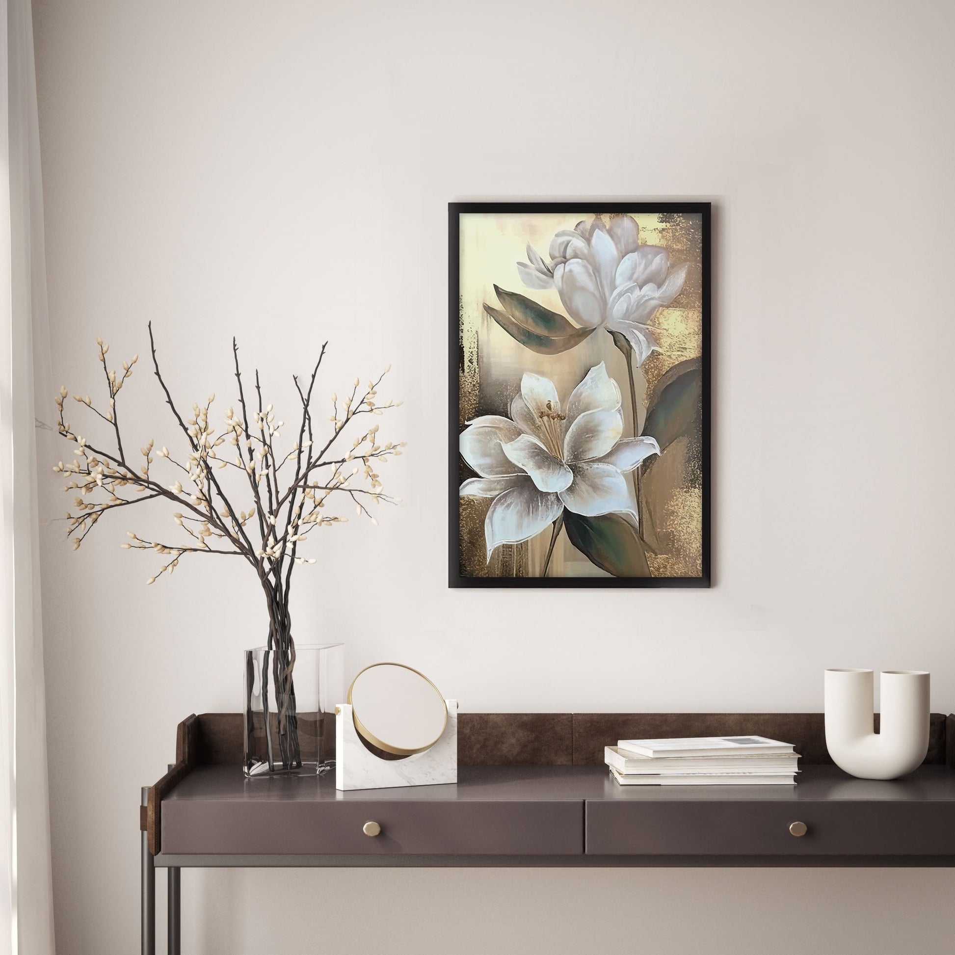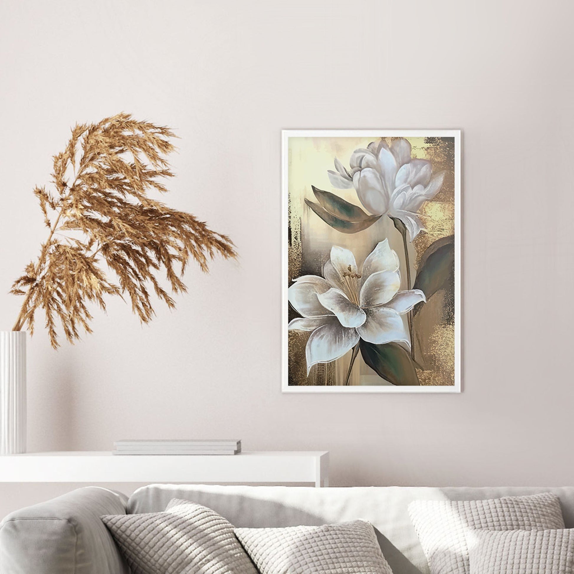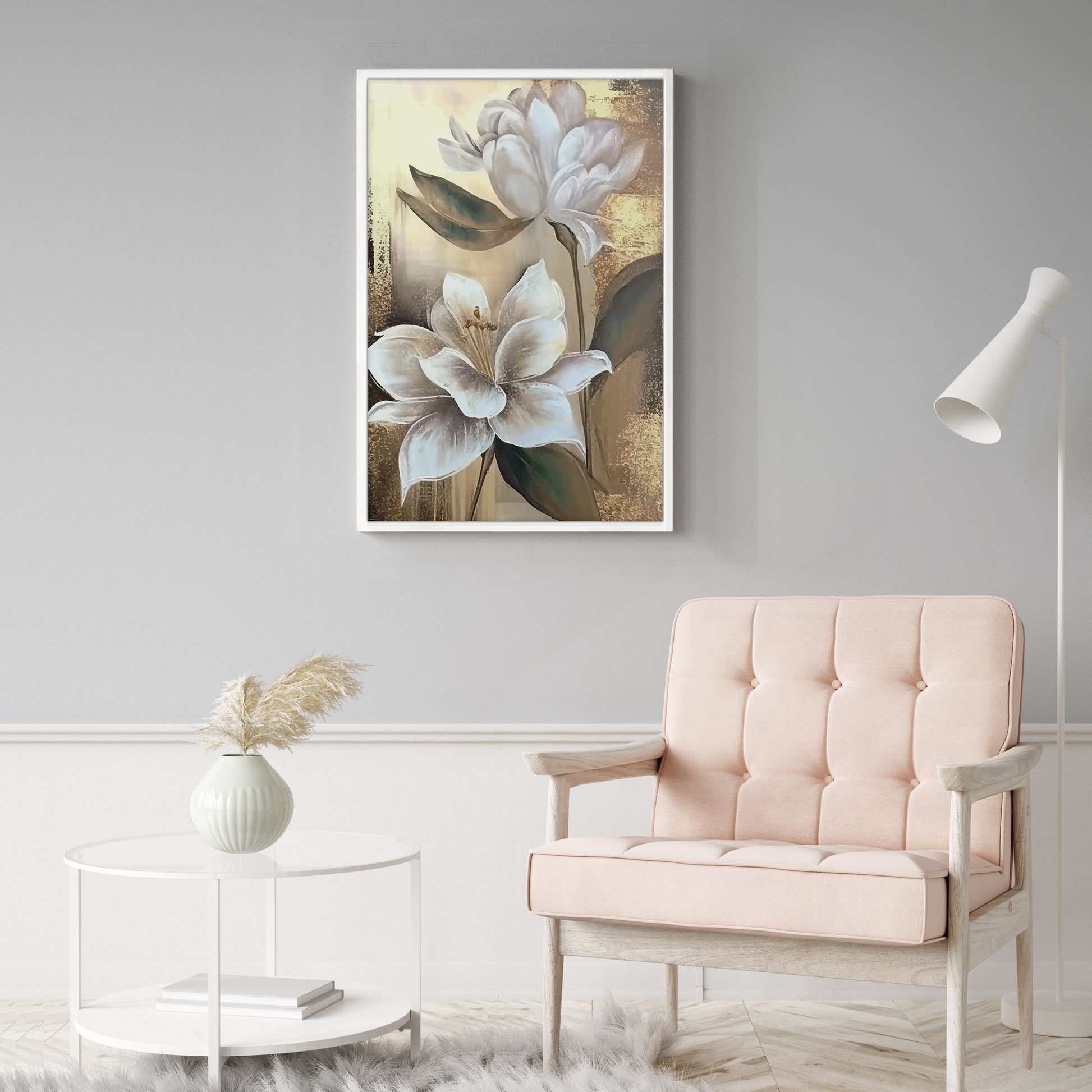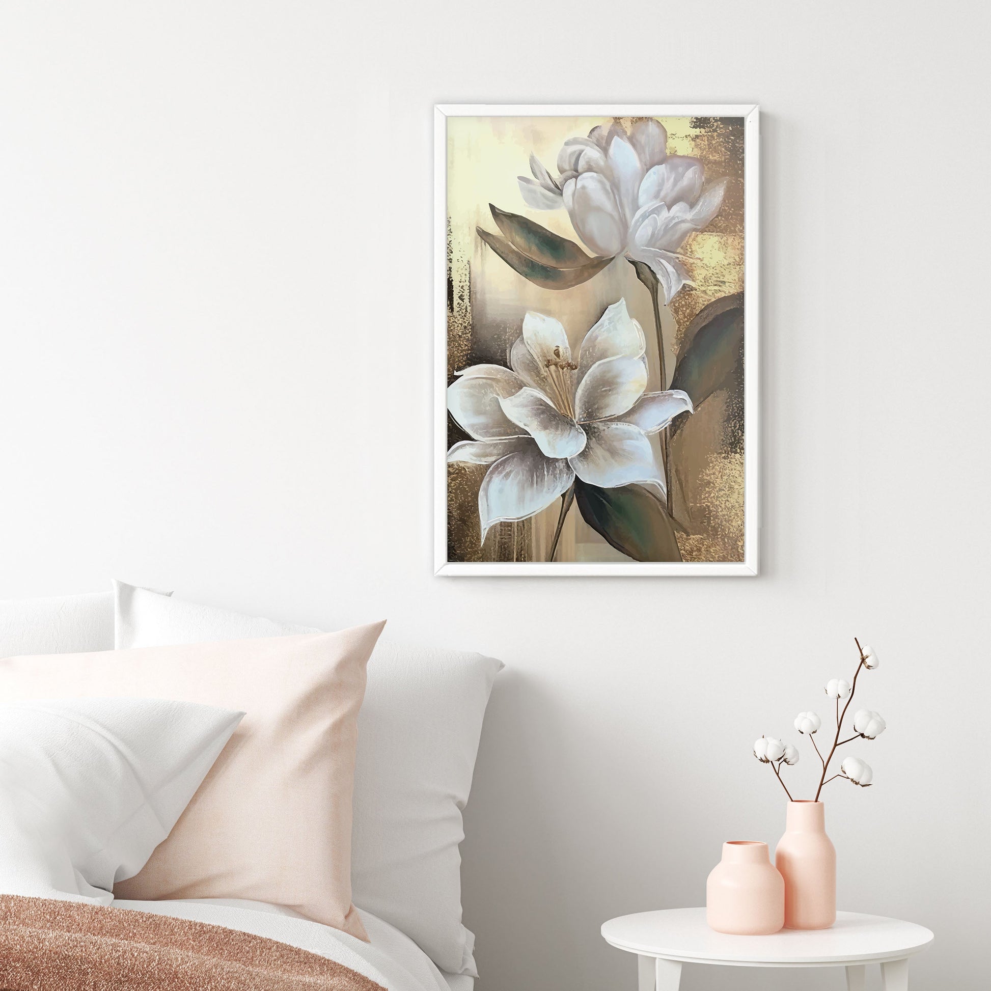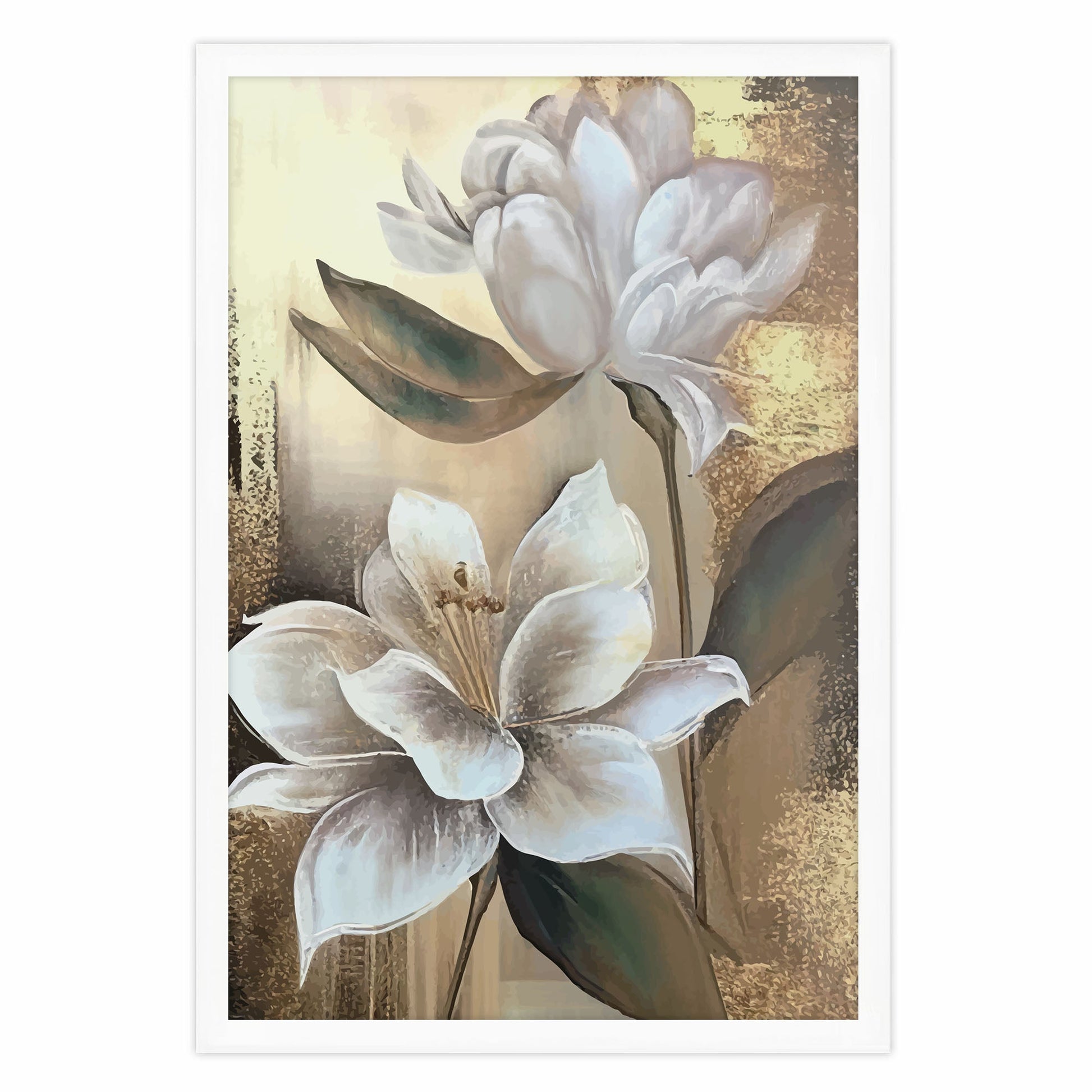 Add a touch of elegance to your home with this stunning Ethan Taylor™ ‘White Magnolias' framed art print! This white and gold floral piece featuring florals is printed on premium, museum quality premium art paper in your choice of black or white wooden frames or unframed prints. The prints arrive secured within the frame, and ready to hang so that you can enjoy your new artwork in no time. With a variety of sizes available, you can find the perfect fit for any space.