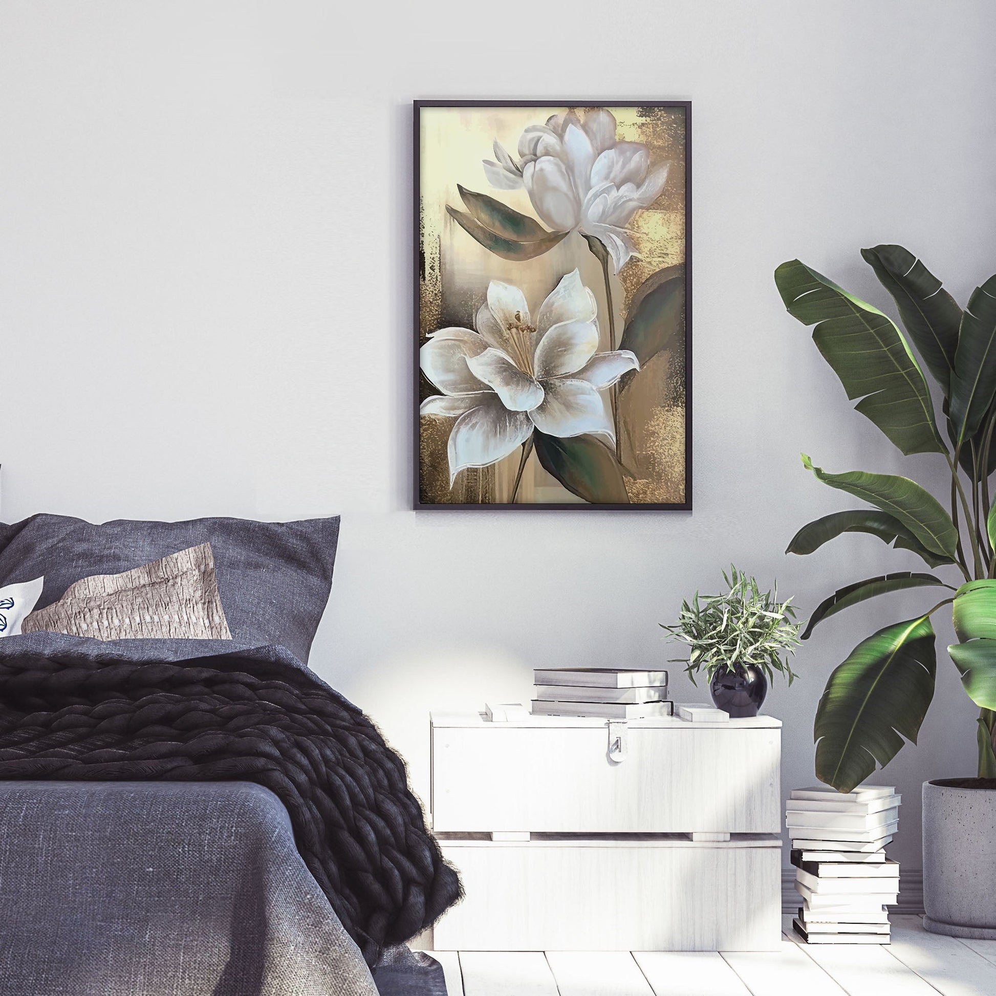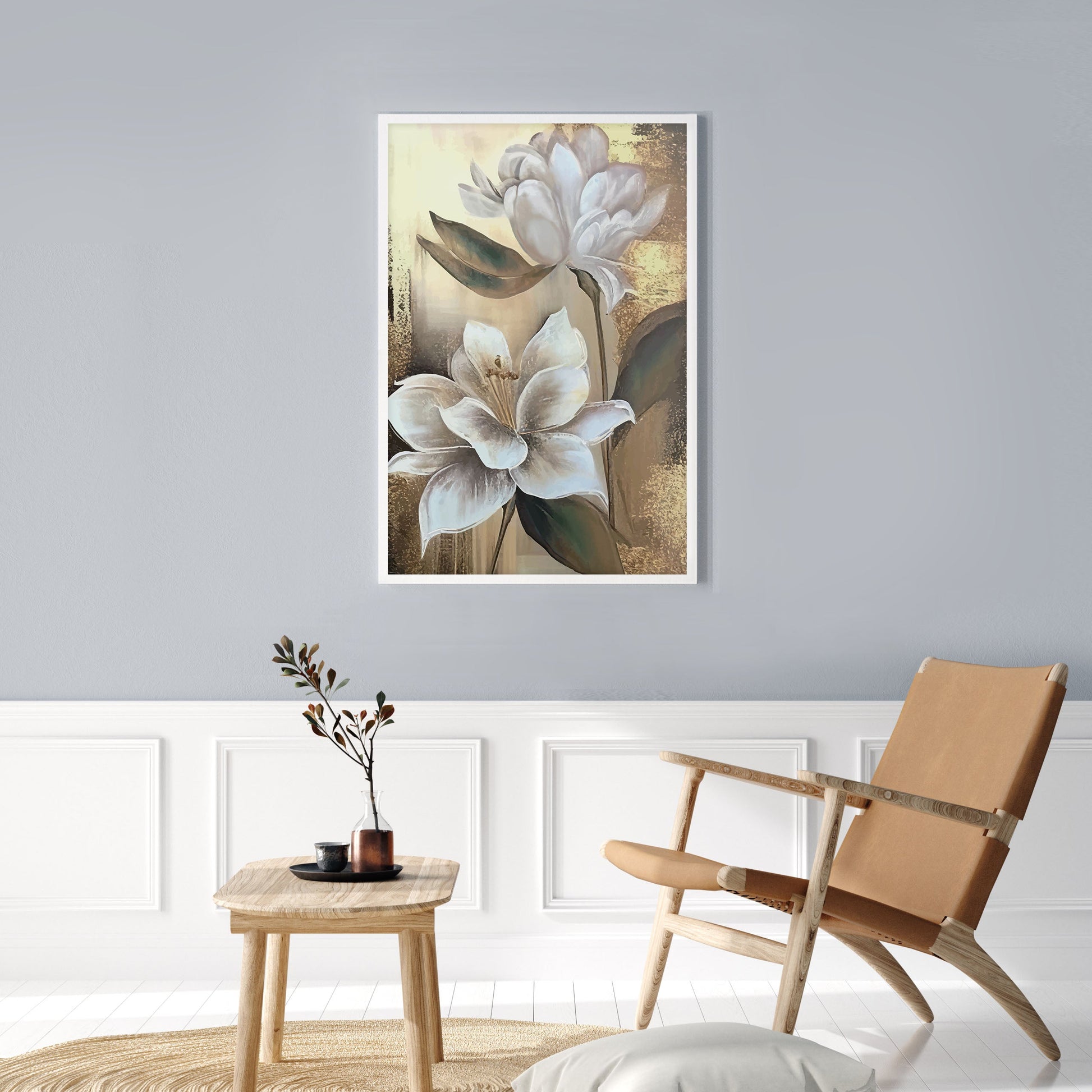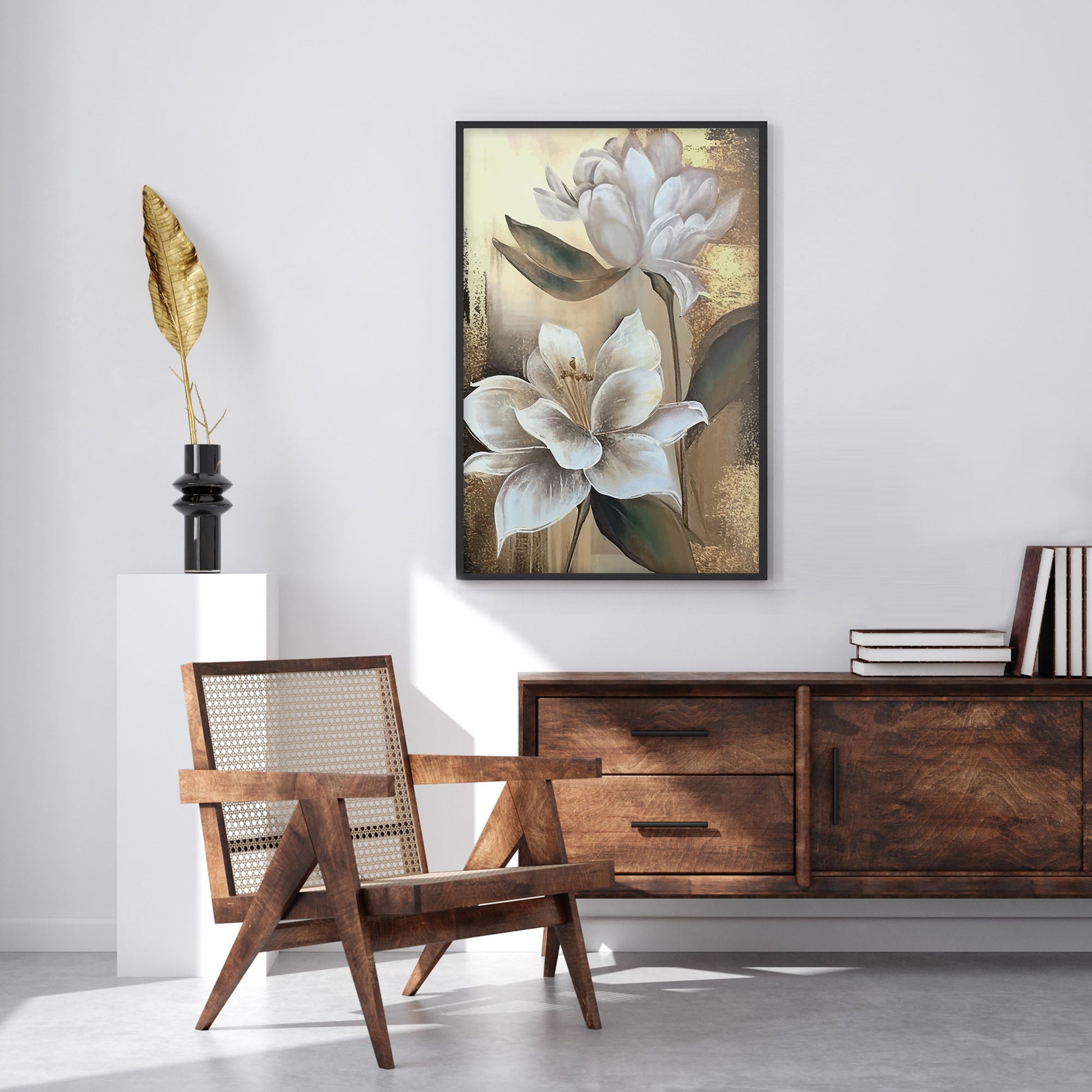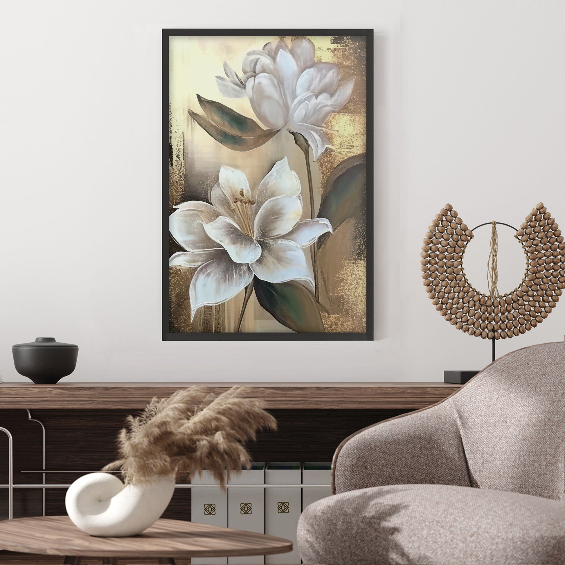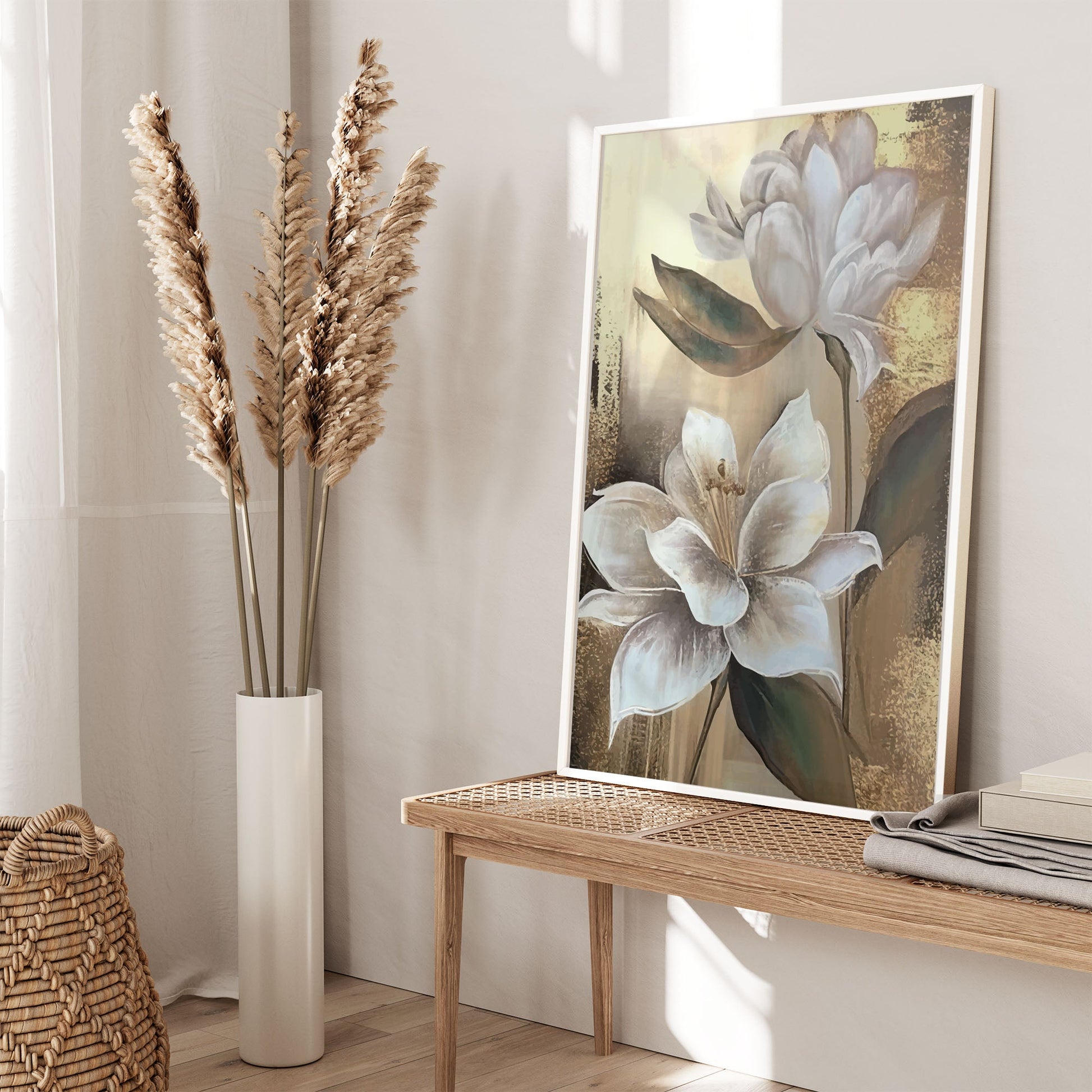 Add a touch of elegance to your home with this stunning Ethan Taylor™ ‘White Magnolias' framed art print! This white and gold floral piece featuring florals is printed on premium, museum quality premium art paper in your choice of black or white wooden frames or unframed prints. The prints arrive secured within the frame, and ready to hang so that you can enjoy your new artwork in no time. With a variety of sizes available, you can find the perfect fit for any space.