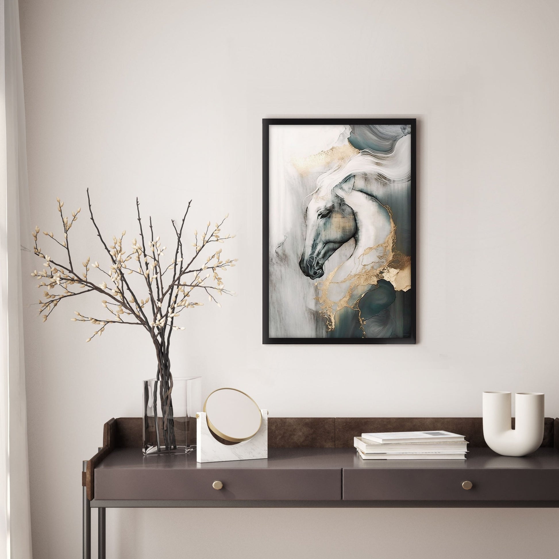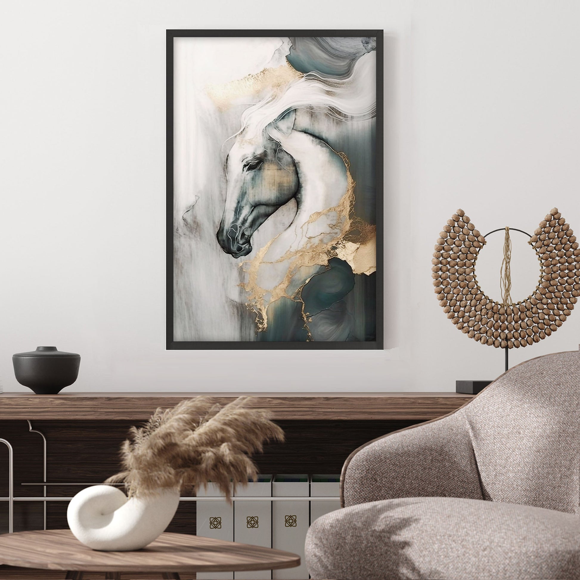 Add a touch of elegance to your home with this stunning Ethan Taylor™ ‘Golden Equestrian' framed art print! This gray and gold animals piece featuring farm animals is printed on premium, museum quality premium art paper in your choice of black or white wooden frames or unframed prints. The prints arrive secured within the frame, and ready to hang so that you can enjoy your new artwork in no time. With a variety of sizes available, you can find the perfect fit for any space.