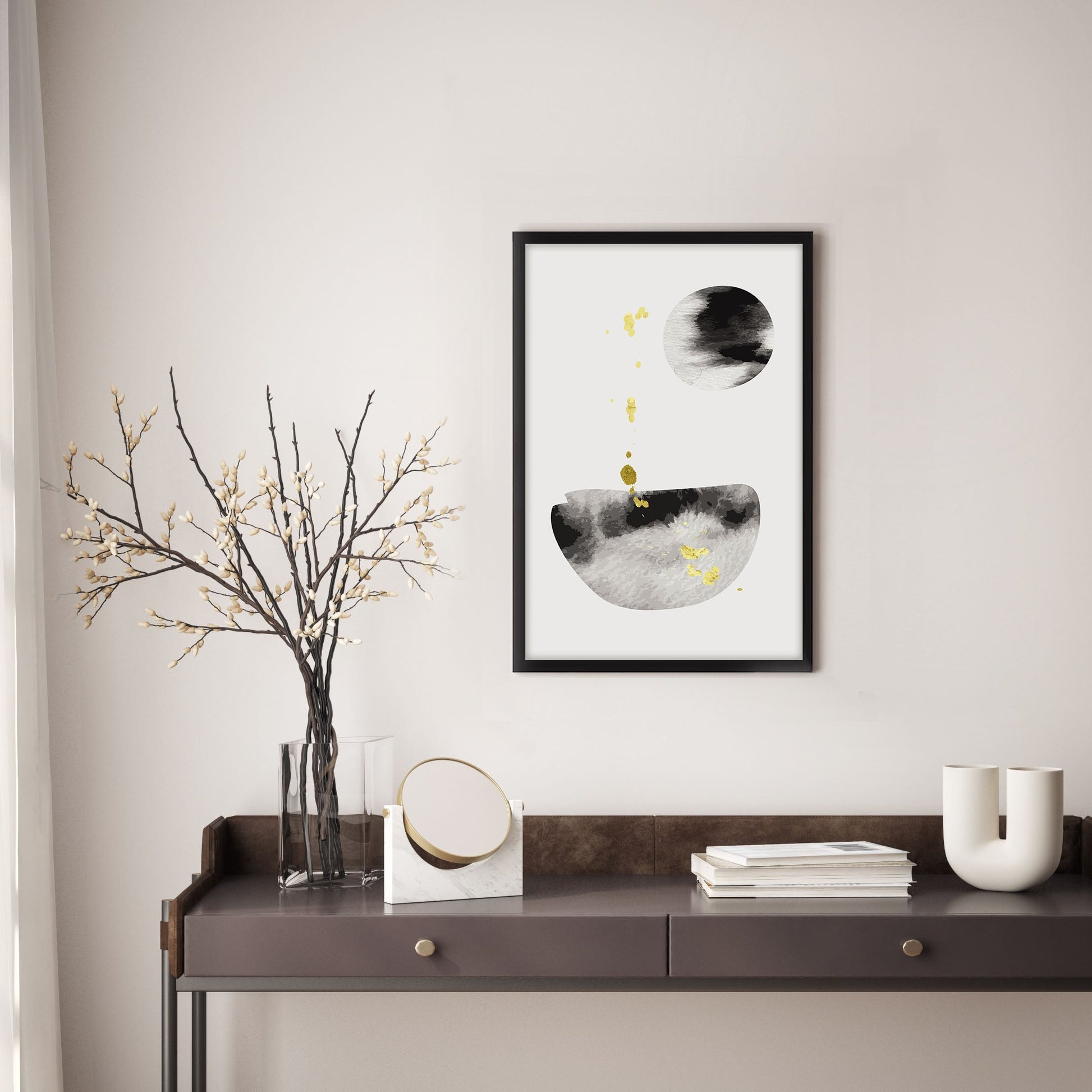 - Art print is placed within the frame. The end recipient can hang it directly on the wall.