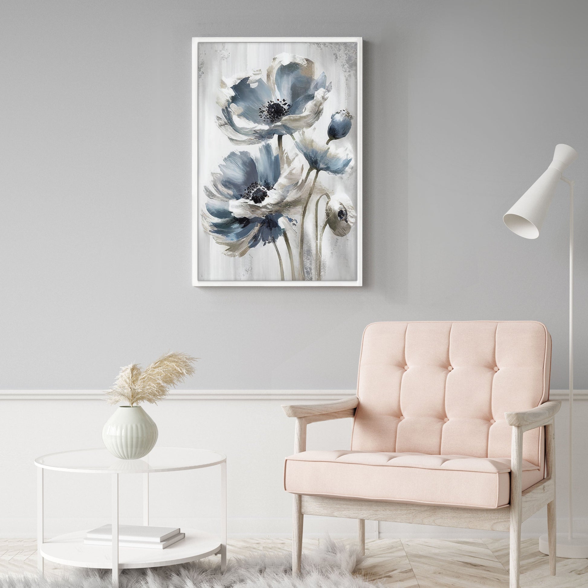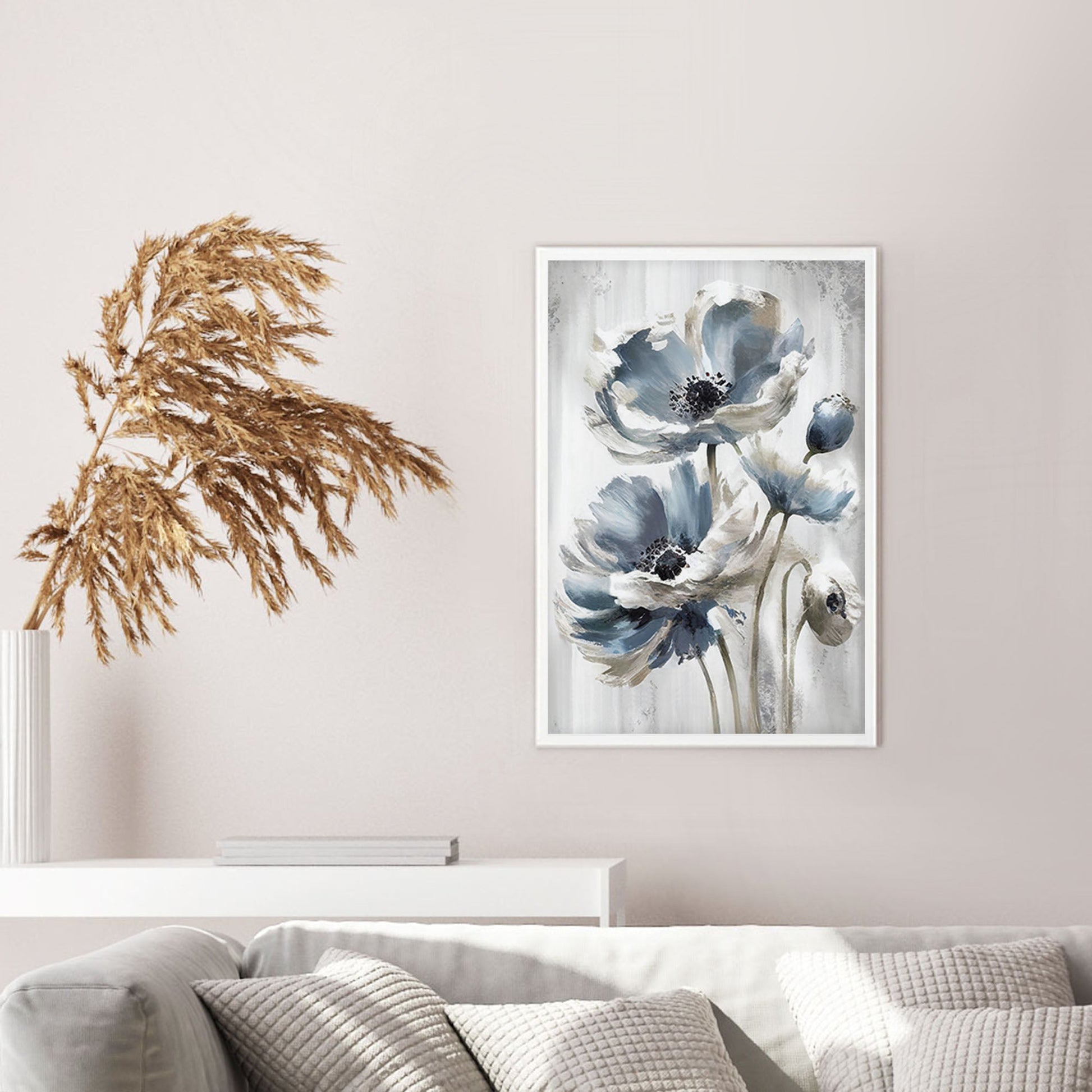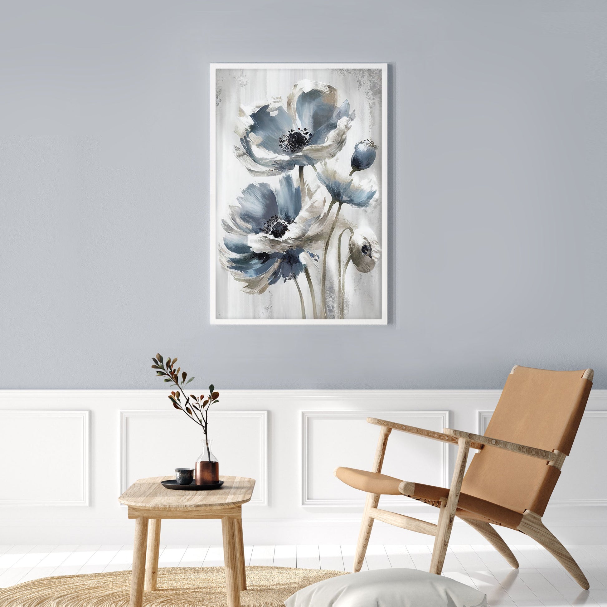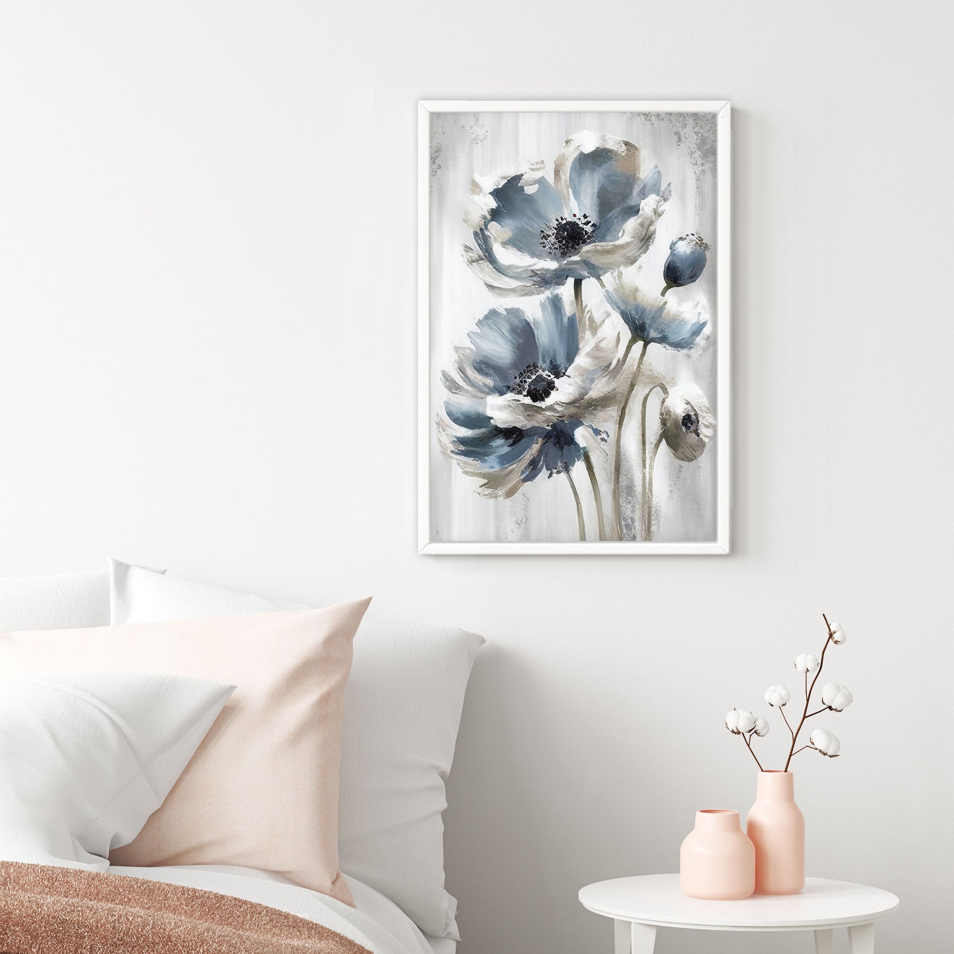 Add a touch of elegance to your home with this stunning Ethan Taylor™ ‘Blue and Silver Flowers' framed art print! This blue and gray floral piece featuring florals is printed on premium, museum quality premium art paper in your choice of black or white wooden frames or unframed prints. The prints arrive secured within the frame, and ready to hang so that you can enjoy your new artwork in no time. With a variety of sizes available, you can find the perfect fit for any space.