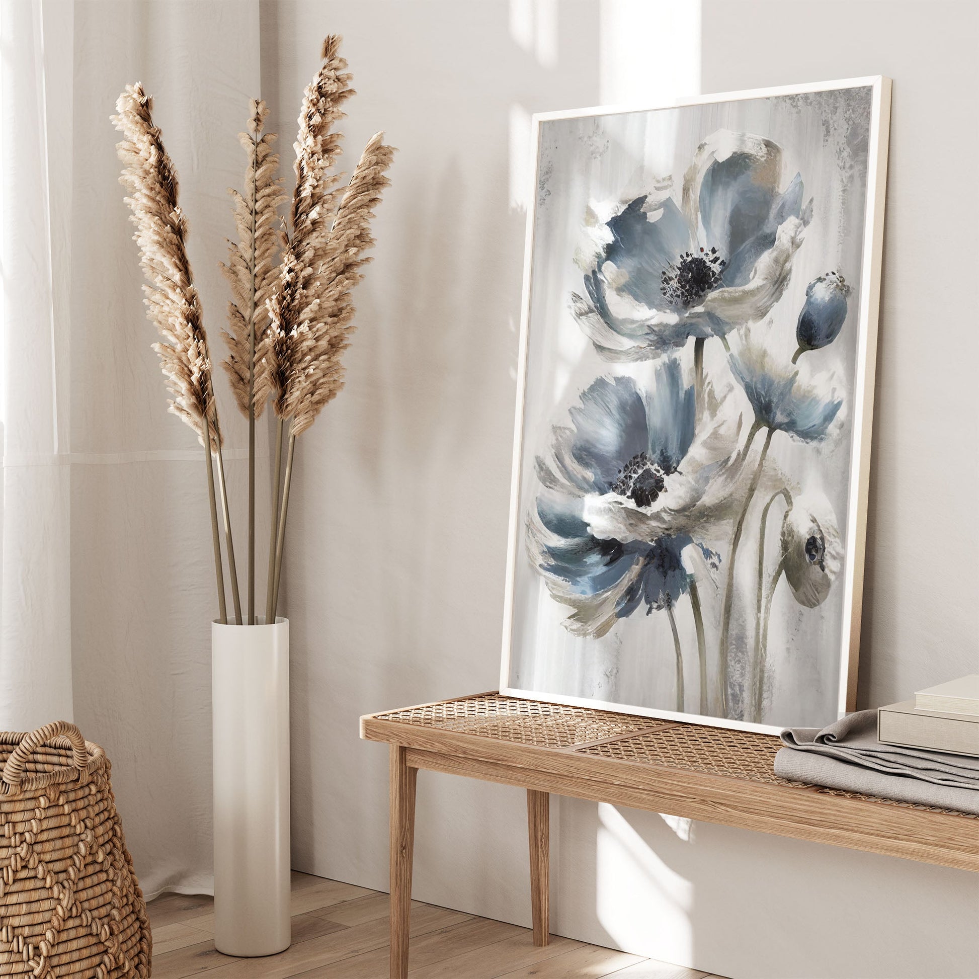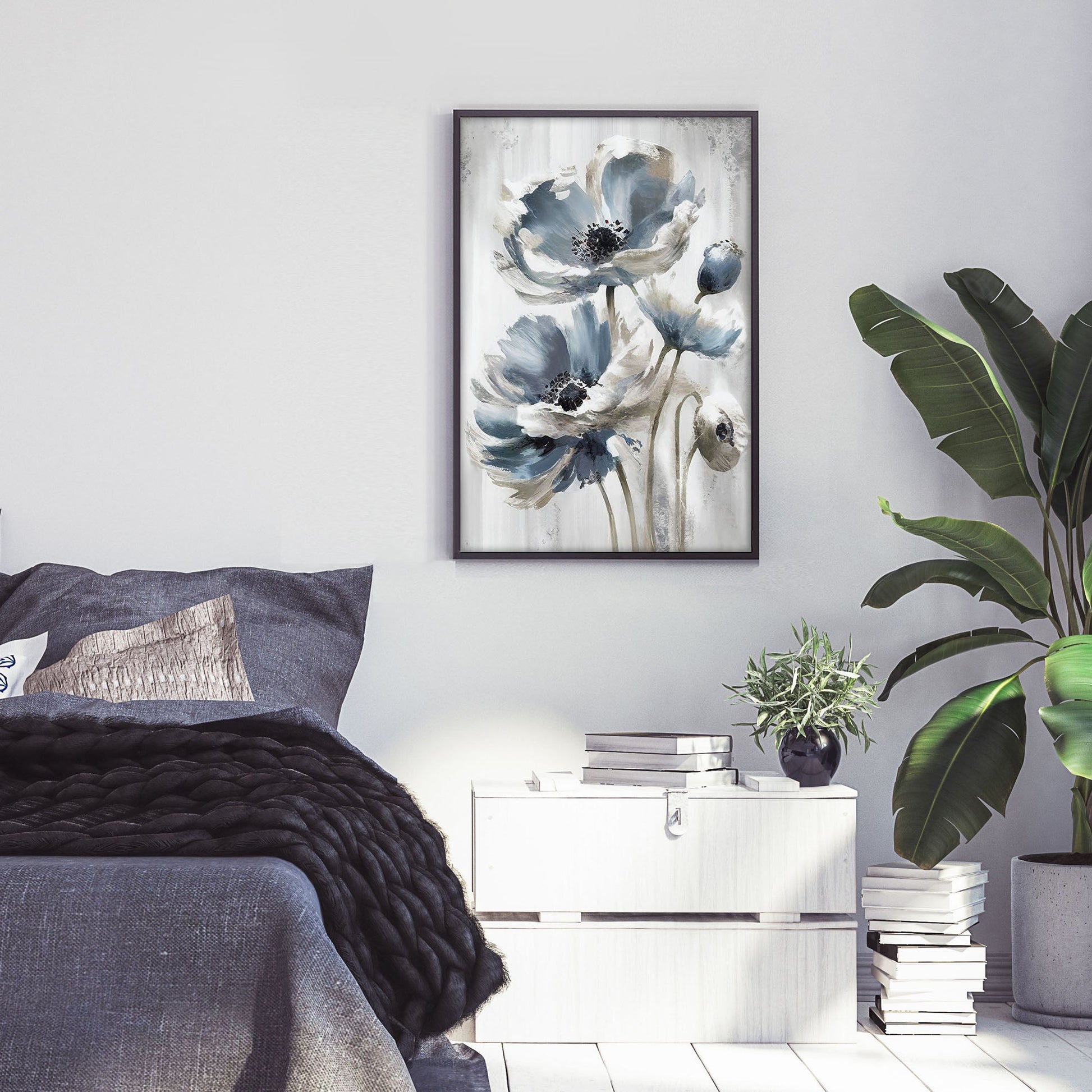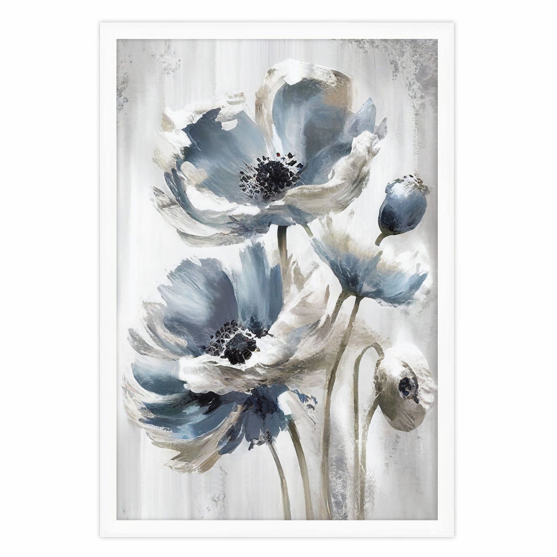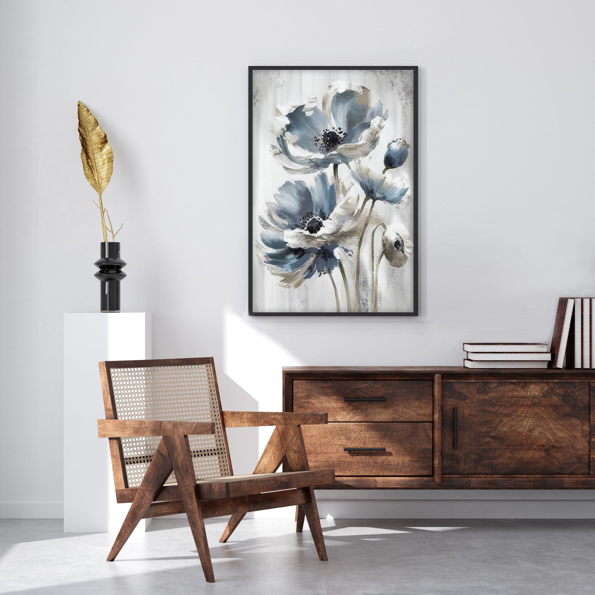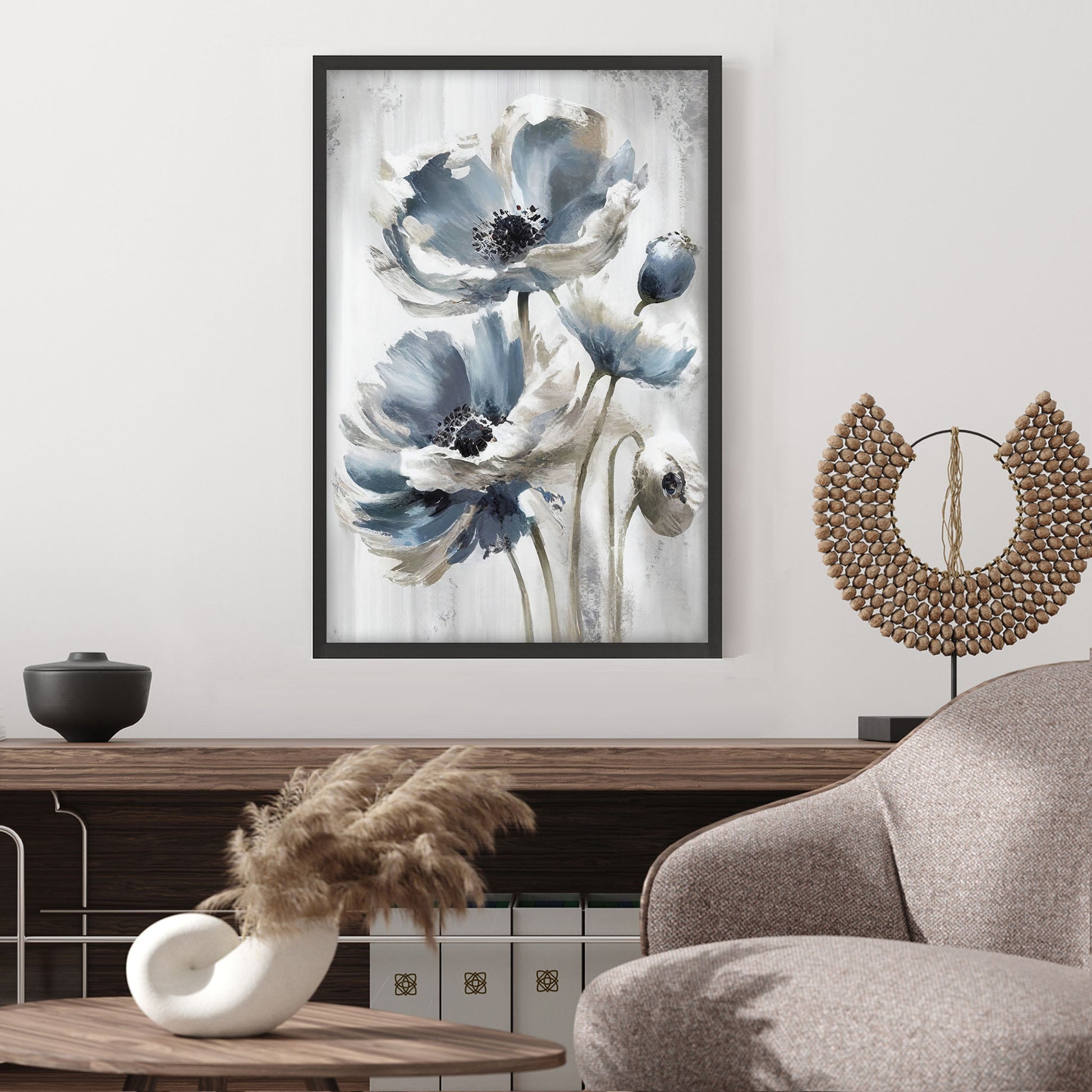 Add a touch of elegance to your home with this stunning Ethan Taylor™ ‘Blue and Silver Flowers' framed art print! This blue and gray floral piece featuring florals is printed on premium, museum quality premium art paper in your choice of black or white wooden frames or unframed prints. The prints arrive secured within the frame, and ready to hang so that you can enjoy your new artwork in no time. With a variety of sizes available, you can find the perfect fit for any space.