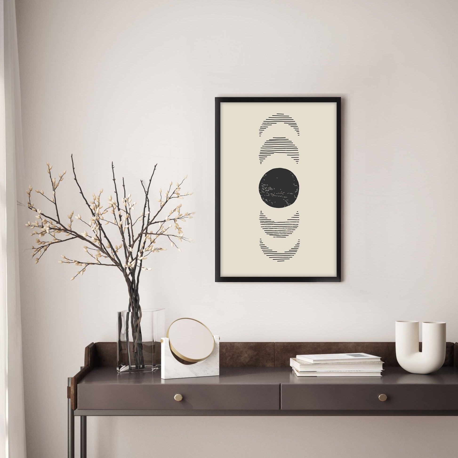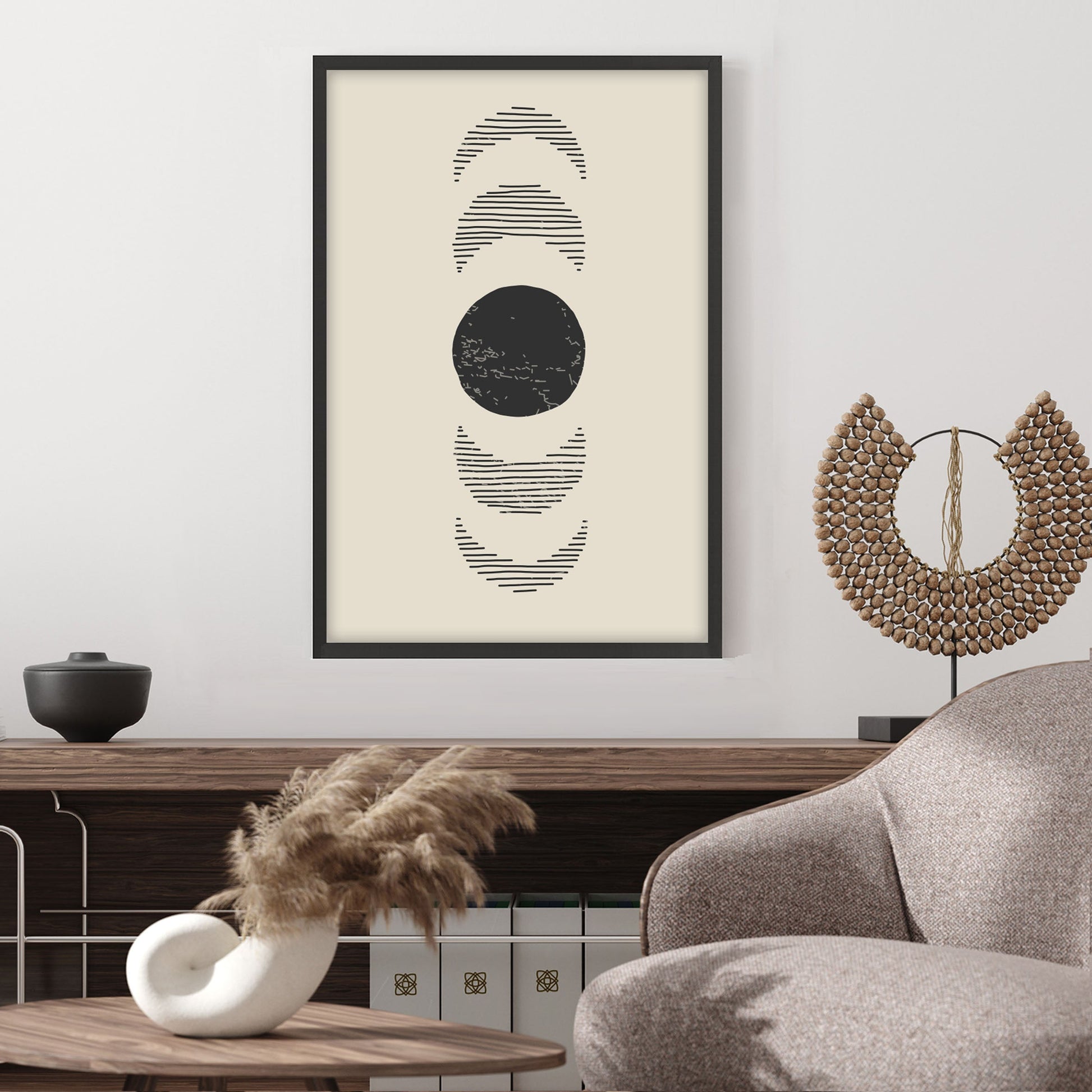 Add a touch of elegance to your home with this stunning Ethan Taylor™ ‘Moon Phases I' framed art print! This beige and black astronomy and space piece featuring moon phases is printed on premium, museum quality premium art paper in your choice of black or white wooden frames or unframed prints. The prints arrive secured within the frame, and ready to hang so that you can enjoy your new artwork in no time. With a variety of sizes available, you can find the perfect fit for any space.