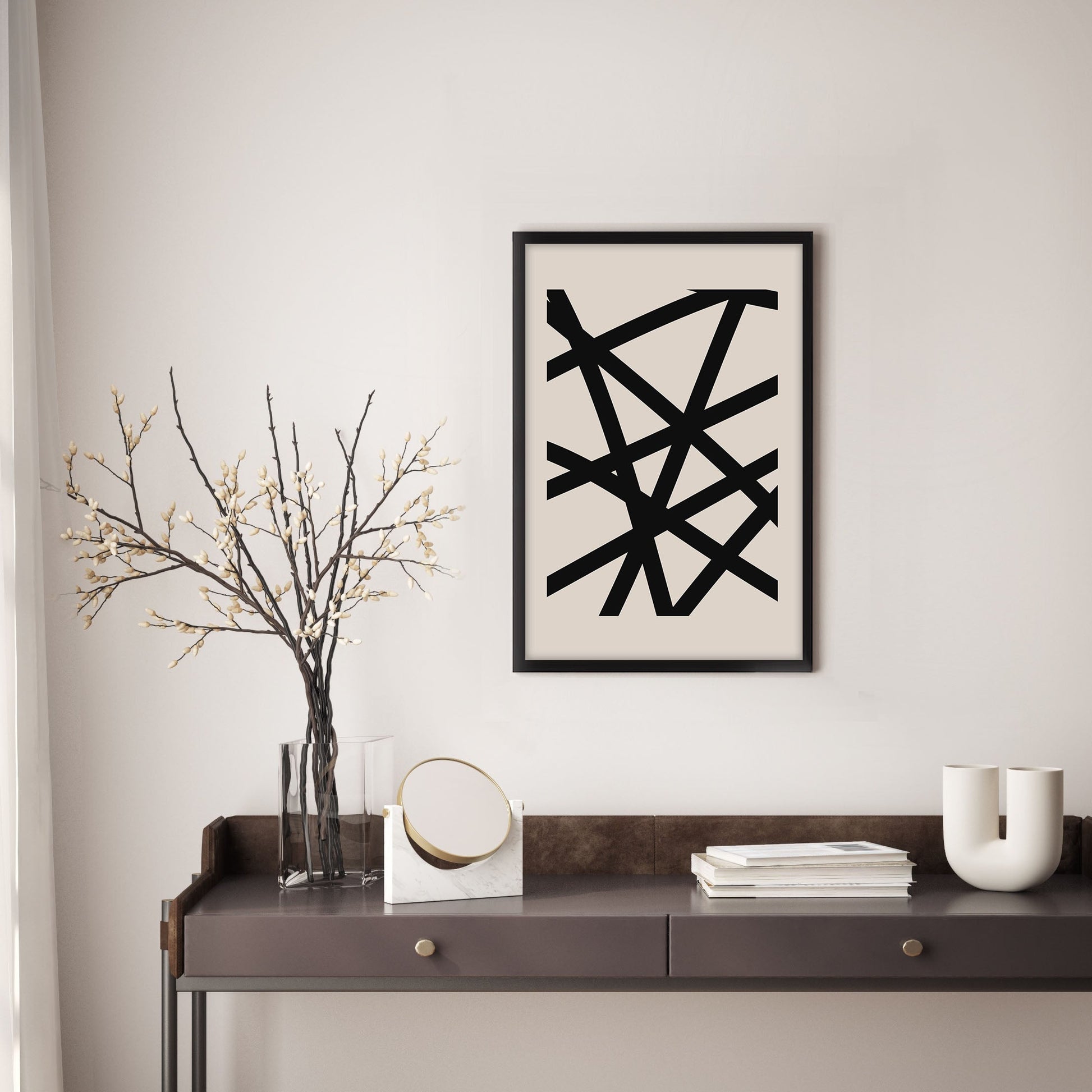 Add a touch of elegance to your home with this stunning Ethan Taylor™ ‘Abstract Lines II' framed art print! This black and gray abstract piece featuring shapes is printed on premium, museum quality premium art paper in your choice of black or white wooden frames or unframed prints. The prints arrive secured within the frame, and ready to hang so that you can enjoy your new artwork in no time. With a variety of sizes available, you can find the perfect fit for any space.