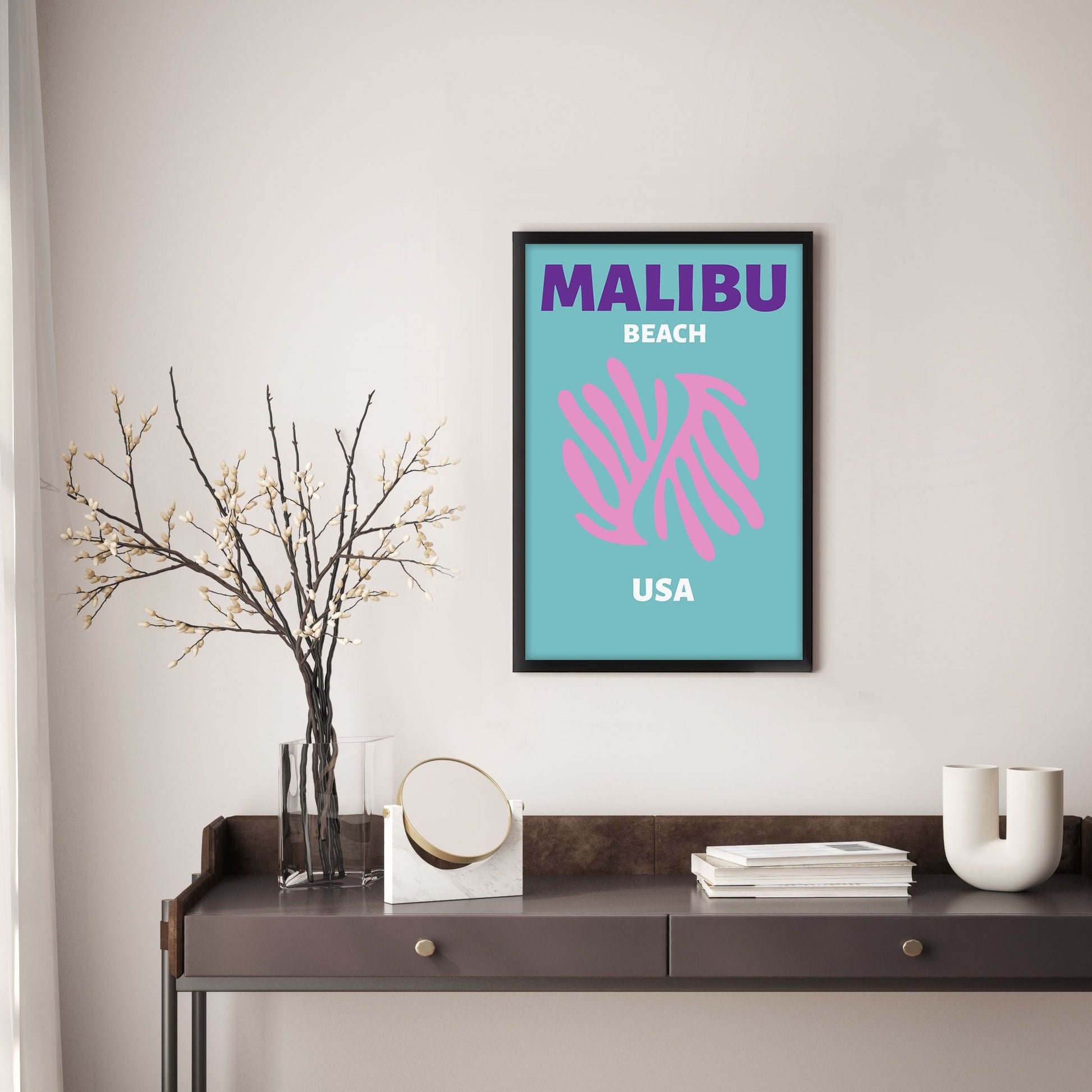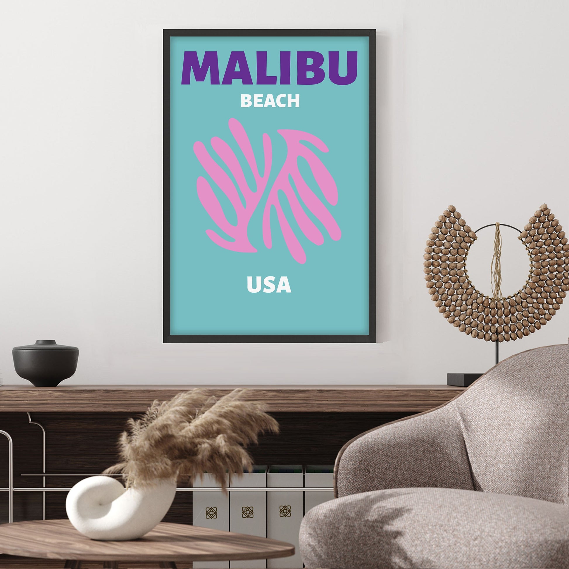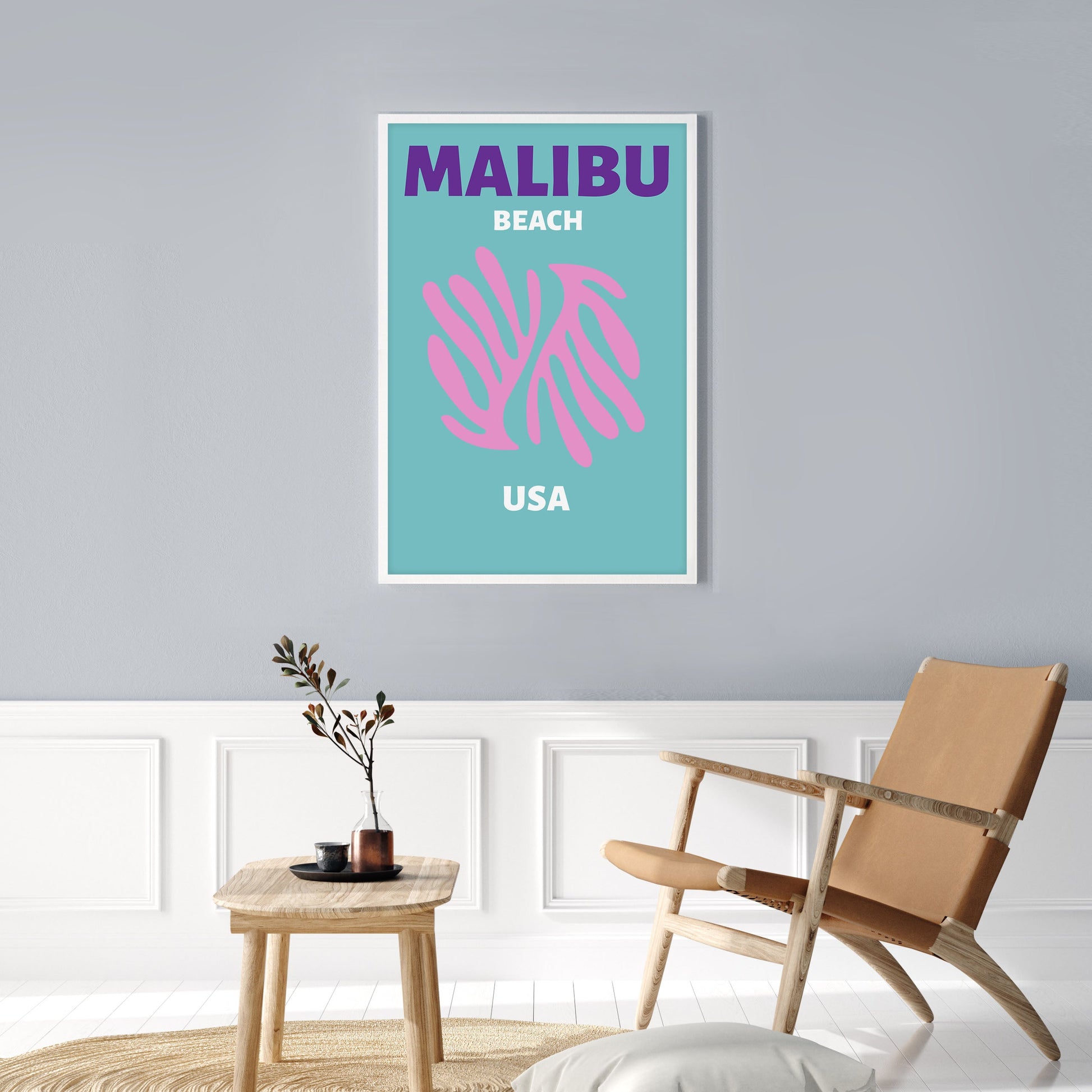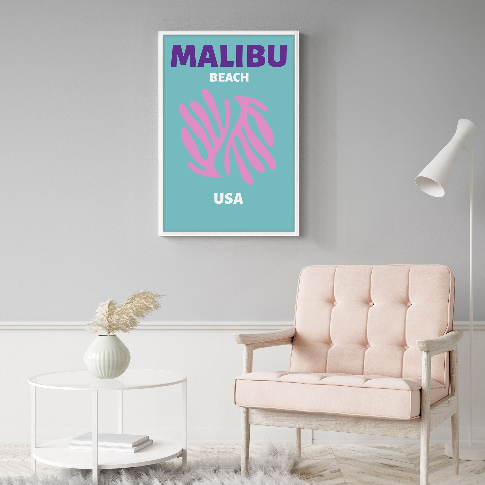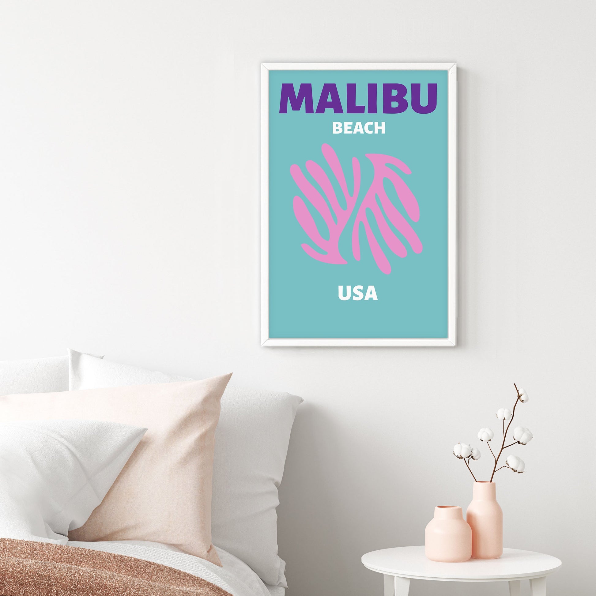 Add a touch of elegance to your home with this stunning Ethan Taylor™ ‘Malibu Travel Poster' framed art print! This blue and pink cities and cityscapes piece featuring united states cities is printed on premium, museum quality premium art paper in your choice of black or white wooden frames or unframed prints. The prints arrive secured within the frame, and ready to hang so that you can enjoy your new artwork in no time. With a variety of sizes available, you can find the perfect fit for any space.