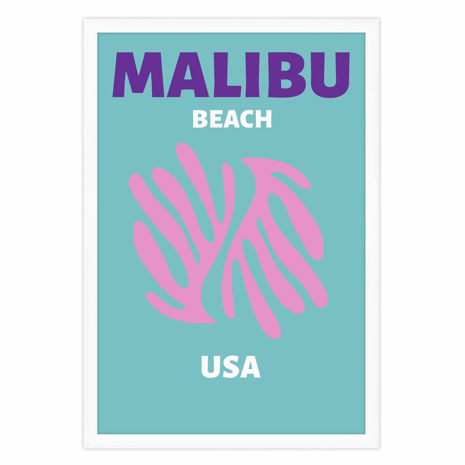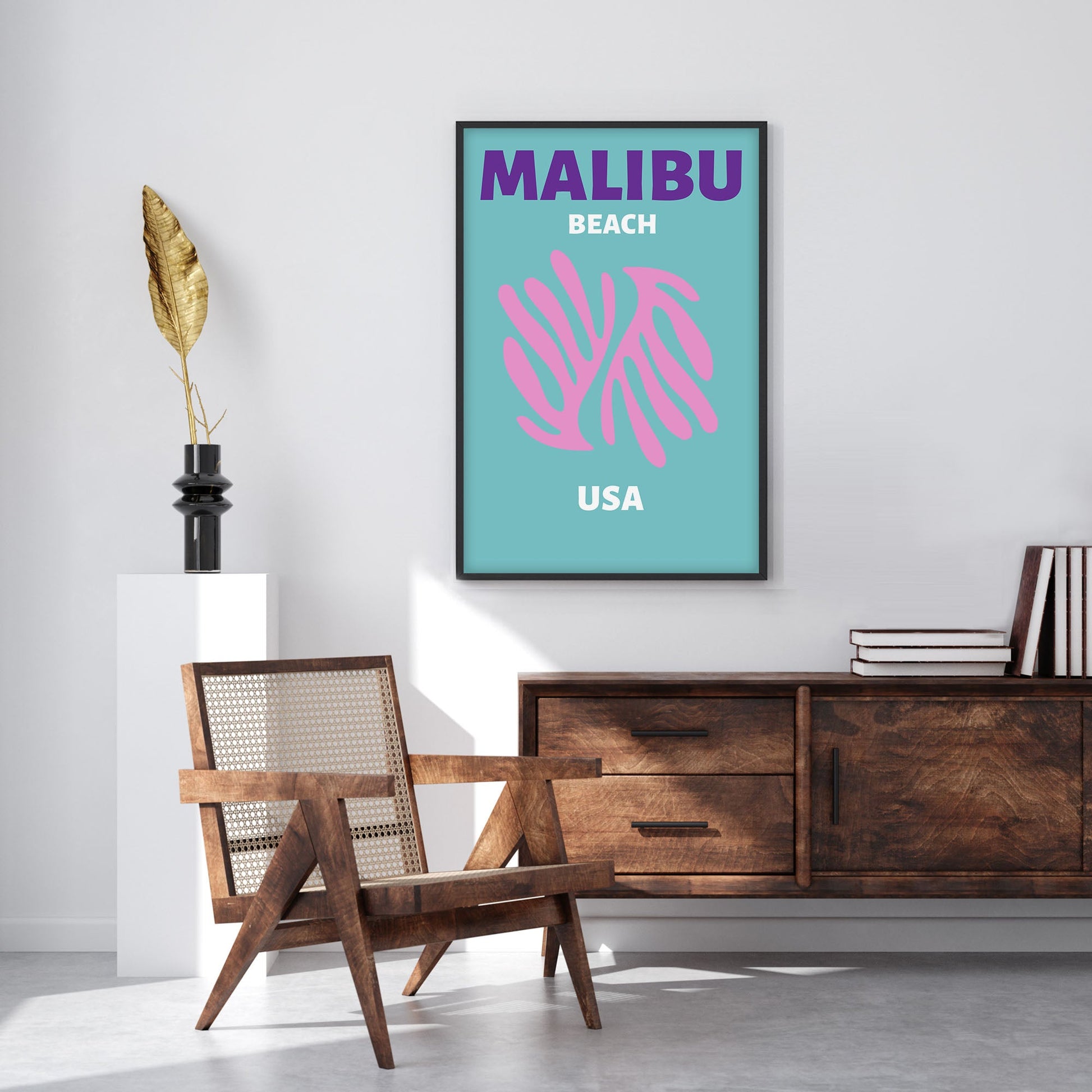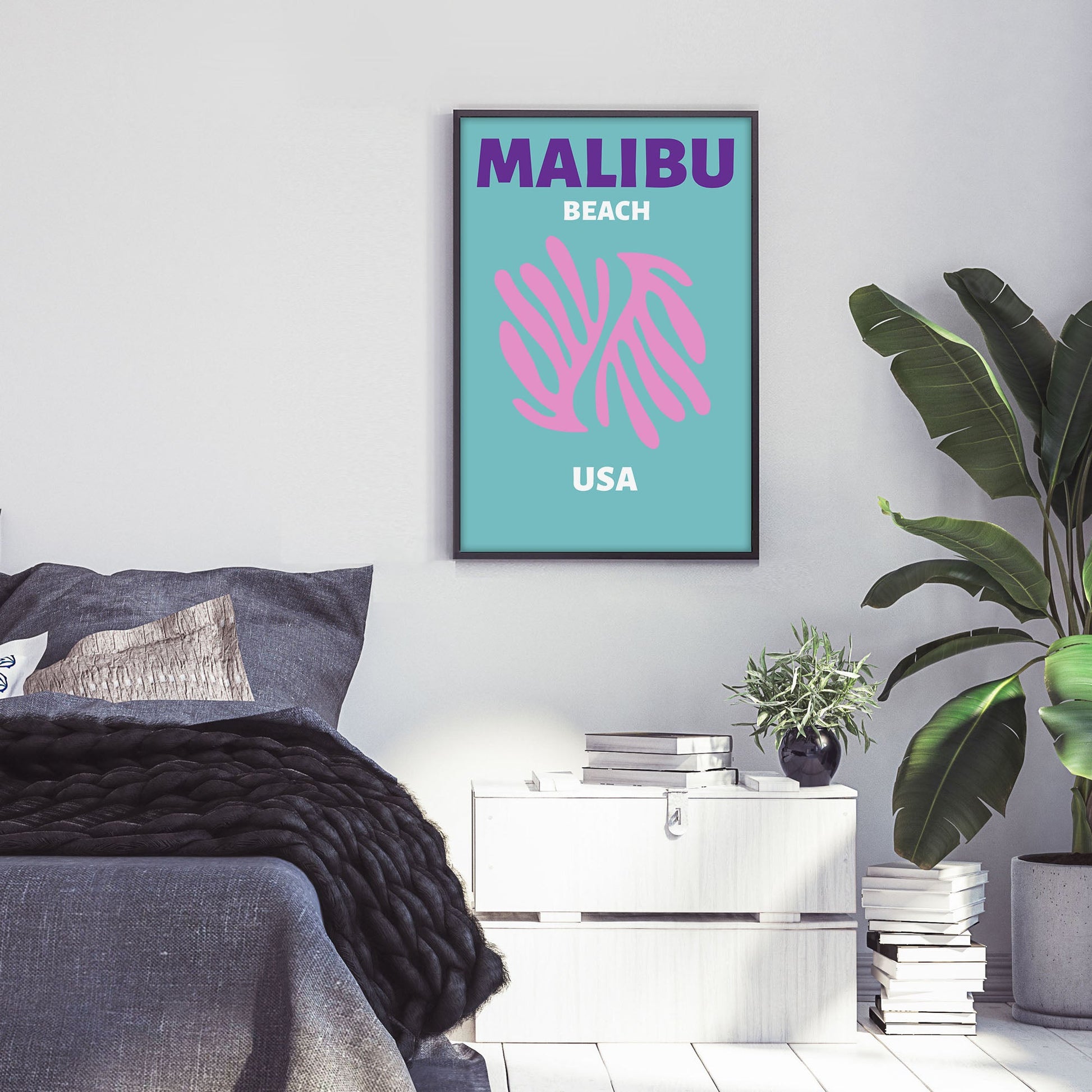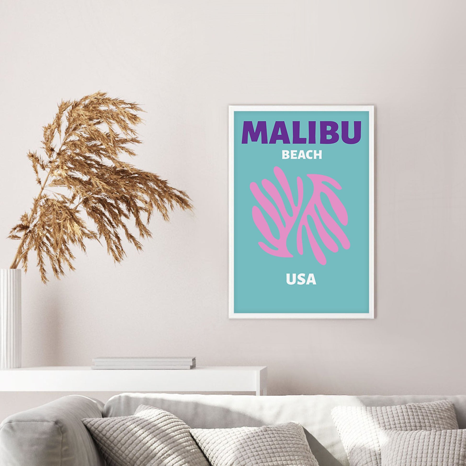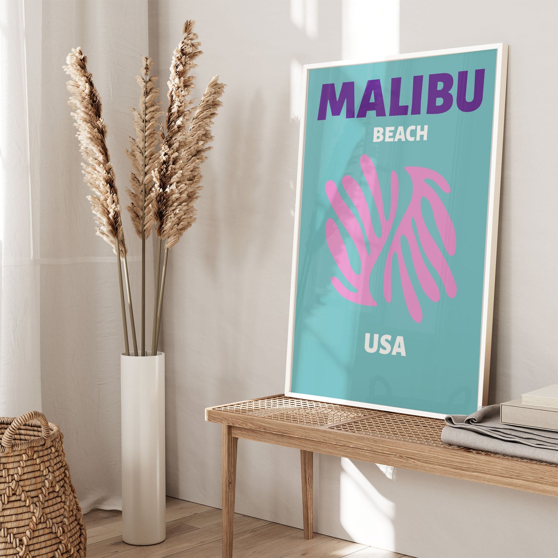 Add a touch of elegance to your home with this stunning Ethan Taylor™ ‘Malibu Travel Poster' framed art print! This blue and pink cities and cityscapes piece featuring united states cities is printed on premium, museum quality premium art paper in your choice of black or white wooden frames or unframed prints. The prints arrive secured within the frame, and ready to hang so that you can enjoy your new artwork in no time. With a variety of sizes available, you can find the perfect fit for any space.