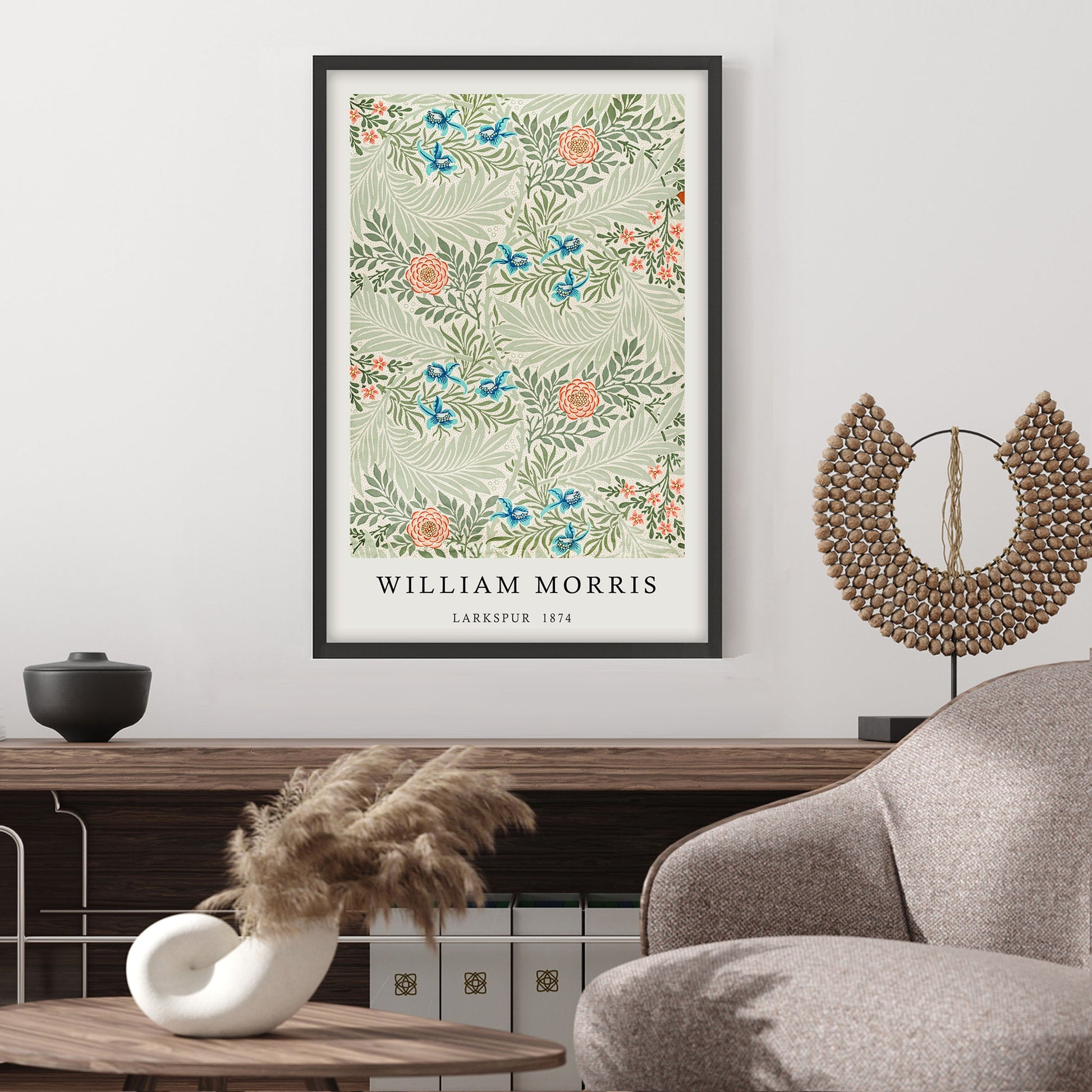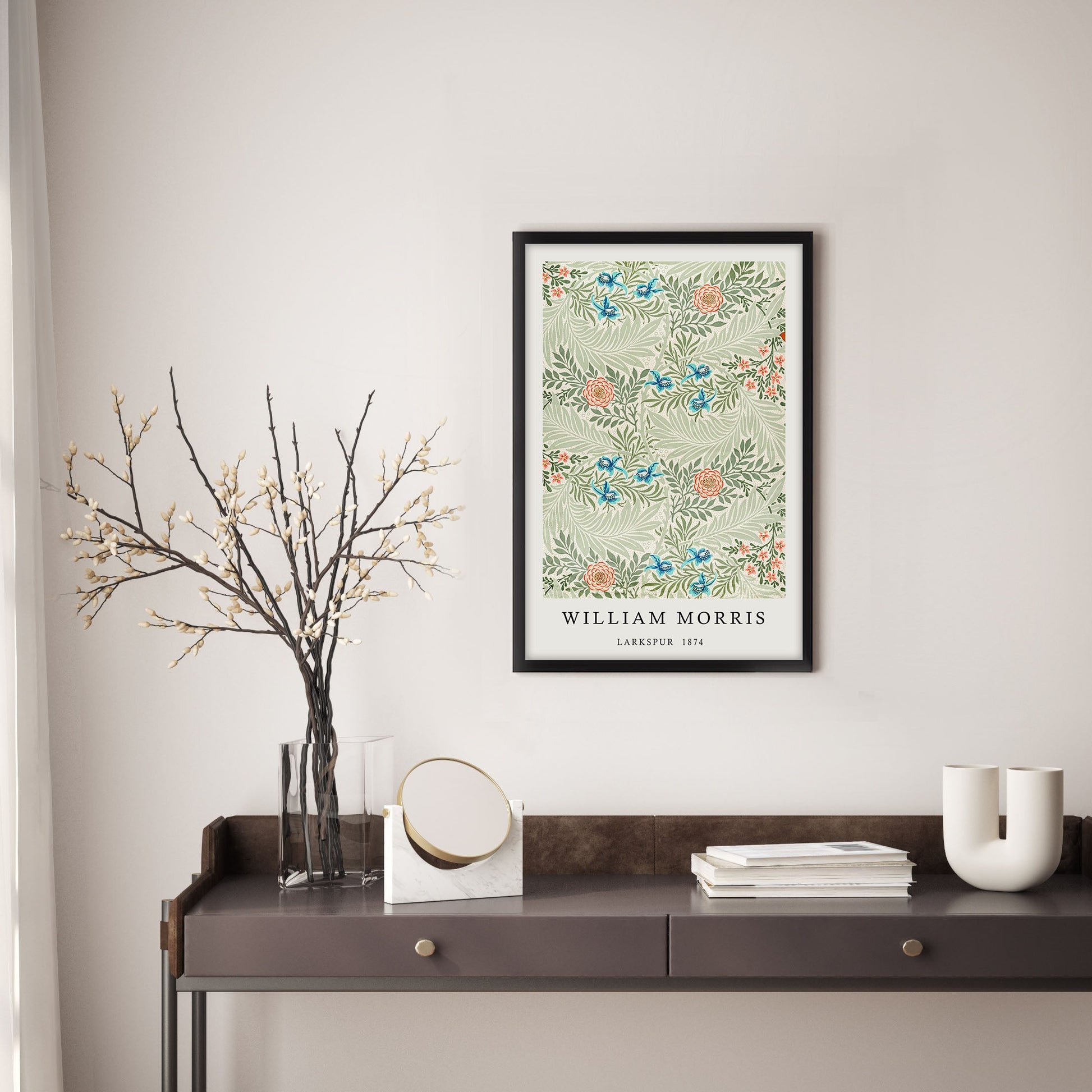 Add a touch of elegance to your home with this stunning Ethan Taylor™ ‘William Morris Larkspur' framed art print! This green and red botanical piece featuring botanicals is printed on premium, museum quality premium art paper in your choice of black or white wooden frames or unframed prints. The prints arrive secured within the frame, and ready to hang so that you can enjoy your new artwork in no time. With a variety of sizes available, you can find the perfect fit for any space.