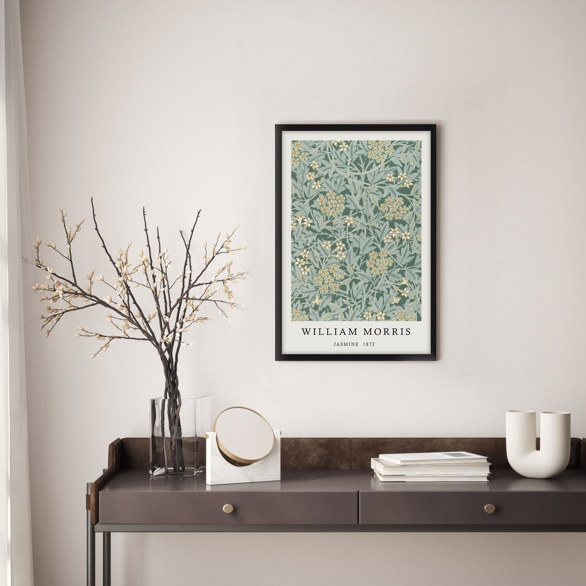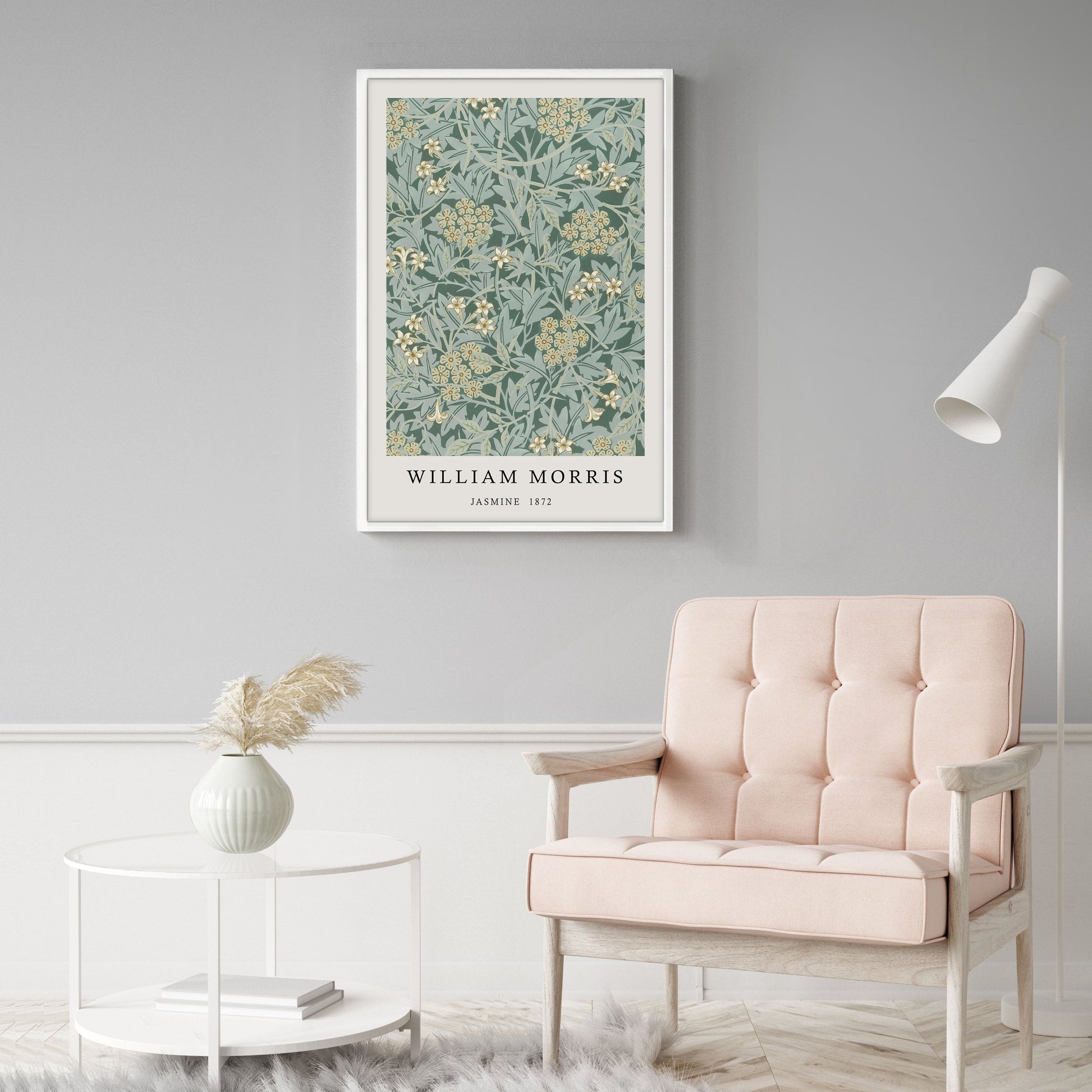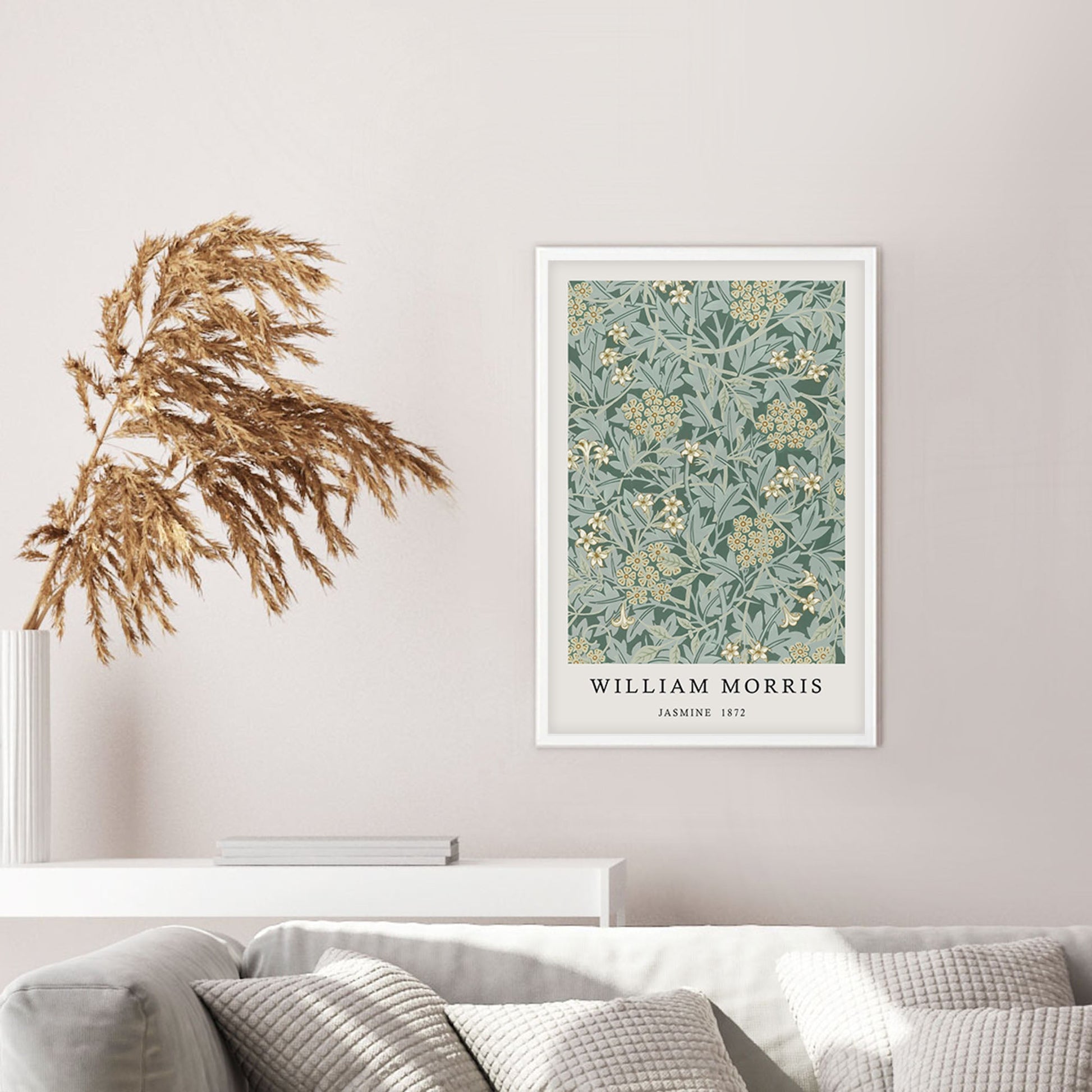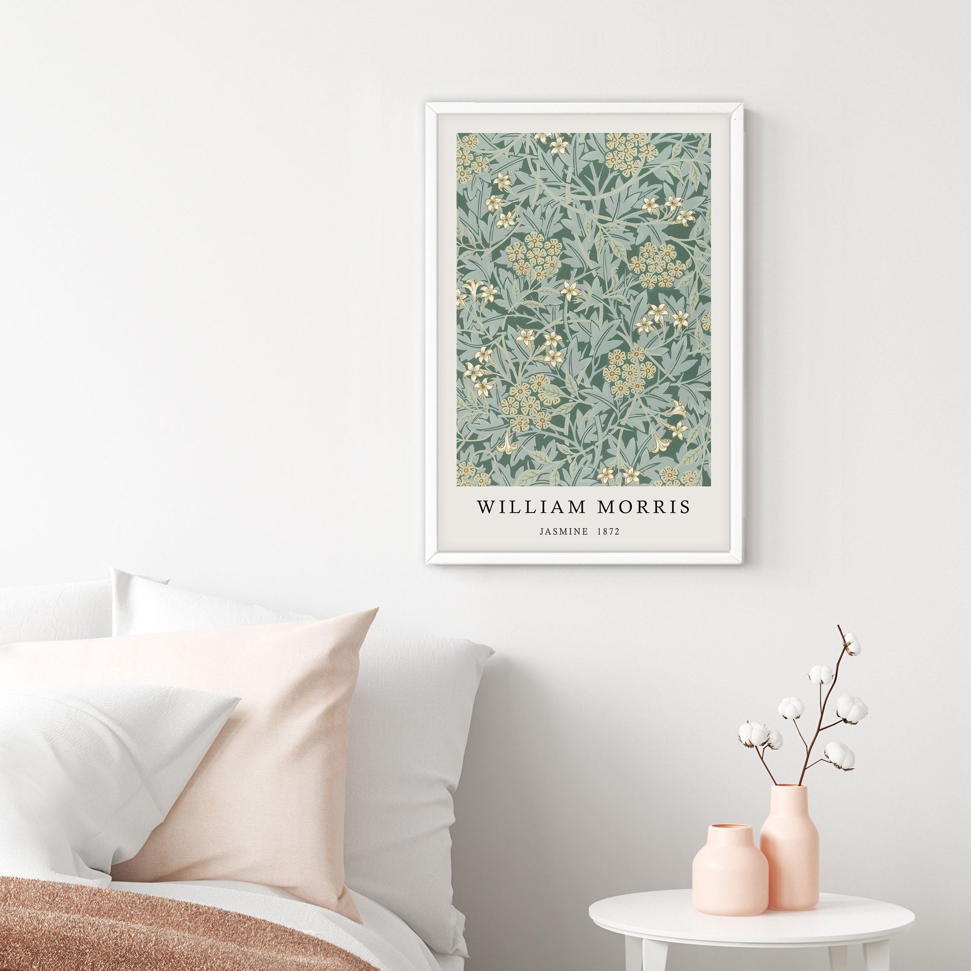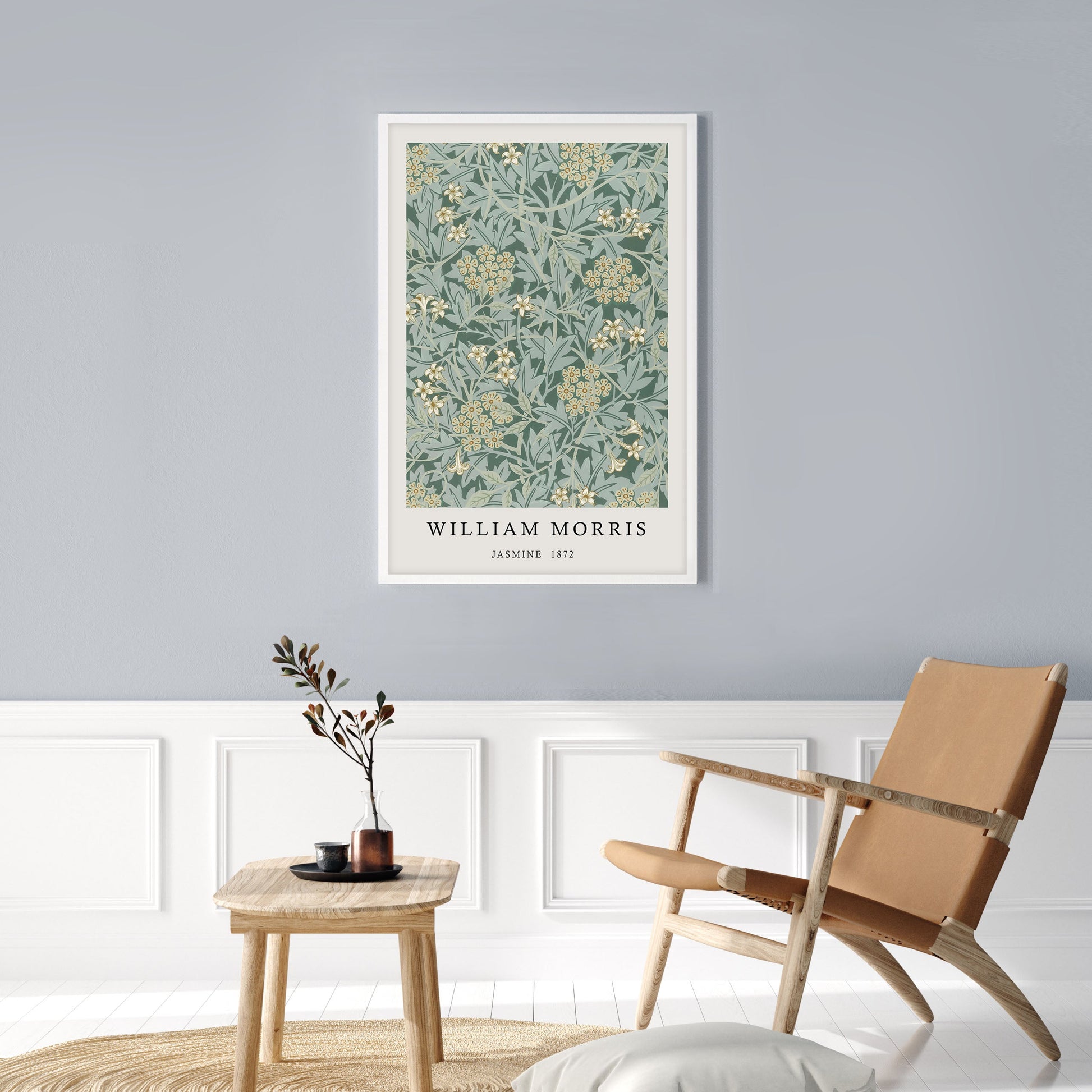 Add a touch of elegance to your home with this stunning Ethan Taylor™ ‘William Morris Jasmine' framed art print! This green and beige floral piece featuring florals is printed on premium, museum quality premium art paper in your choice of black or white wooden frames or unframed prints. The prints arrive secured within the frame, and ready to hang so that you can enjoy your new artwork in no time. With a variety of sizes available, you can find the perfect fit for any space.
