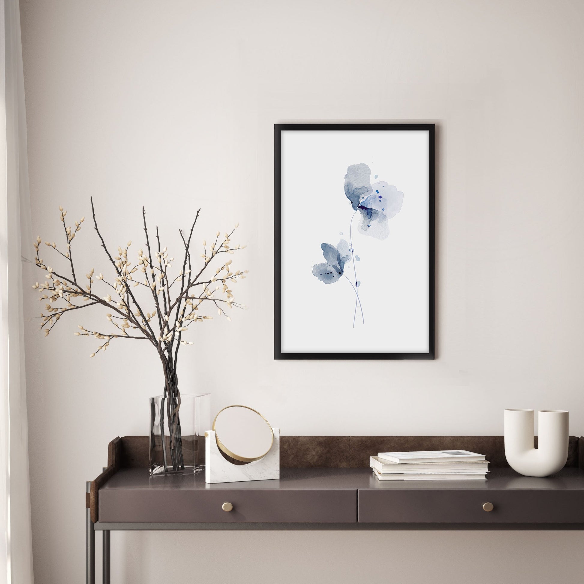 Add a touch of elegance to your home with this stunning Ethan Taylor™ ‘Blue Floral I' framed art print! This blue and gray floral piece featuring florals is printed on premium, museum quality premium art paper in your choice of black or white wooden frames or unframed prints. The prints arrive secured within the frame, and ready to hang so that you can enjoy your new artwork in no time. With a variety of sizes available, you can find the perfect fit for any space.