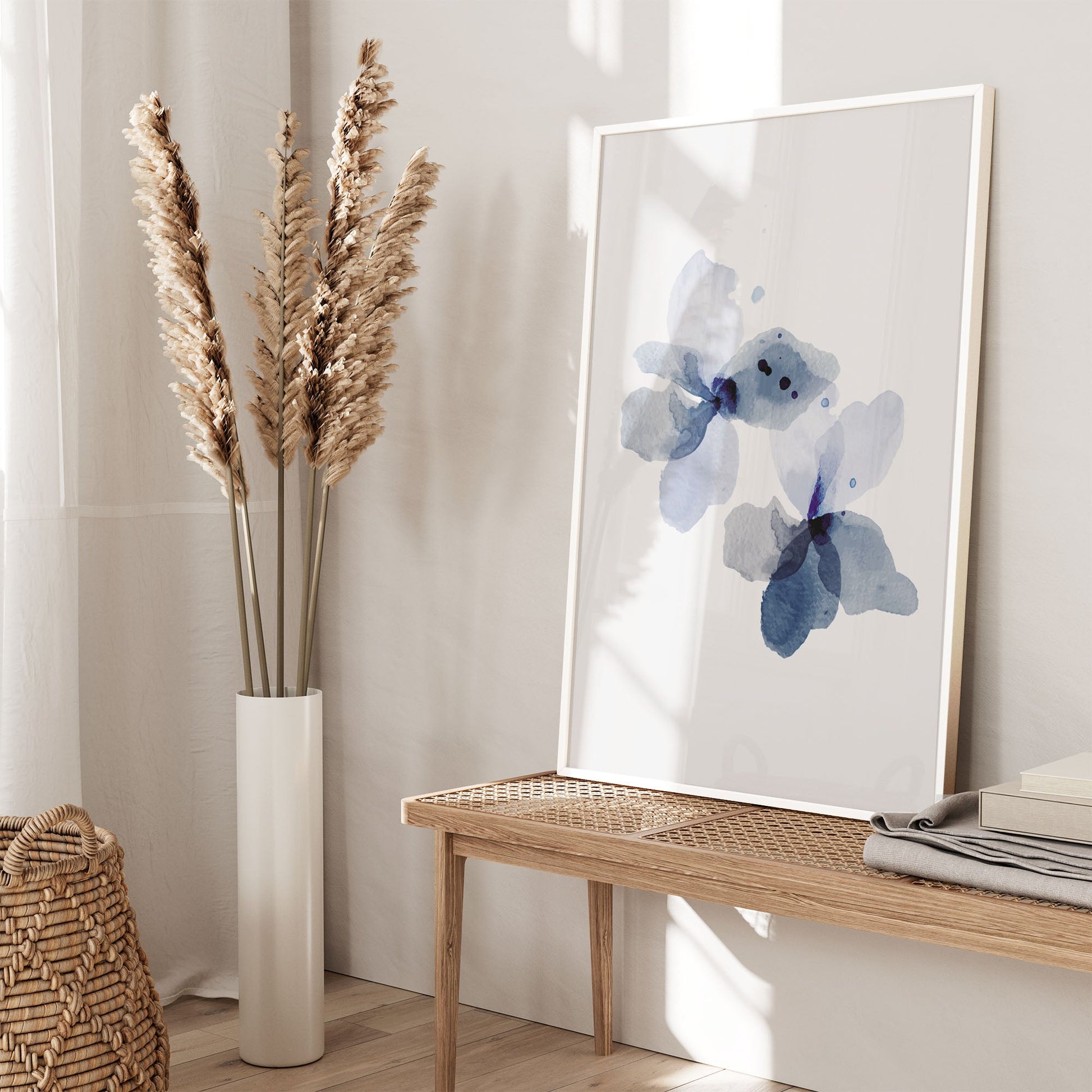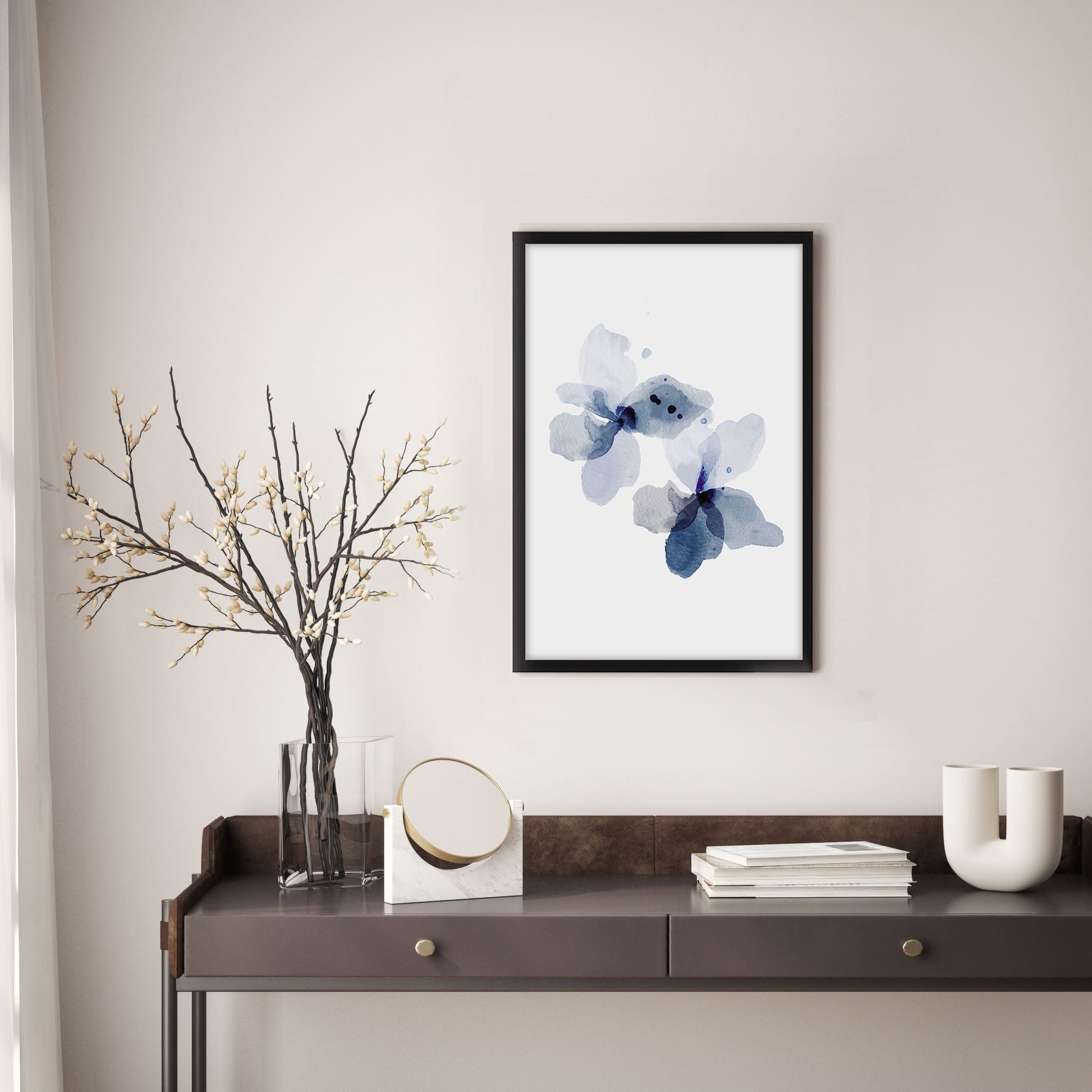 Add a touch of elegance to your home with this stunning Ethan Taylor™ ‘Blue Floral II' framed art print! This blue and gray floral piece featuring florals is printed on premium, museum quality premium art paper in your choice of black or white wooden frames or unframed prints. The prints arrive secured within the frame, and ready to hang so that you can enjoy your new artwork in no time. With a variety of sizes available, you can find the perfect fit for any space.