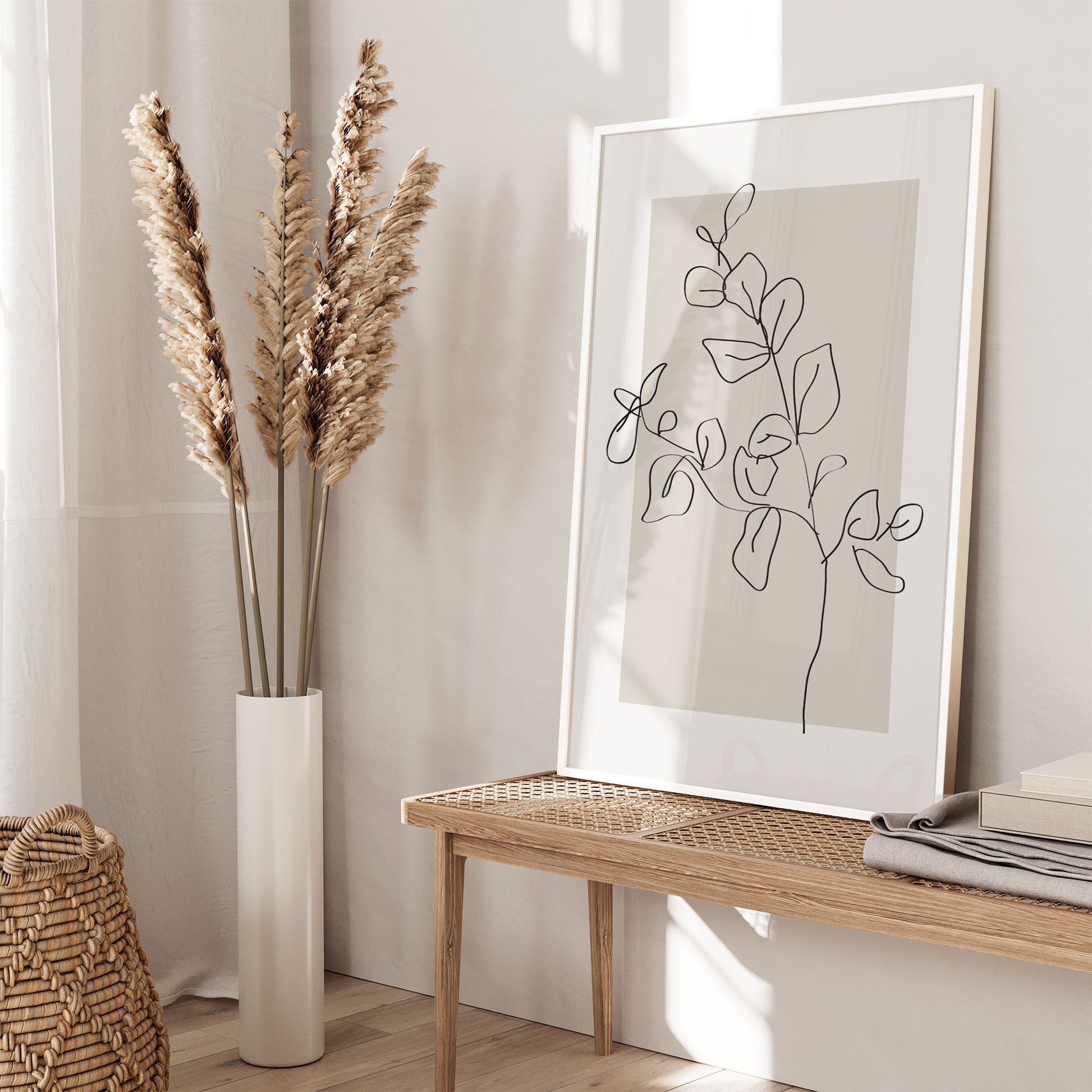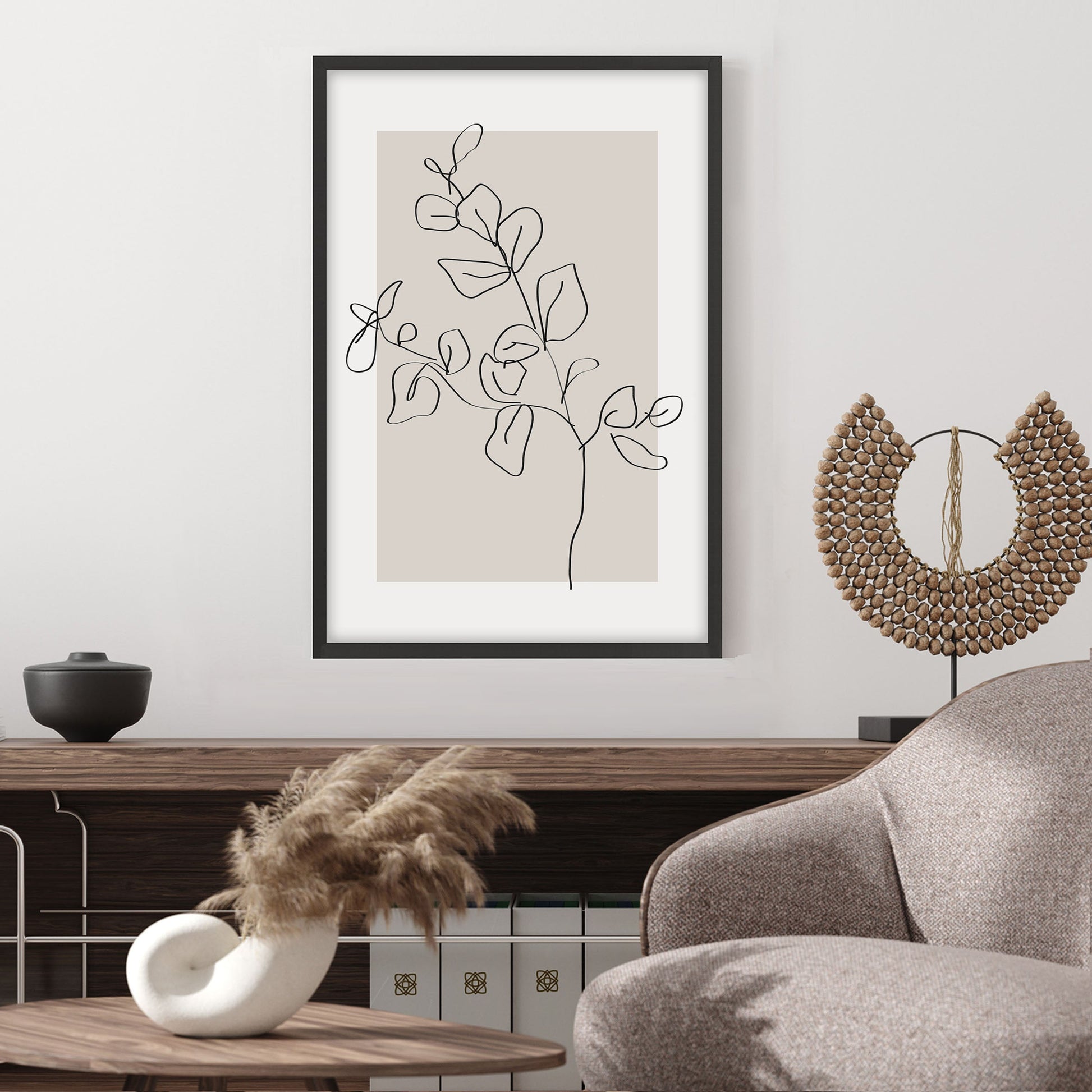 Add a touch of elegance to your home with this stunning Ethan Taylor™ ‘Line Art Eucalyptus Beige' framed art print! This beige and black botanical piece featuring botanicals is printed on premium, museum quality premium art paper in your choice of black or white wooden frames or unframed prints. The prints arrive secured within the frame, and ready to hang so that you can enjoy your new artwork in no time. With a variety of sizes available, you can find the perfect fit for any space.