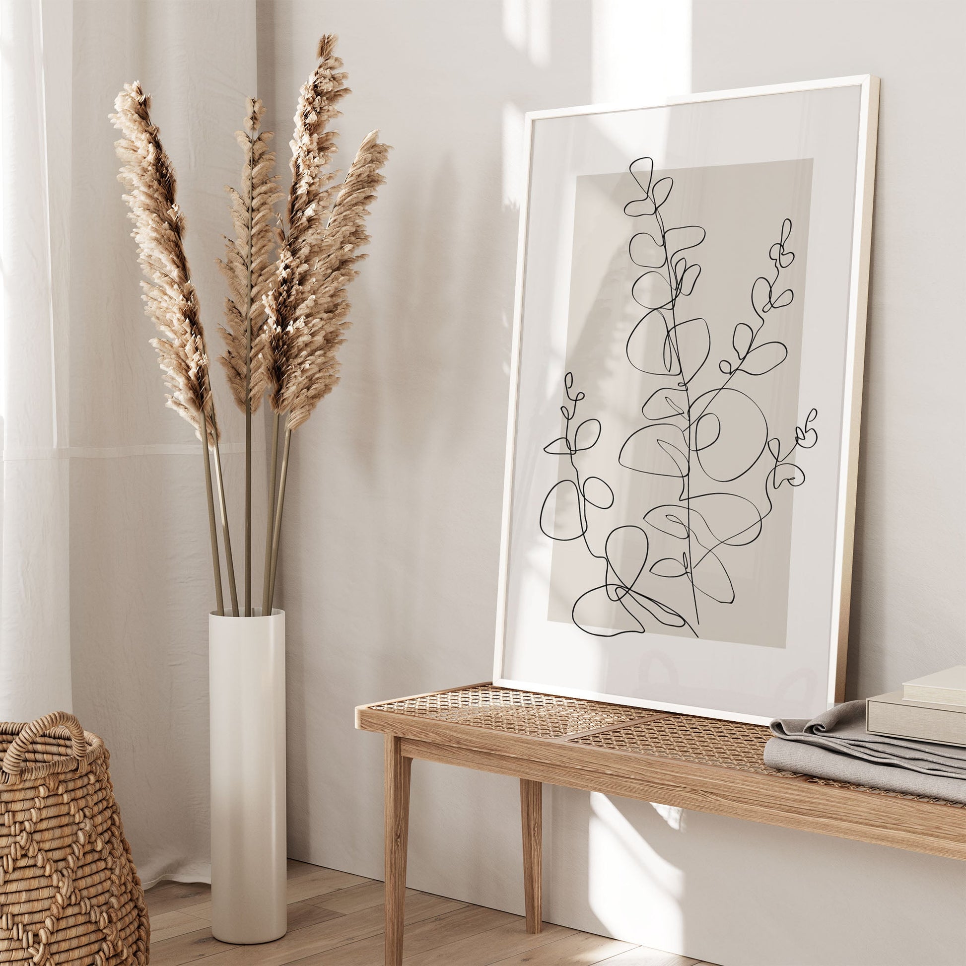 Add a touch of elegance to your home with this stunning Ethan Taylor™ ‘Line Art Eucalyptus Beige II' framed art print! This beige and black botanical piece featuring botanicals is printed on premium, museum quality premium art paper in your choice of black or white wooden frames or unframed prints. The prints arrive secured within the frame, and ready to hang so that you can enjoy your new artwork in no time. With a variety of sizes available, you can find the perfect fit for any space.