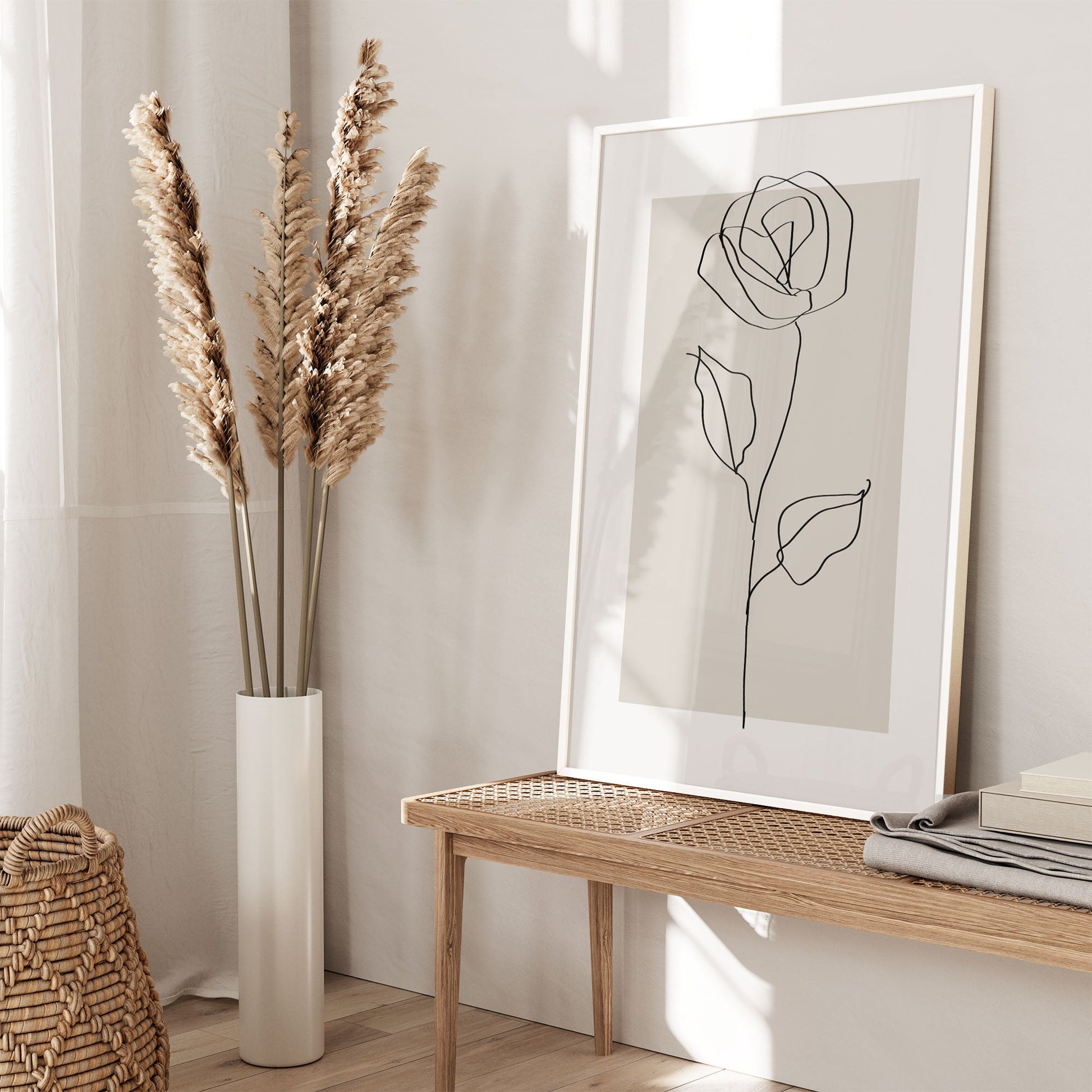 Add a touch of elegance to your home with this stunning Ethan Taylor™ ‘Rose Line Art Beige Neutral' framed art print! This beige and black floral piece featuring florals is printed on premium, museum quality premium art paper in your choice of black or white wooden frames or unframed prints. The prints arrive secured within the frame, and ready to hang so that you can enjoy your new artwork in no time. With a variety of sizes available, you can find the perfect fit for any space.
