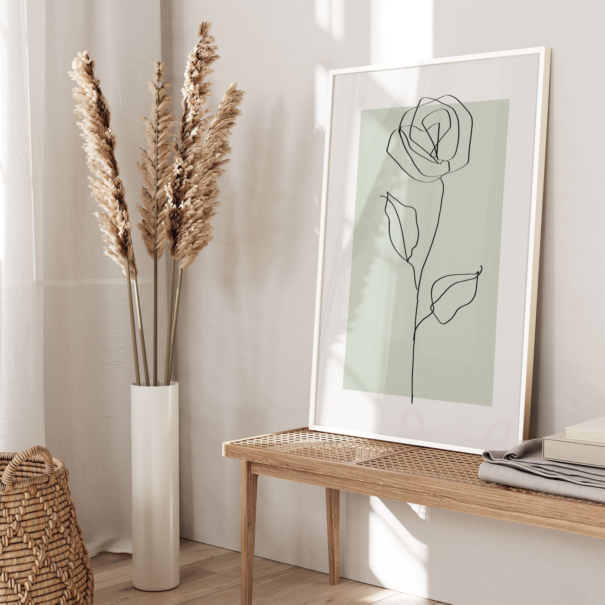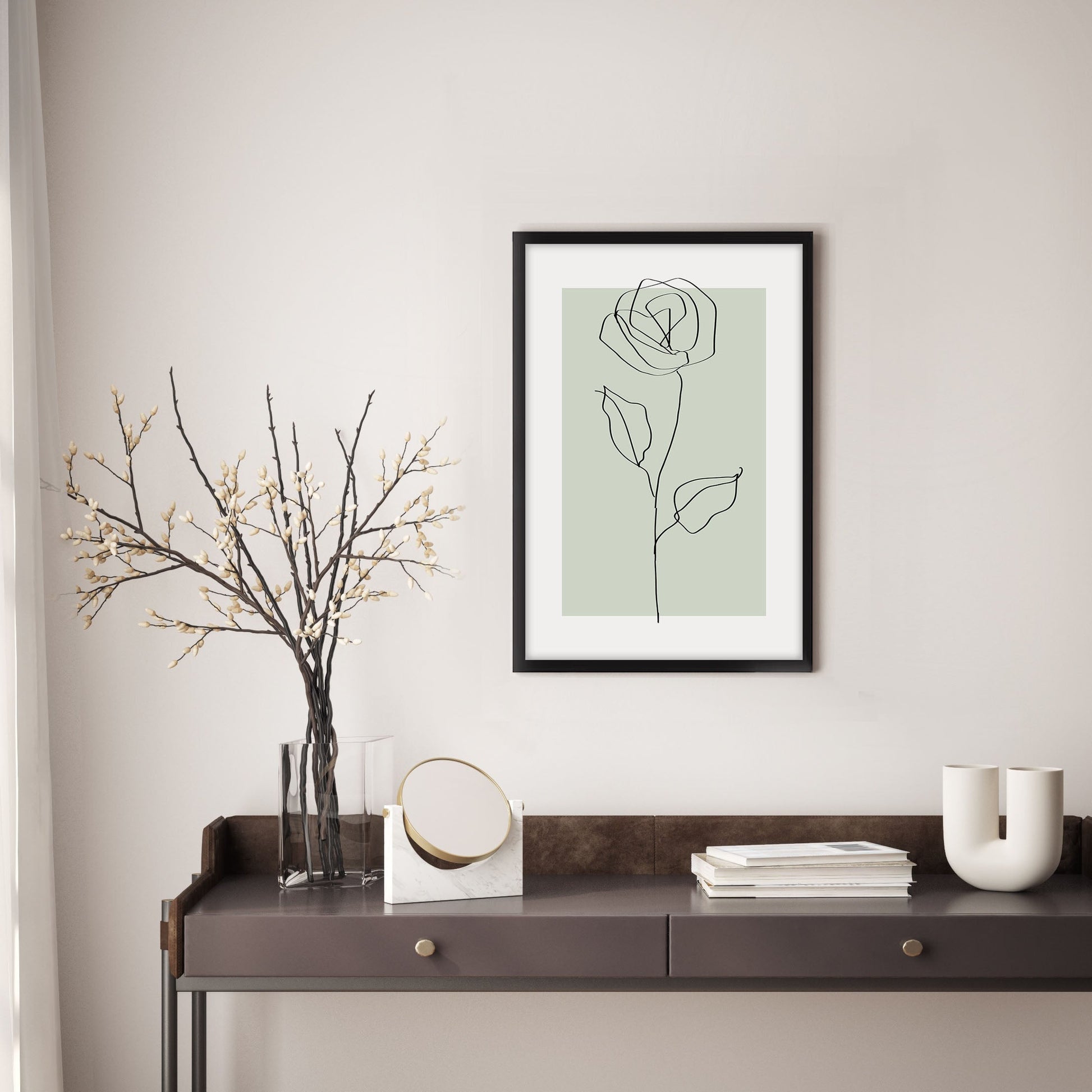 Add a touch of elegance to your home with this stunning Ethan Taylor™ ‘Rose Line Art Sage Green' framed art print! This green and black floral piece featuring florals is printed on premium, museum quality premium art paper in your choice of black or white wooden frames or unframed prints. The prints arrive secured within the frame, and ready to hang so that you can enjoy your new artwork in no time. With a variety of sizes available, you can find the perfect fit for any space.