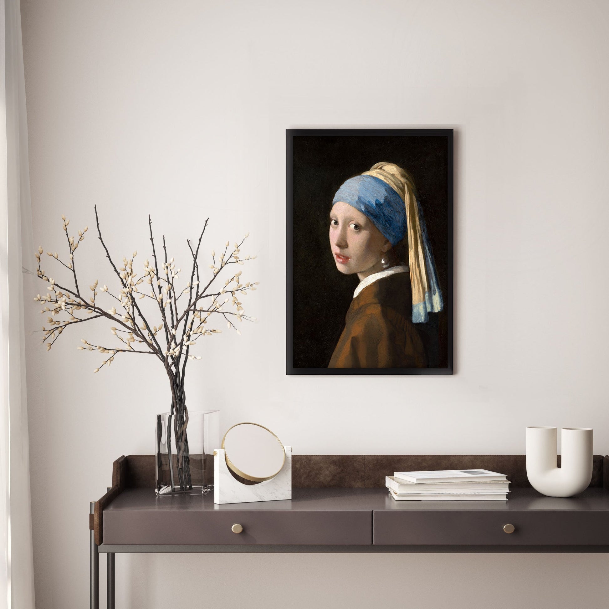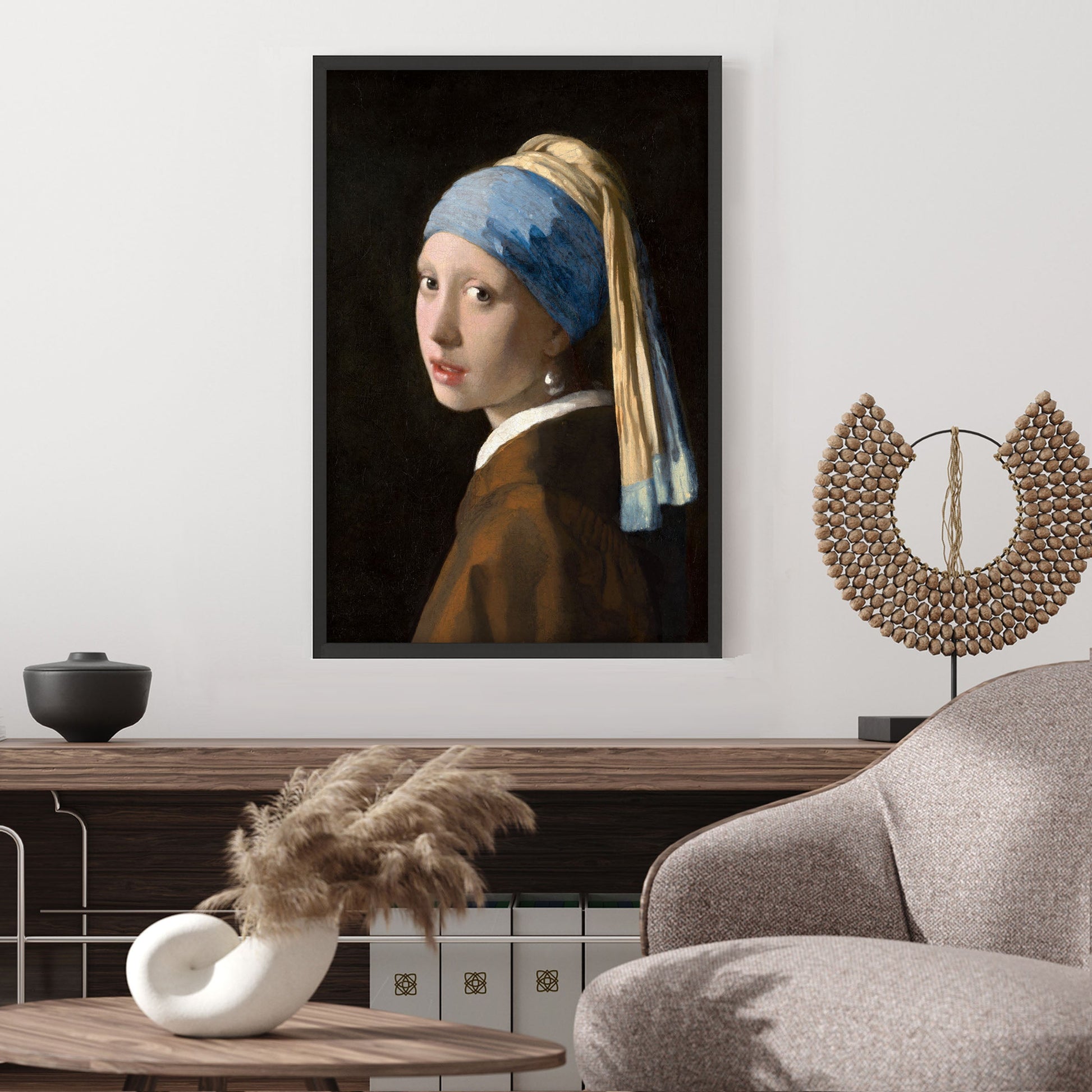 Add a touch of elegance to your home with this stunning Ethan Taylor™ ‘Girl with a Pearl Earing - Johannes Vermeer' framed art print! This blue and brown people and portraits piece featuring portraits is printed on premium, museum quality premium art paper in your choice of black or white wooden frames or unframed prints. The prints arrive secured within the frame, and ready to hang so that you can enjoy your new artwork in no time. With a variety of sizes available, you can find the perfect fit for any space.